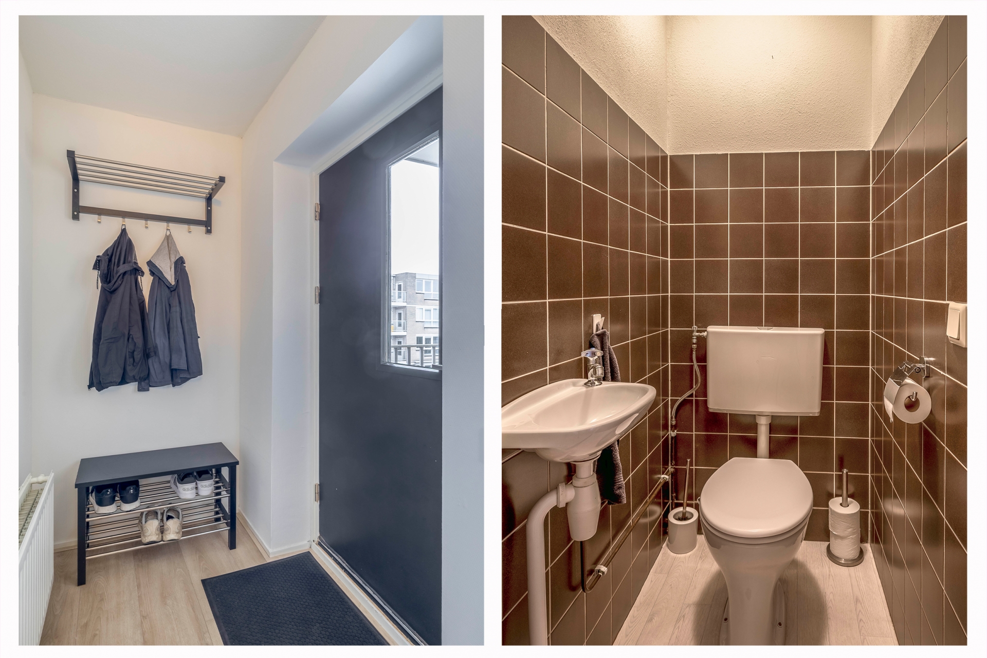 Entree/hal met intercom, meterkast en toilet met fonteintje.