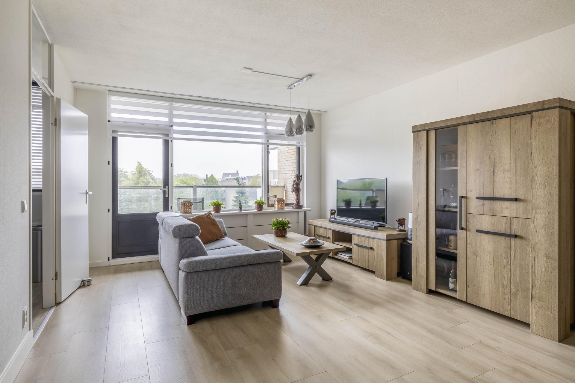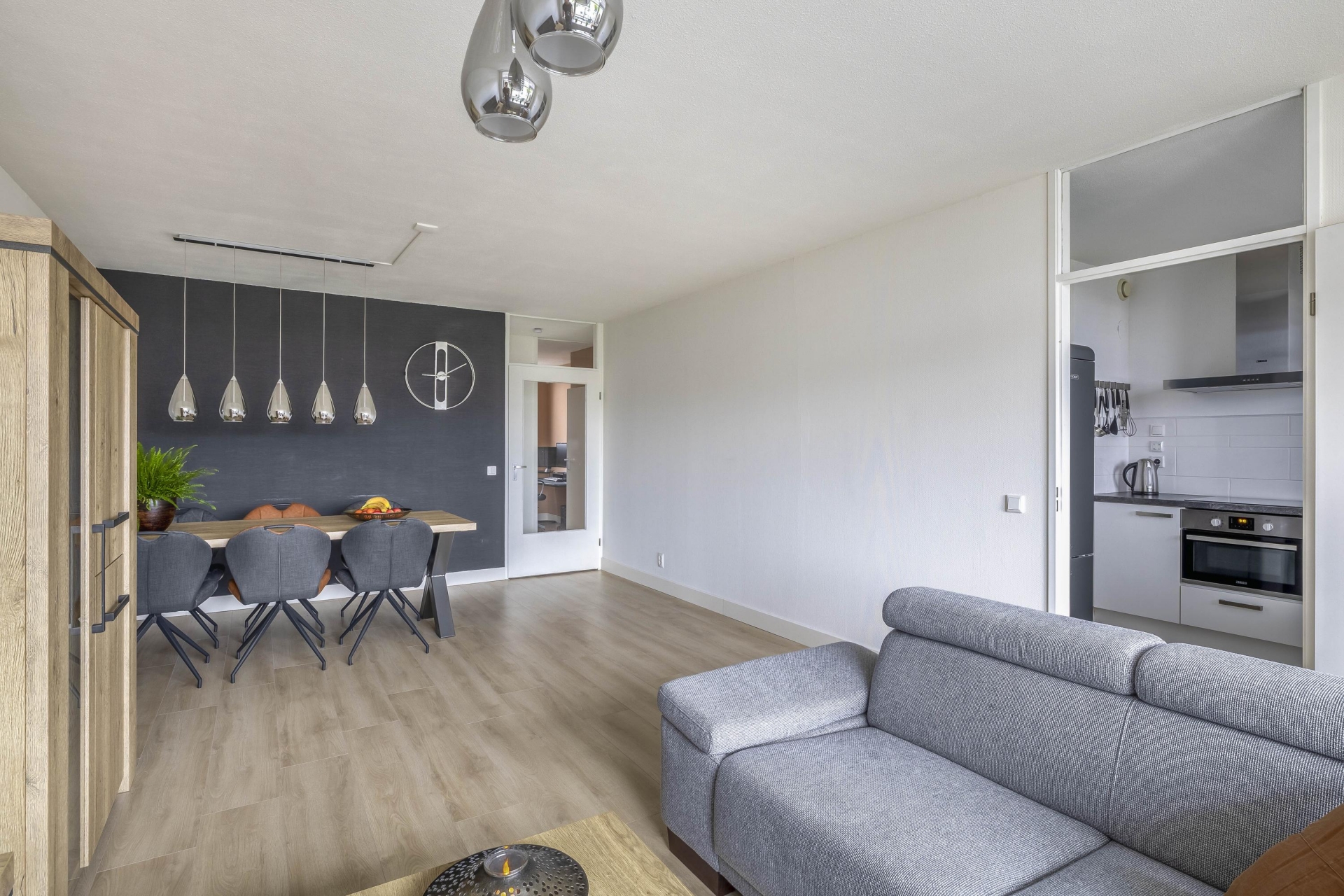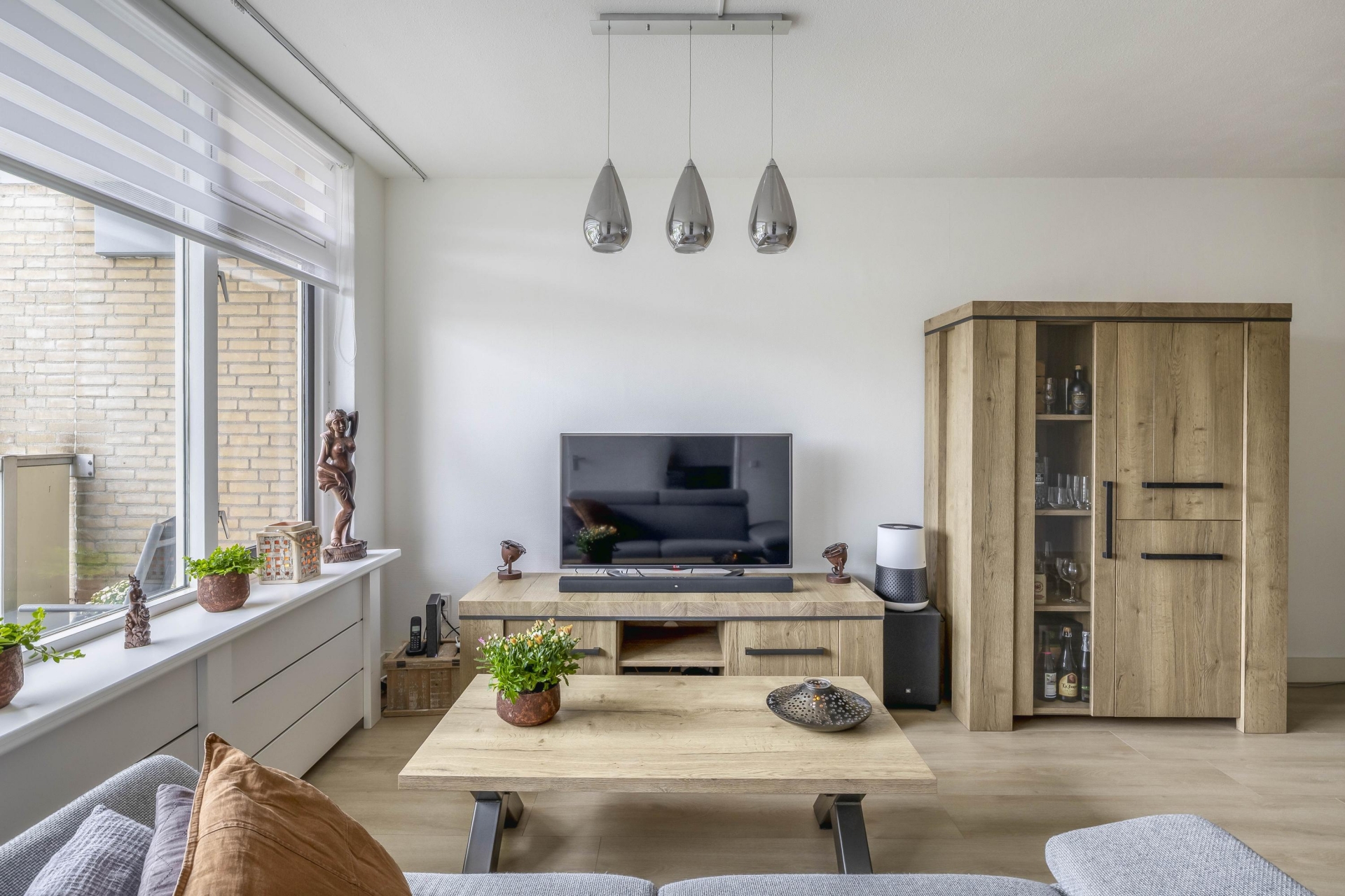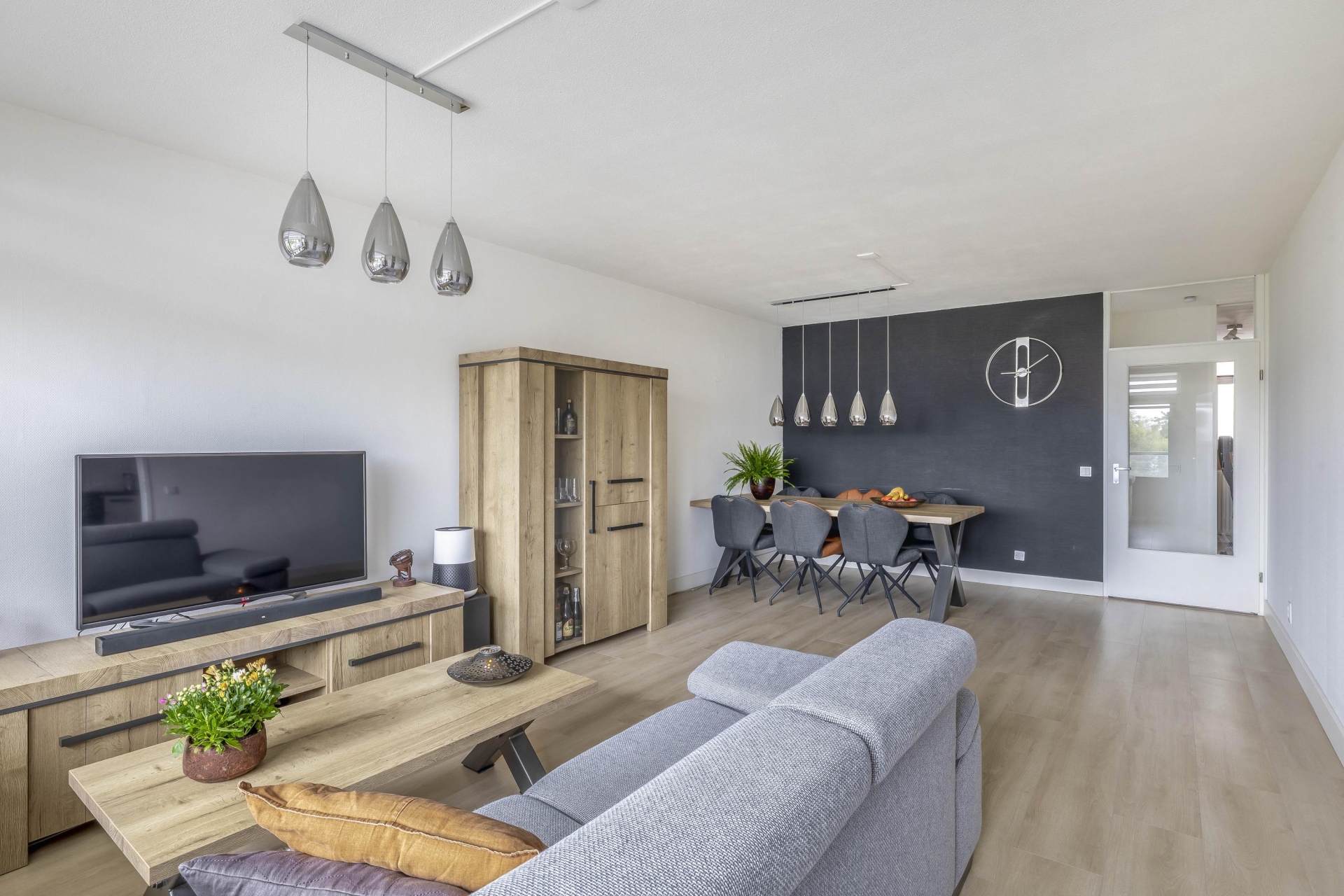 Aan de achterzijde ligt de ruime en lichte woonkamer. Vanuit hier bereikt u het balkon, waar u vrij uitzicht heeft over de wijk.