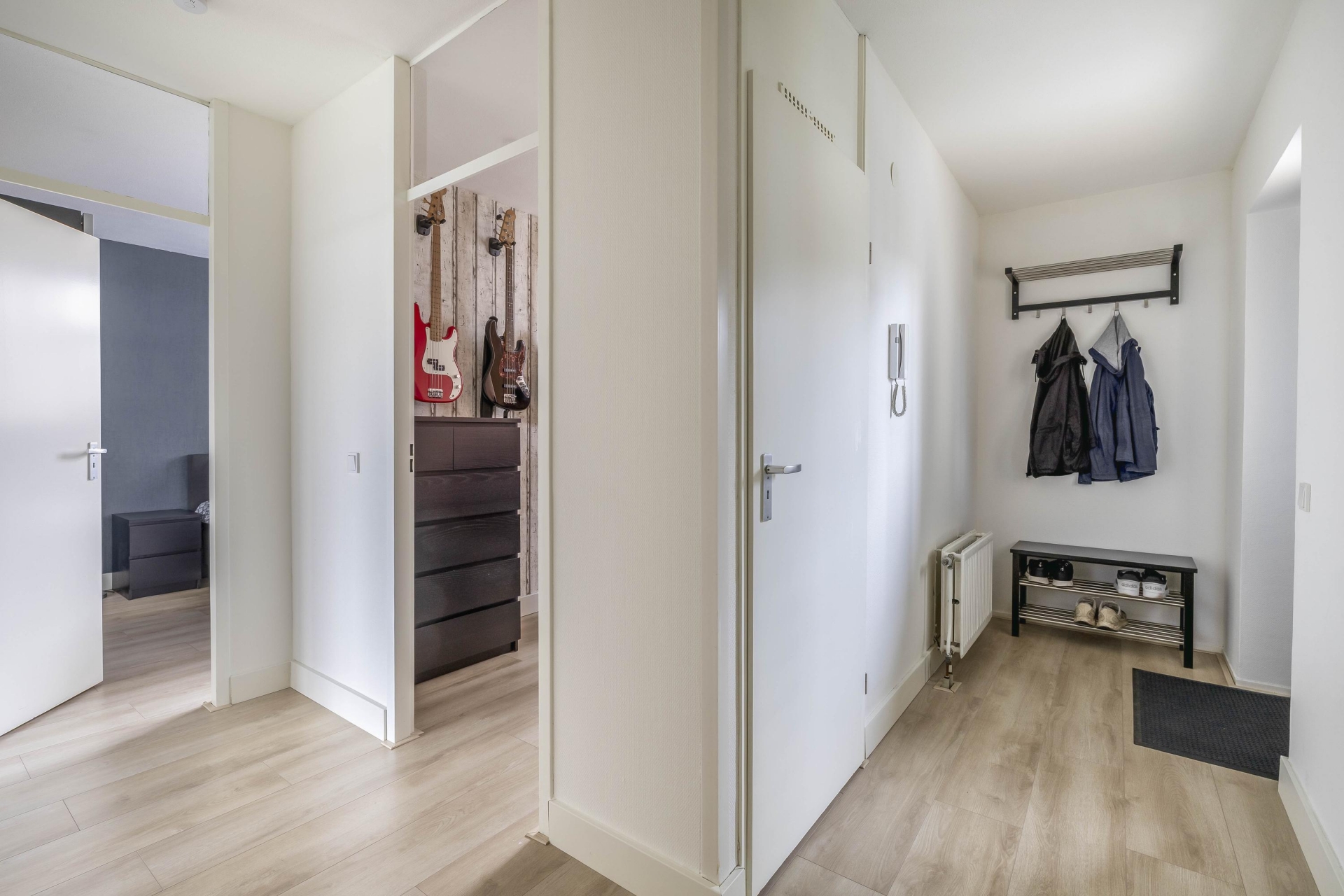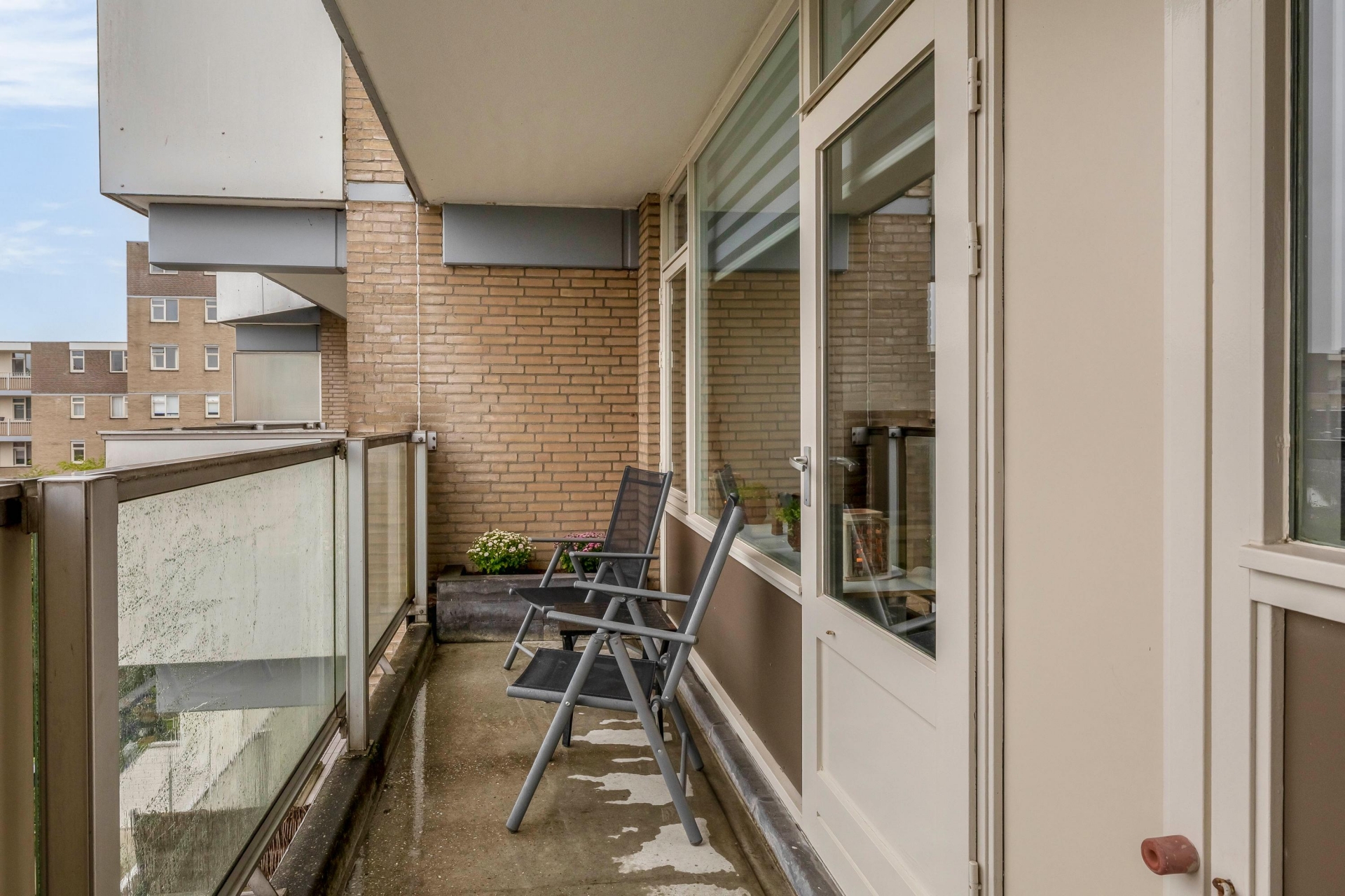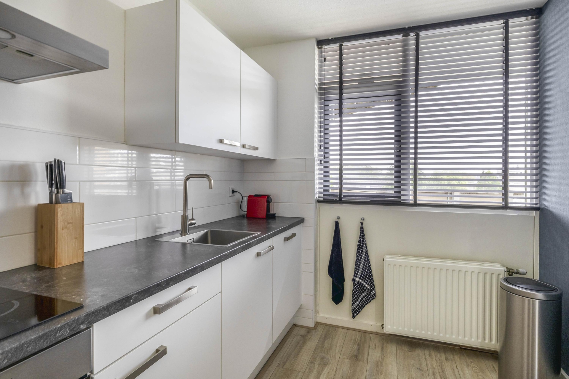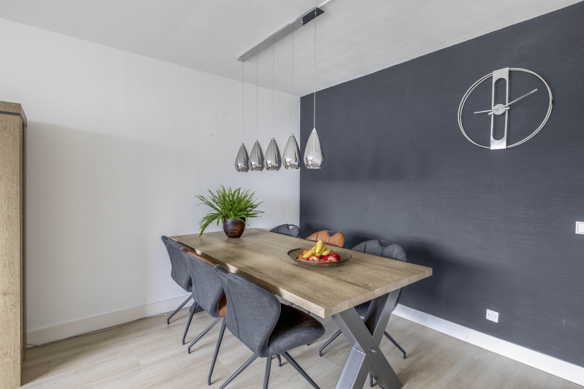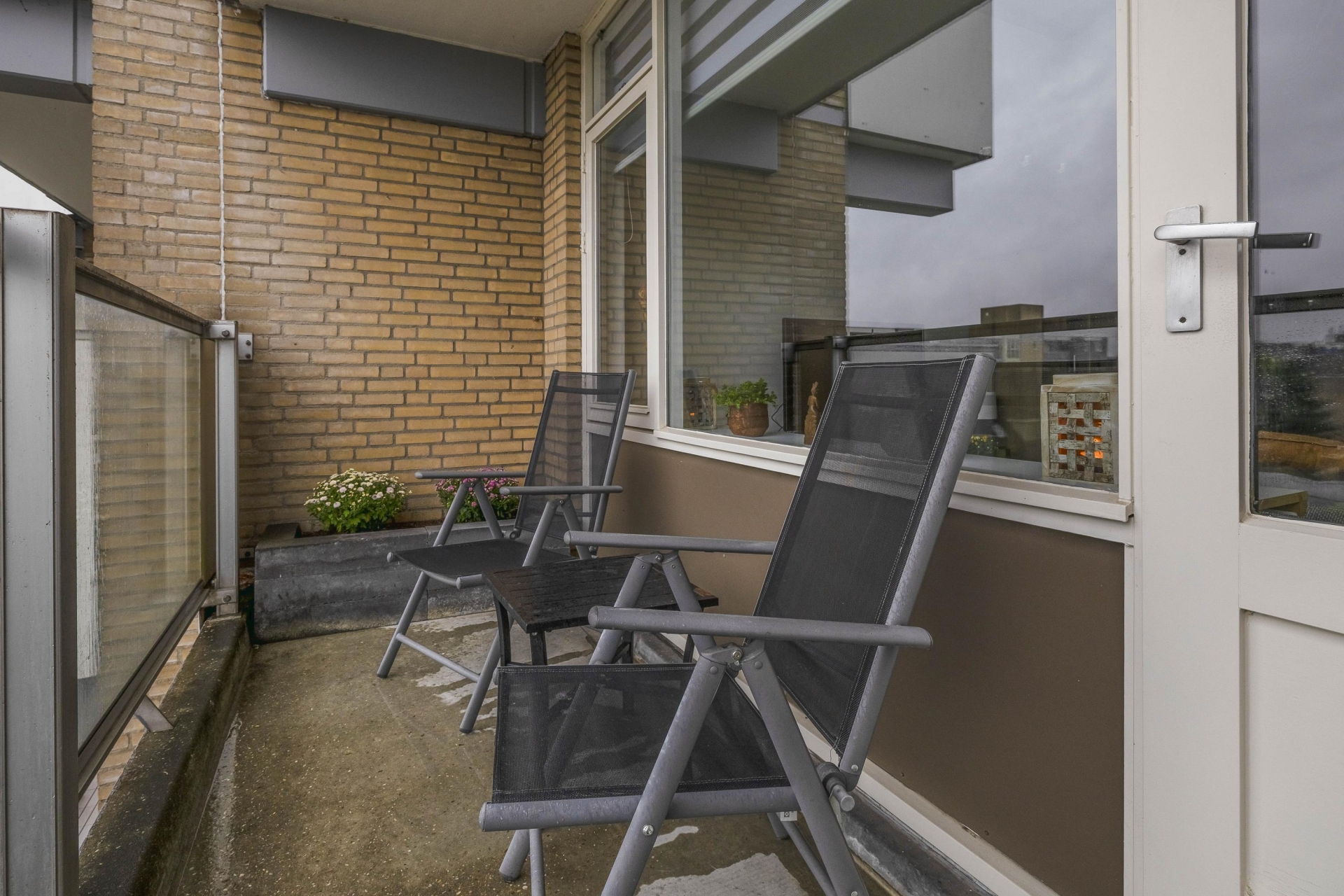 Aan de achterzijde ligt de ruime en lichte woonkamer. Vanuit hier bereikt u het balkon, waar u vrij uitzicht heeft over de wijk.