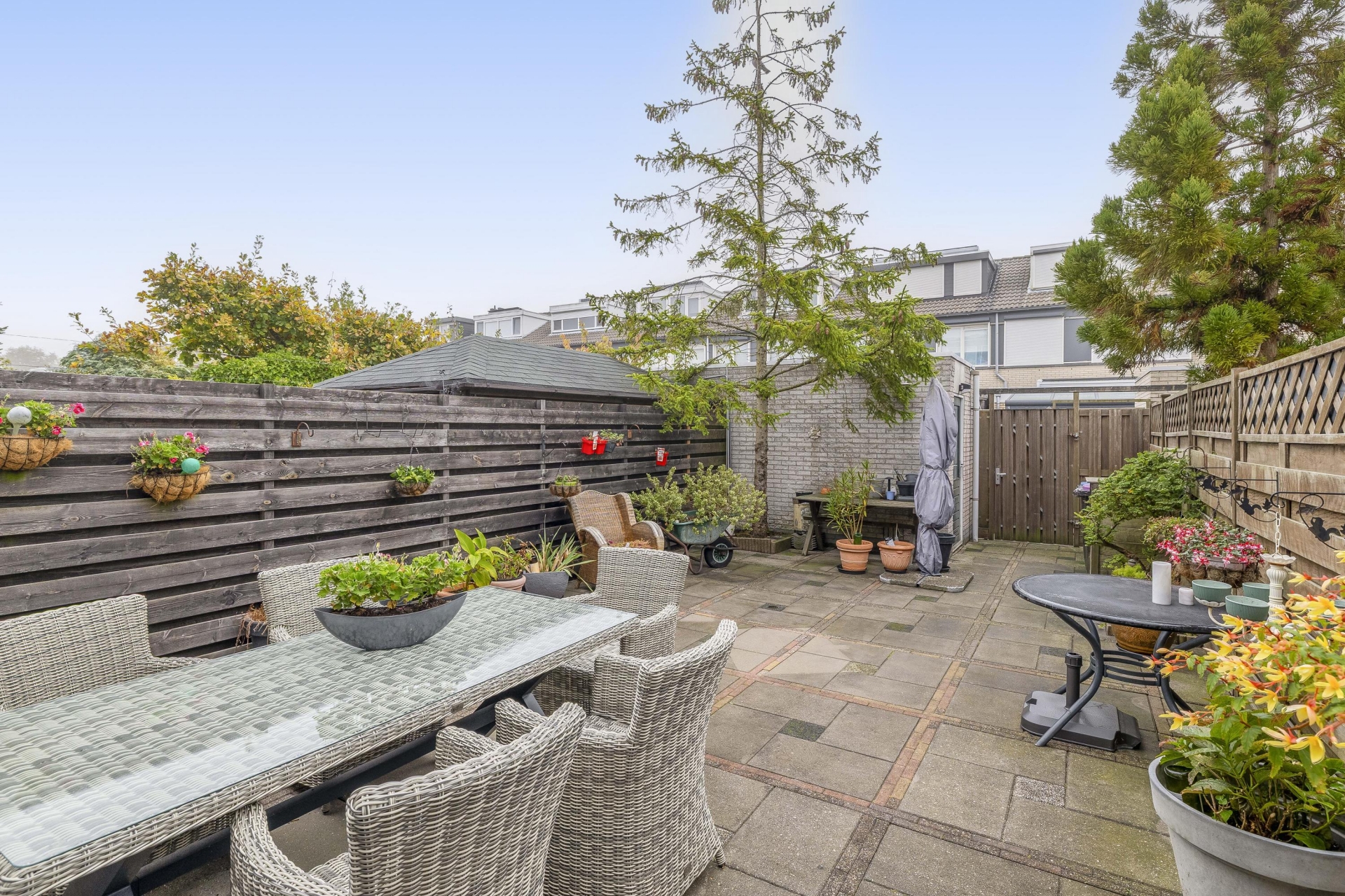 De tuin is onderhoudsvriendelijk aangelegd met sierbestrating, een border met groen en voldoende plek voor een grote loungeset of eettafel. Omdat de tuin op het zuidoosten ligt, geniet je van de ochtend- tot aan het einde van de middag van zon. Achterin staat een vrijstaande stenen berging, ideaal voor fietsen en tuingereedschap. De tuin is ook via een achterom bereikbaar.