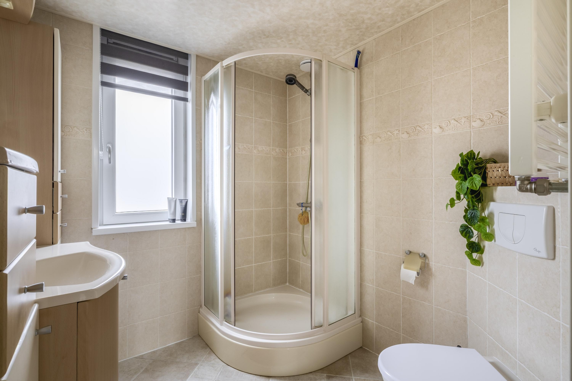 Op de eerste verdieping zijn drie slaapkamers, waarbij de grootste slaapkamer en een tweede slaapkamer aan de achterzijde zijn voorzien van een kunststof dakkapel. De kamers zijn praktisch ingedeeld en geschikt als slaapkamer, werkkamer of kinderkamer. De badkamer is compleet ingericht met een douchecabine, toilet en wastafelmeubel, en netjes afgewerkt in lichte kleurstelling.