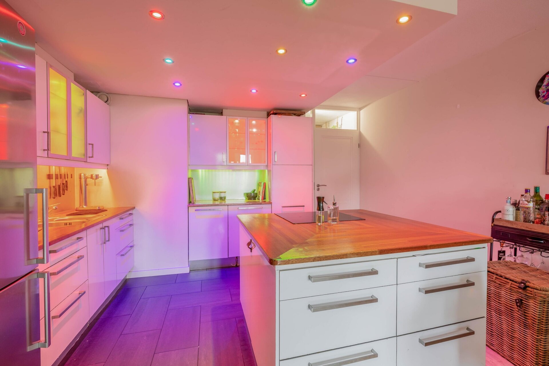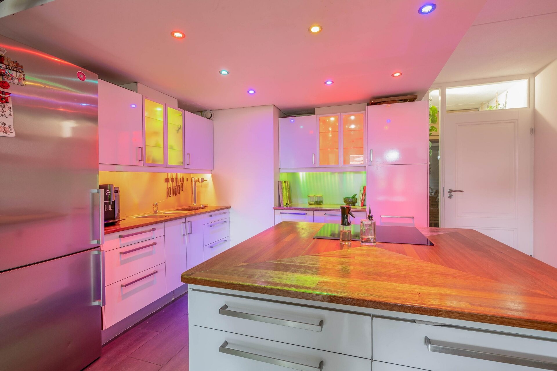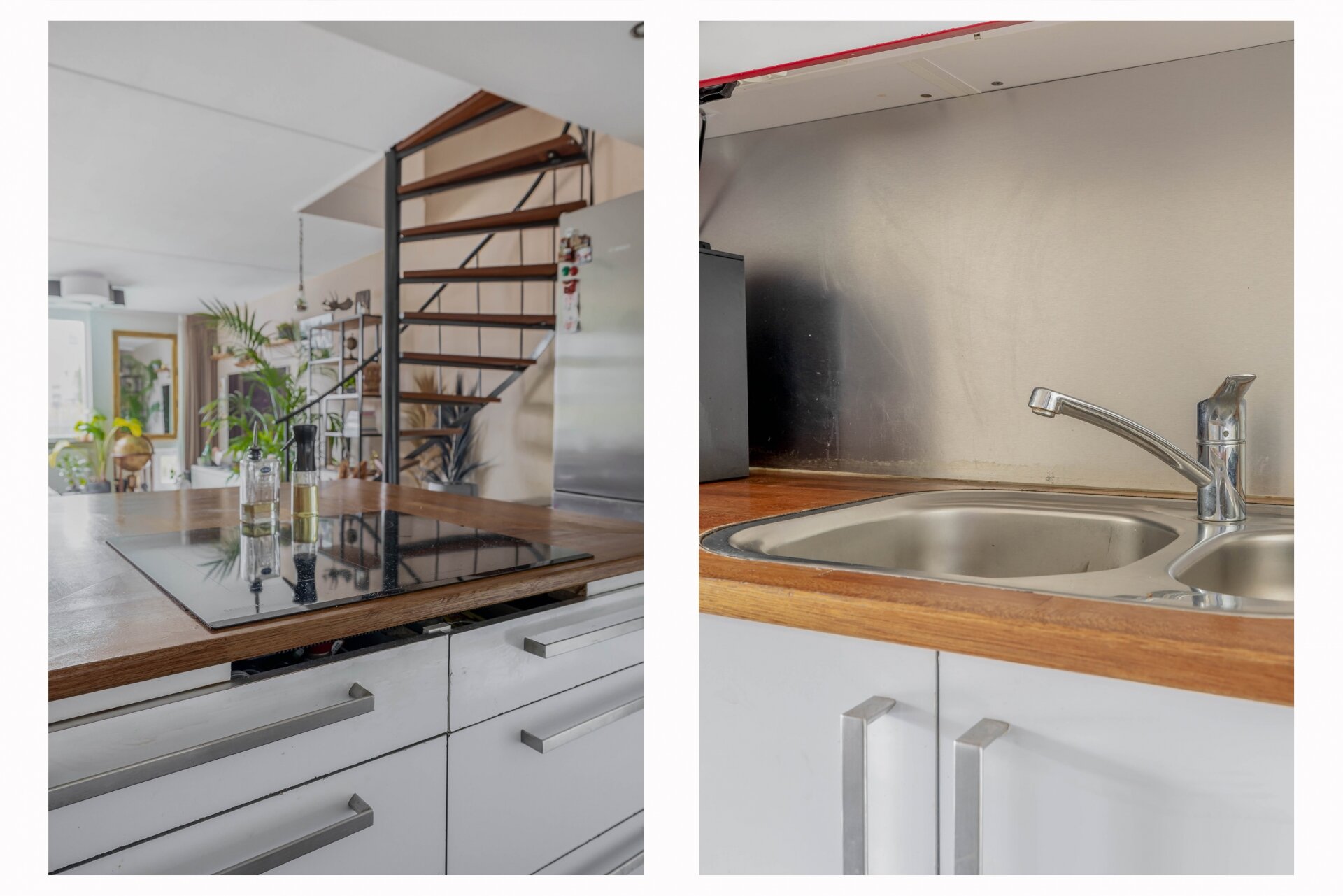De open keuken met kookeiland vormt het hart van het appartement. Een gezellige ruimte met volop werk- en kastruimte, ideaal om te koken, borrelen of gewoon lekker aan te schuiven. De keuken staat in open verbinding met de lichte woonkamer met grote raampartijen en een sfeervol uitzicht richting het stadsplein.