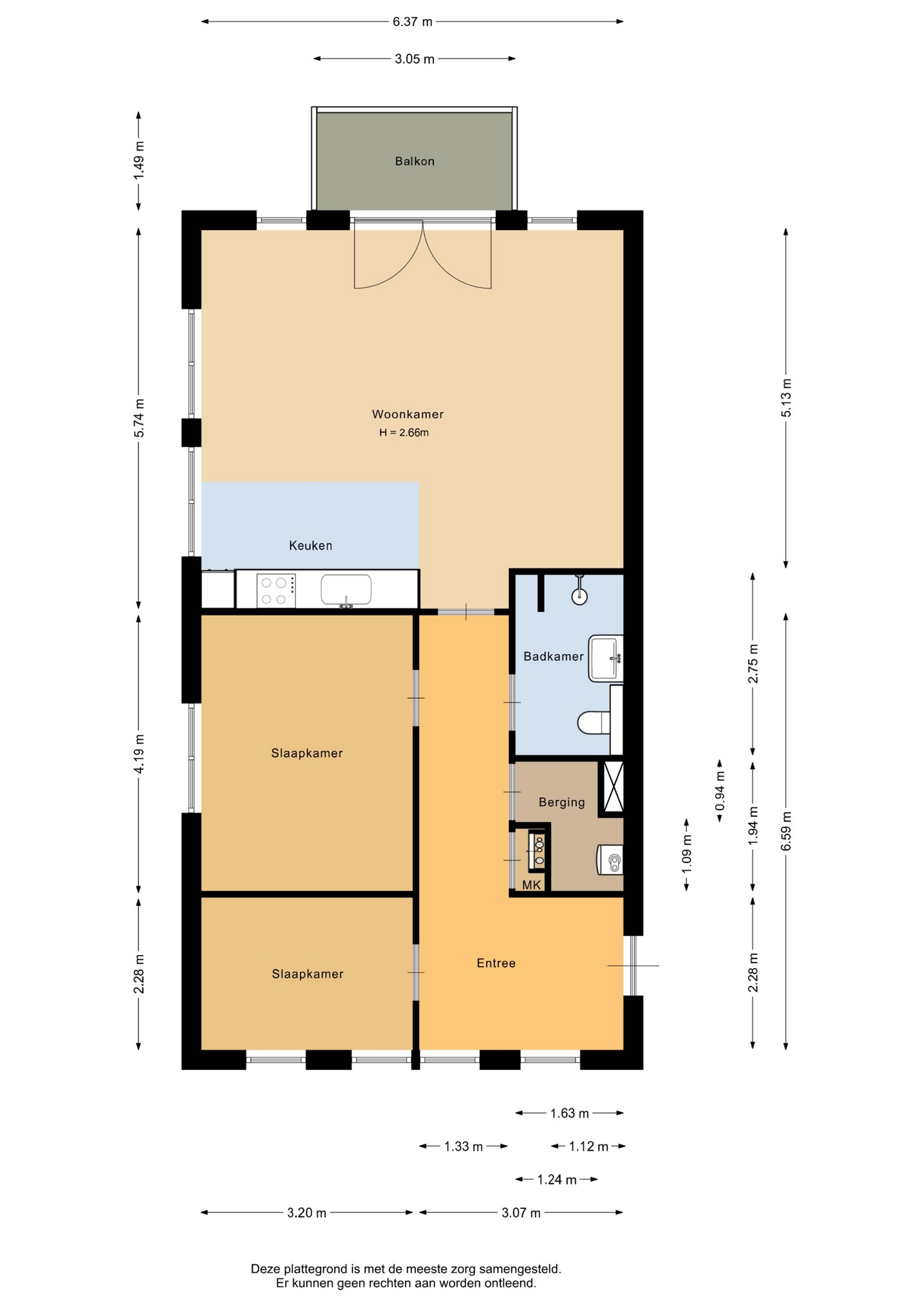 “Deze informatie is door ons met de nodige zorgvuldigheid samengesteld. Onzerzijds wordt echter geen enkele aansprakelijkheid aanvaard voor enige onvolledigheid, onjuistheid of anderszins, dan wel de gevolgen daarvan. Alle opgegeven maten en oppervlakten zijn indicatief.”