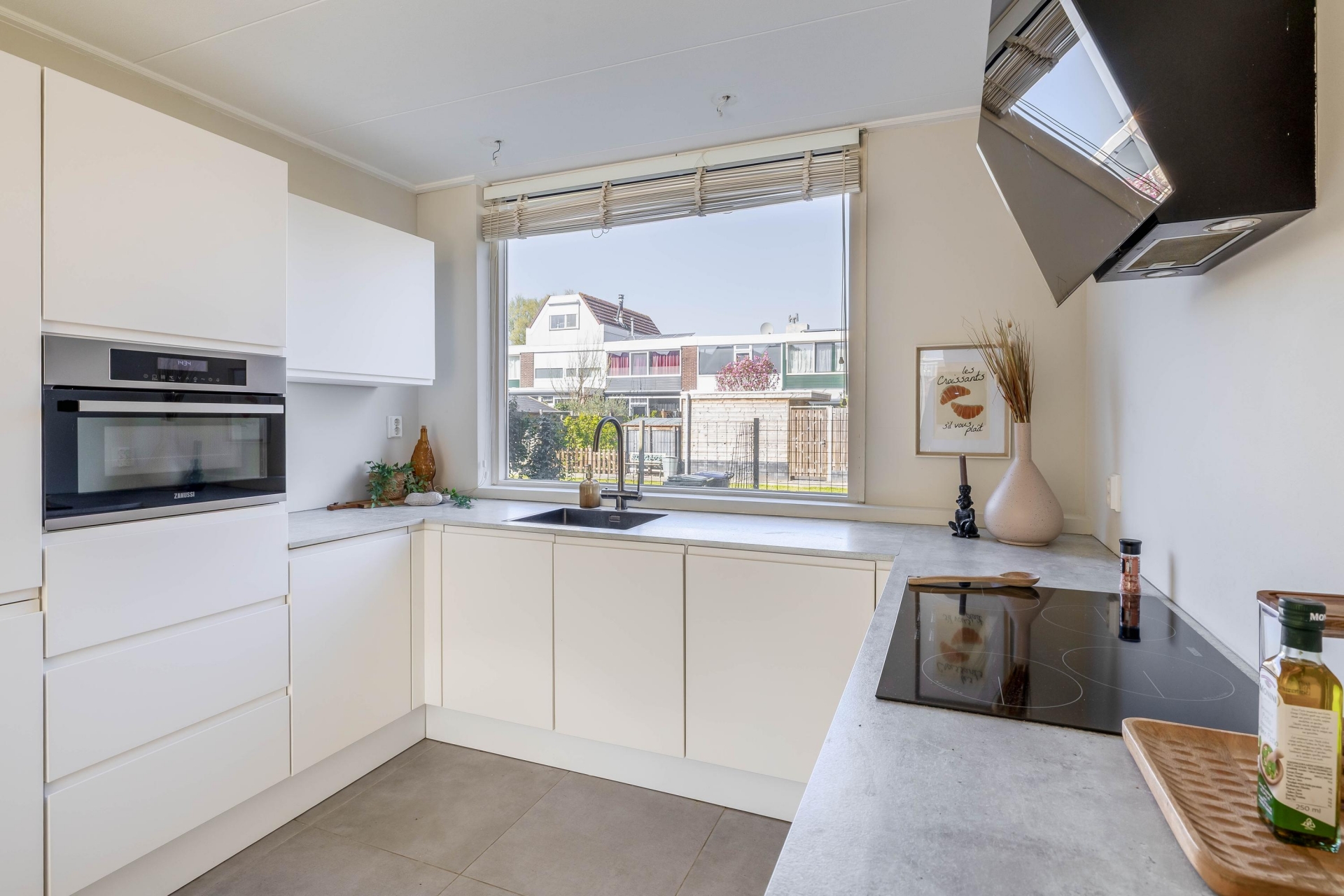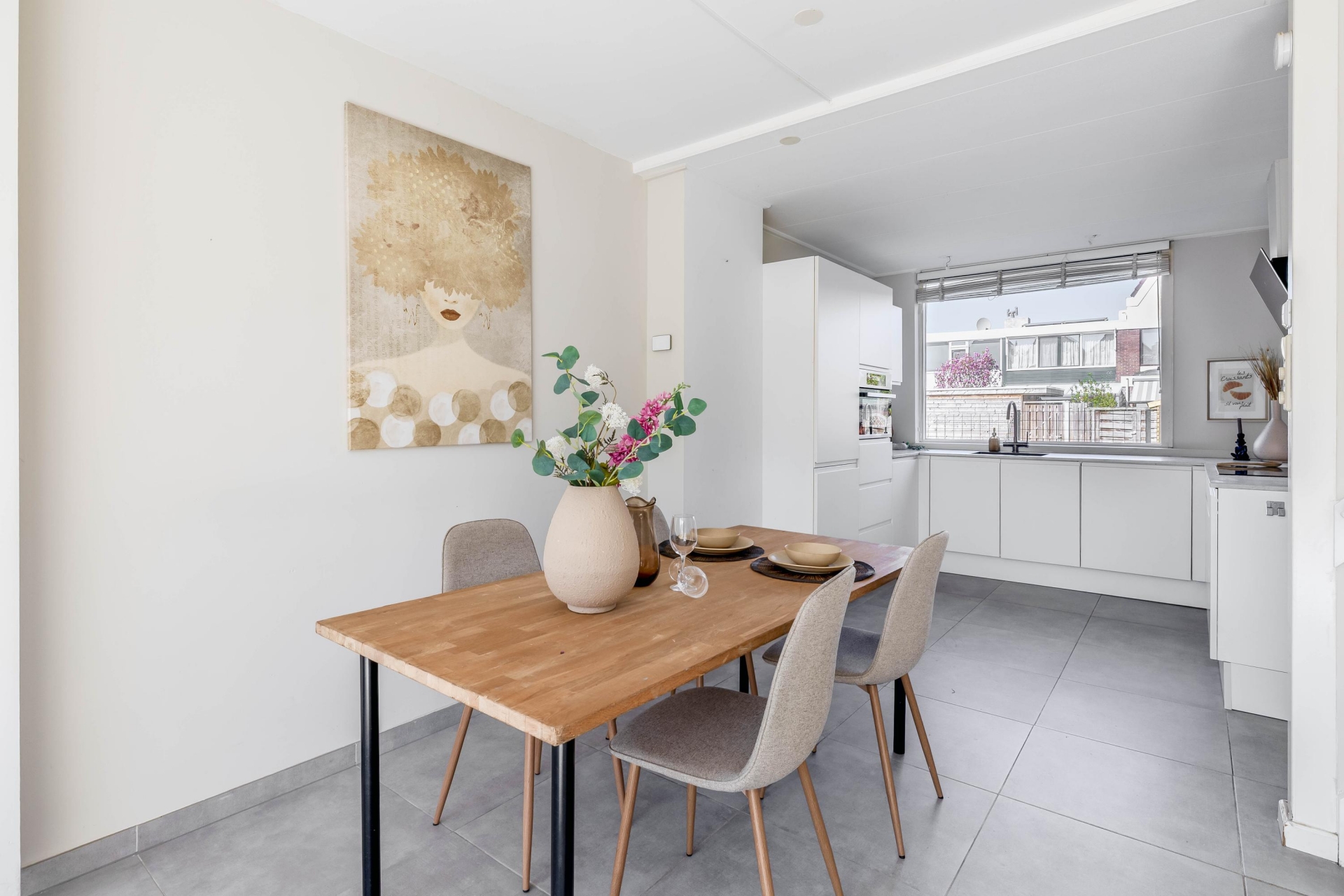 Bij binnenkomst merk je het direct: dit huis voelt licht, ruim en prettig aan. De woonkamer is opgezet als een fijne doorzonruimte met aan de achterzijde grote raampartijen en openslaande deuren richting de tuin. Hierdoor valt het daglicht rijkelijk naar binnen en ontstaat er een open en uitnodigende sfeer. De woonkamer biedt volop ruimte voor een comfortabele zithoek en een royale eethoek, perfect voor zowel dagelijks gebruik als gezellige avonden met familie en vrienden. De strakke afwerking en rustige kleurstelling zorgen ervoor dat je hier zo kunt intrekken en het helemaal naar je eigen smaak kunt maken.