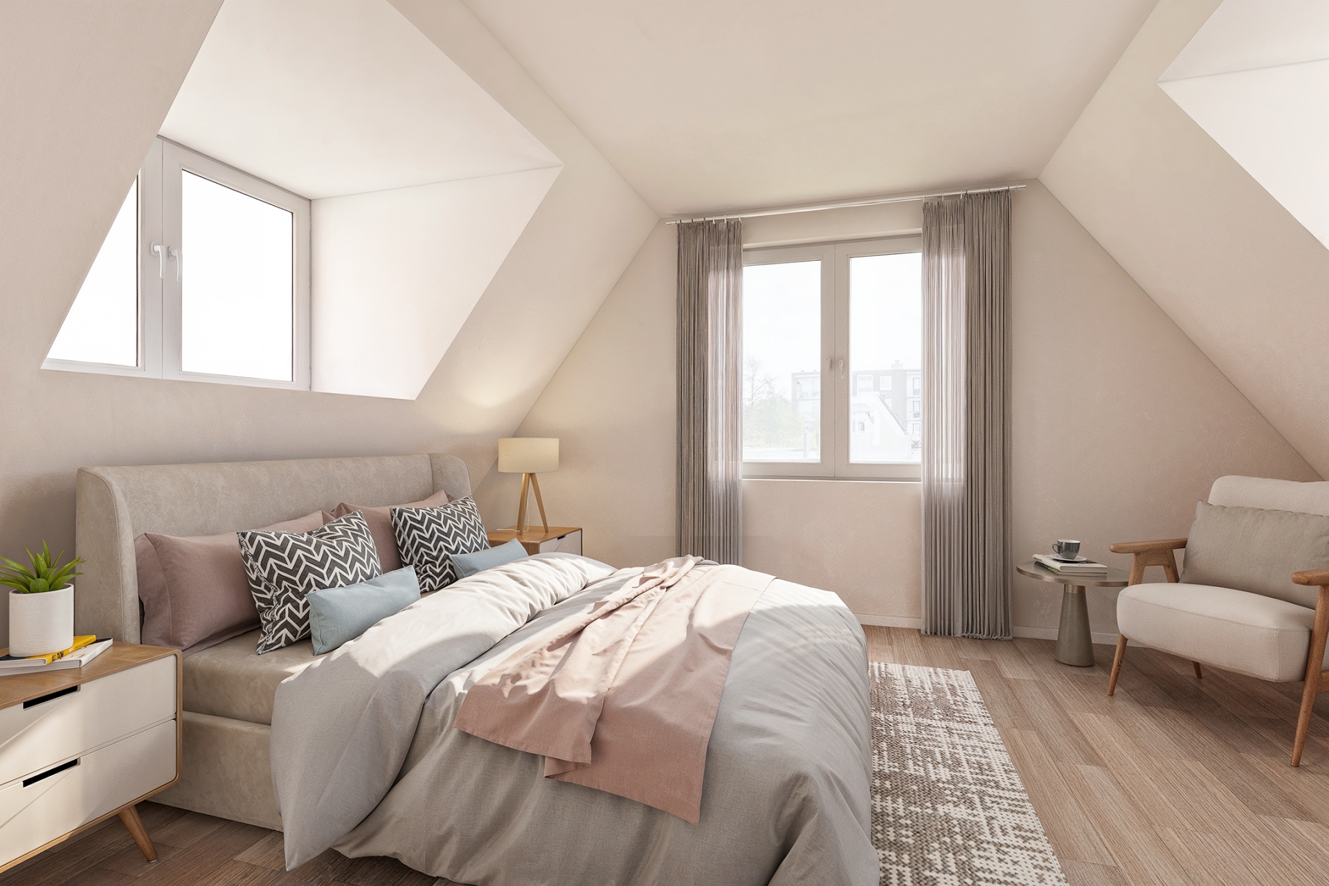 Op de eerste en tweede verdieping vind je in totaal vier slaapkamers. De grootste slaapkamer bevindt zich aan de achterzijde en biedt voldoende ruimte voor een tweepersoonsbed en kastruimte. De overige slaapkamers zijn stuk voor stuk goed bruikbaar als kinderkamer, werkkamer of hobbyruimte. De indeling is overzichtelijk en praktisch, met een centrale overloop en slimme kastruimtes. Ook de tweede verdieping biedt extra kamers, waardoor dit huis geschikt is voor verschillende levensfases: van starters die willen doorgroeien tot gezinnen die ruimte zoeken.