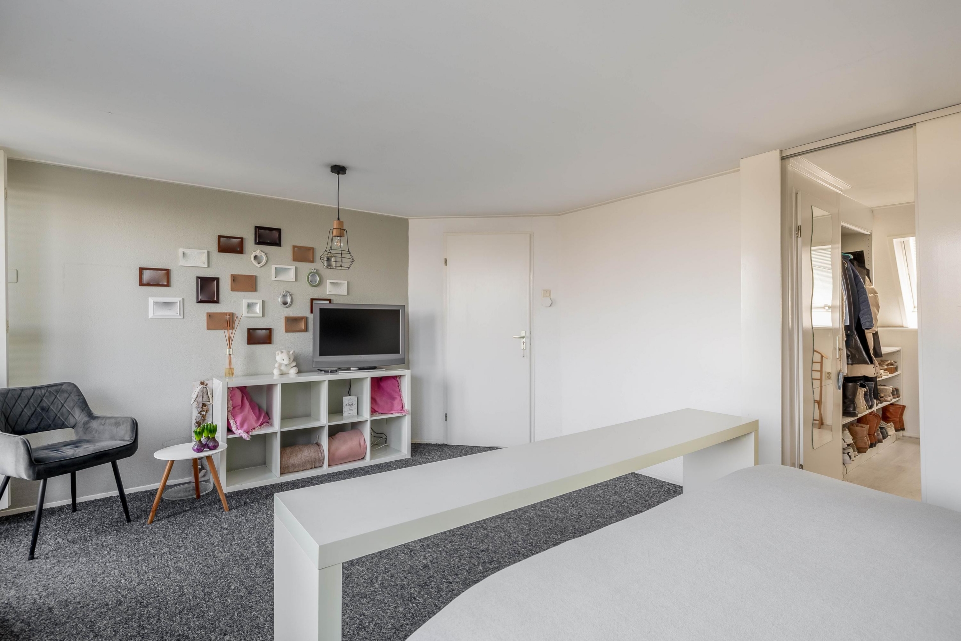 Een verdieping hoger bevinden zich maar liefst drie slaapkamers. Dankzij de praktische indeling zijn de kamers goed te gebruiken als slaapkamers voor een gezin, maar ook als werkkamer of hobbyruimte.