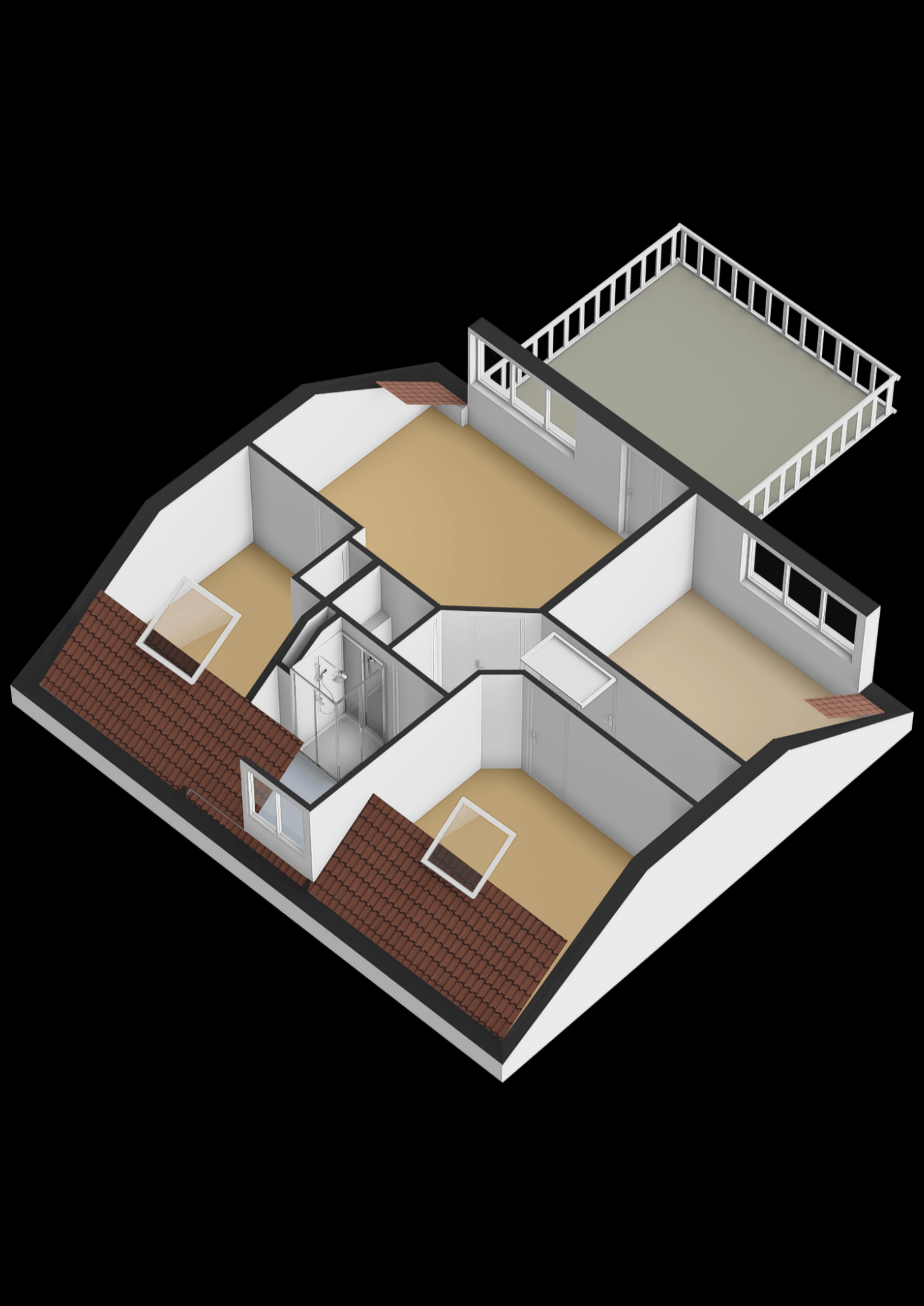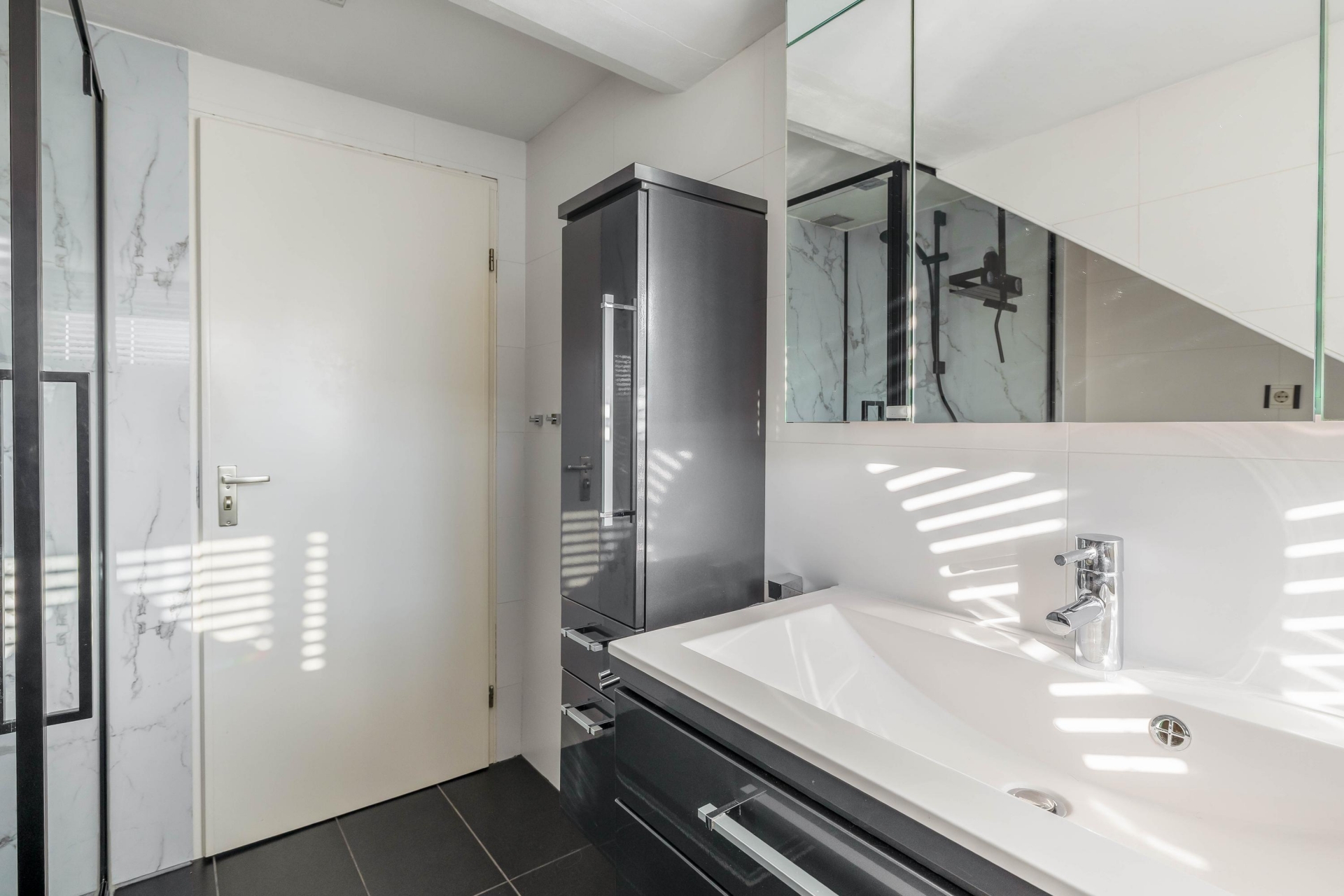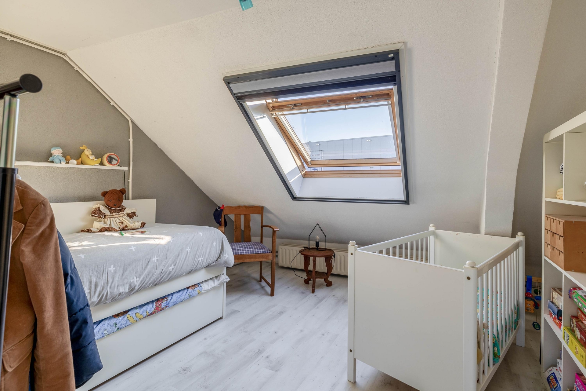 De moderne badkamer is stijlvol en praktisch ingericht en voorzien van een douche, wastafelmeubel en alle comfort die je dagelijks nodig hebt. Ook is er een separaat toilet op deze verdieping. De indeling van deze verdieping maakt het geheel compleet en comfortabel voor een gezin.