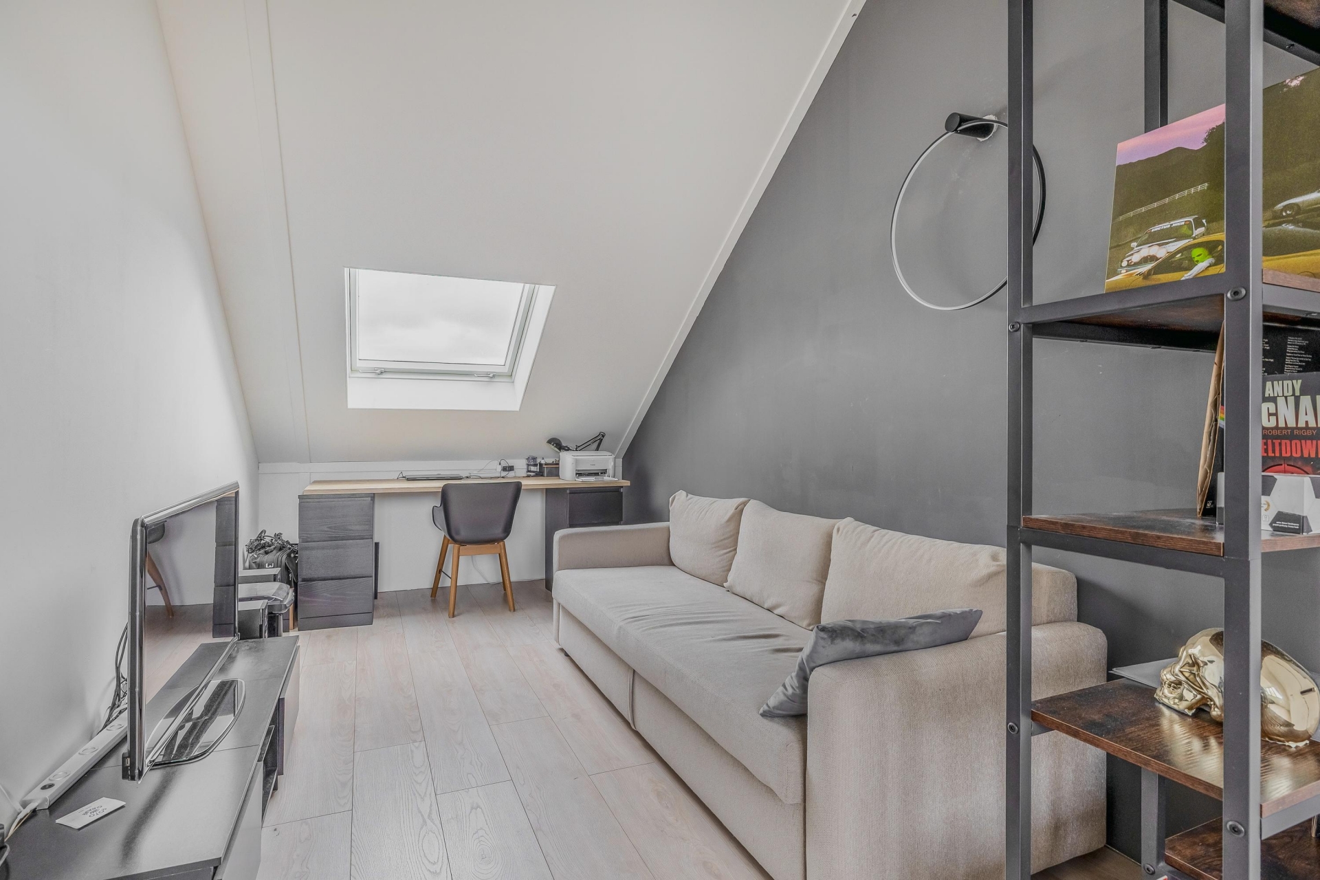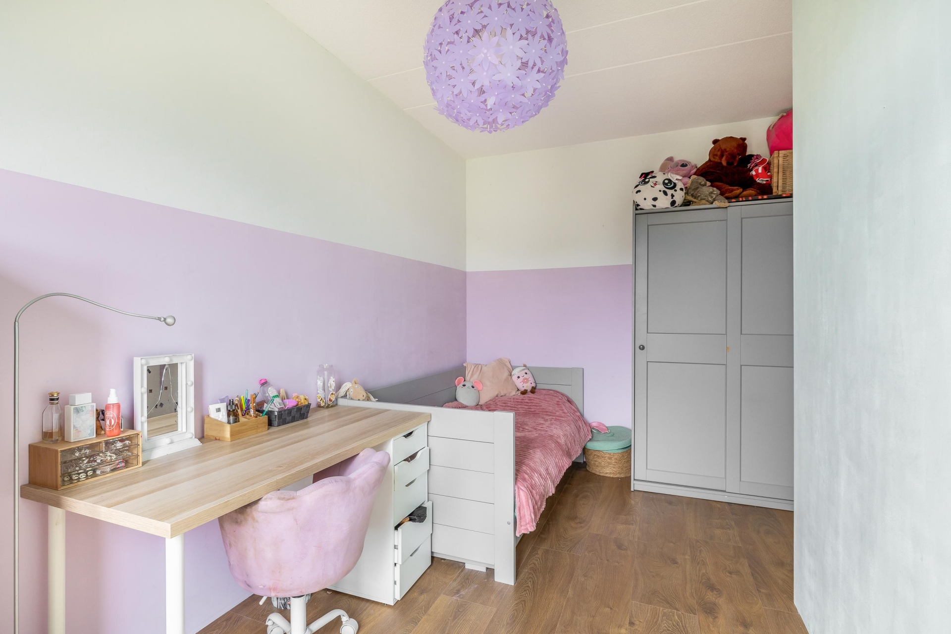 Verspreid over de eerste en tweede verdieping vind je vier slaapkamers van verschillende afmetingen, beide verdiepingen zijn eveneens v.v. vloerverwarming. De grootste slaapkamer ligt aan de voorzijde, met ruimte voor een tweepersoonsbed en kledingkasten. De kinderkamers aan de achterzijde zijn vrolijk en licht, en hebben zicht op de tuin. Op zolder is dankzij de dakkapel een mooie extra kamer ontstaan – ideaal als werkplek, hobbyruimte of extra slaapkamer. Hier vind je ook de wasmachineaansluiting en praktische bergruimte.