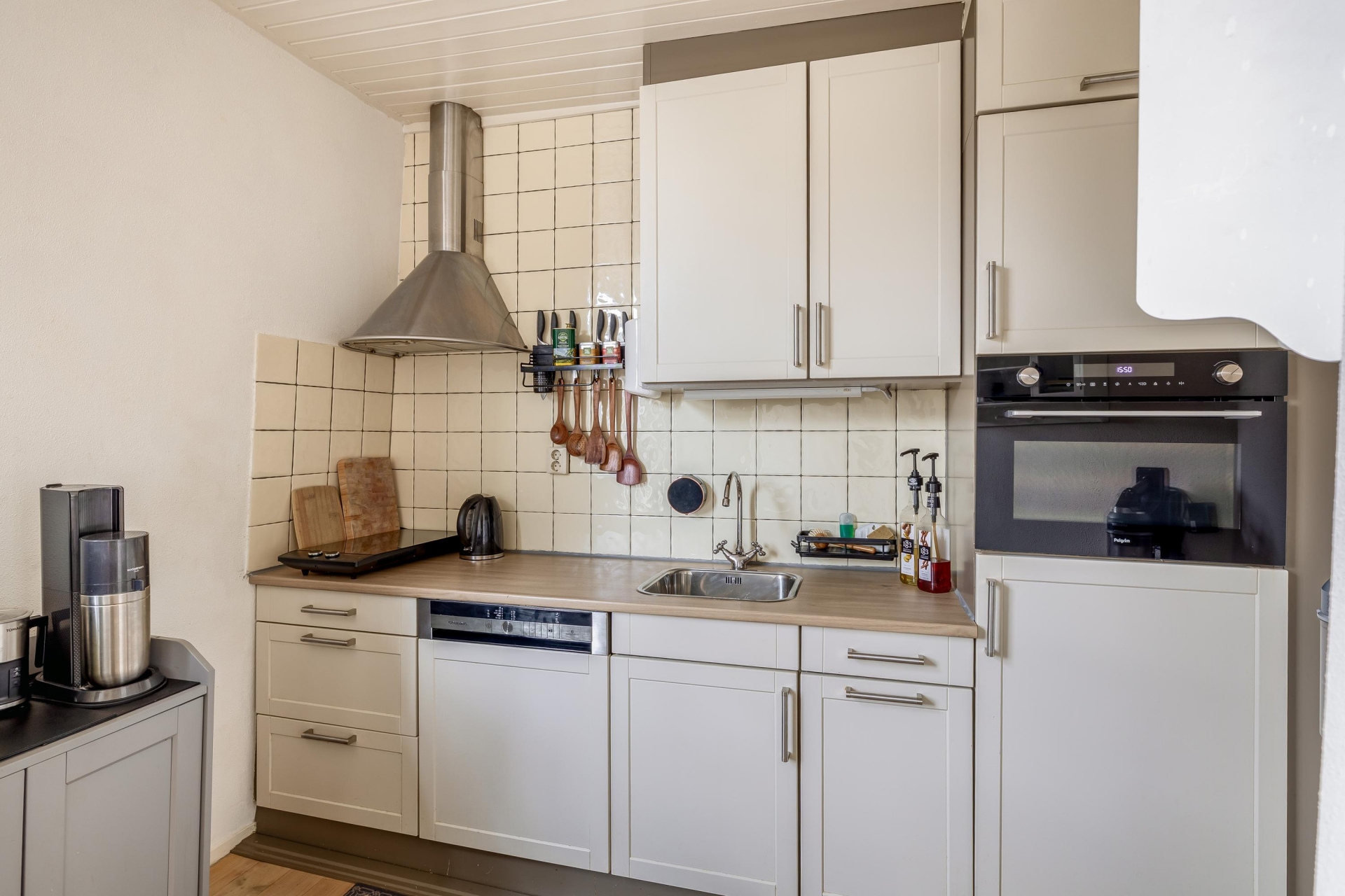 De keuken is praktisch ingericht en voorzien van diverse inbouwapparatuur (2023).