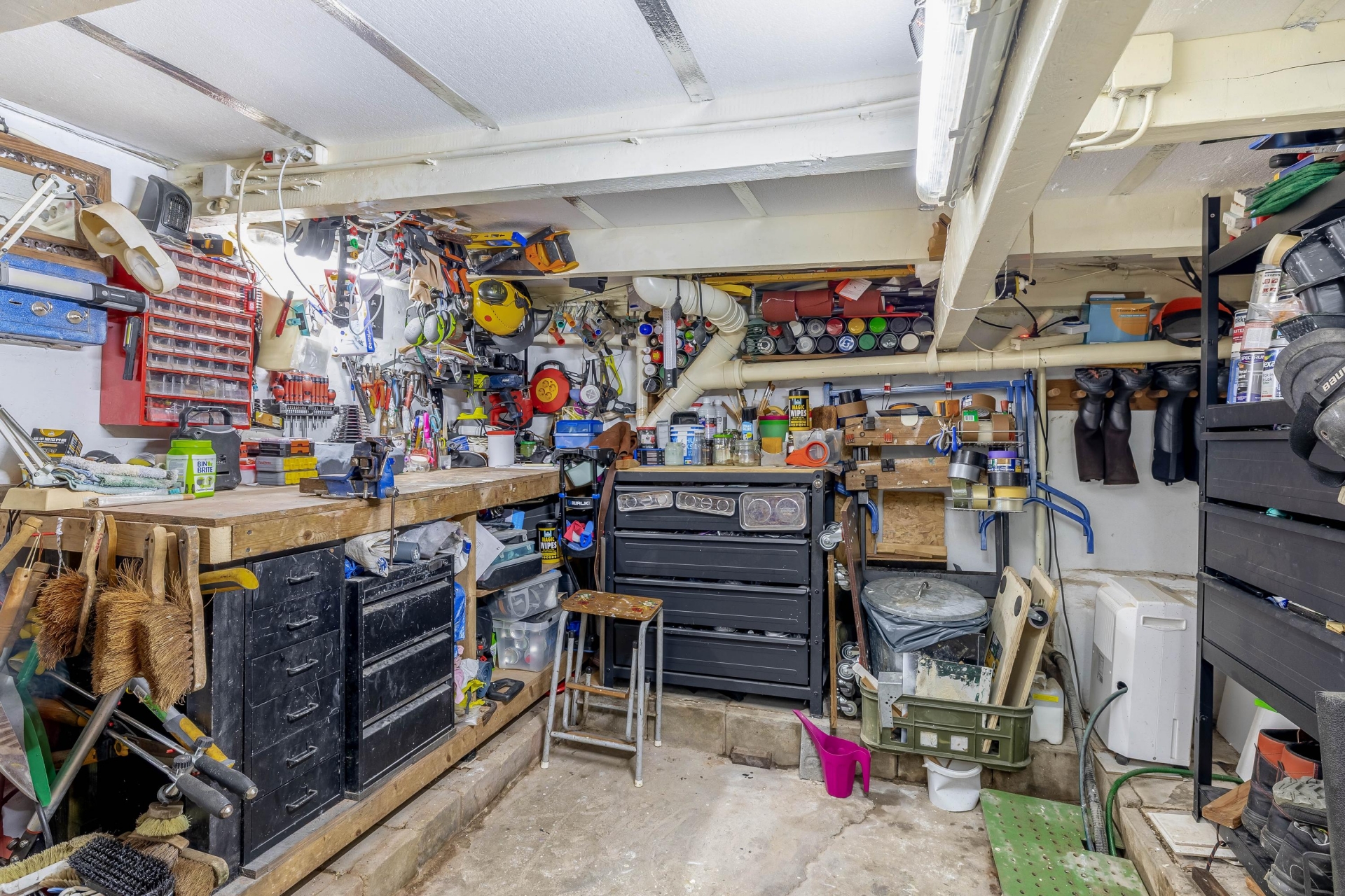 Daarnaast beschikt het huis over een praktische vliering, ideaal voor het opbergen van spullen die je niet dagelijks nodig hebt. Wat dit huis extra bijzonder maakt, is het ruime onderhuis. Hier heb je verrassend veel bergruimte, perfect voor voorraad, hobbyspullen of bijvoorbeeld fietsen.
