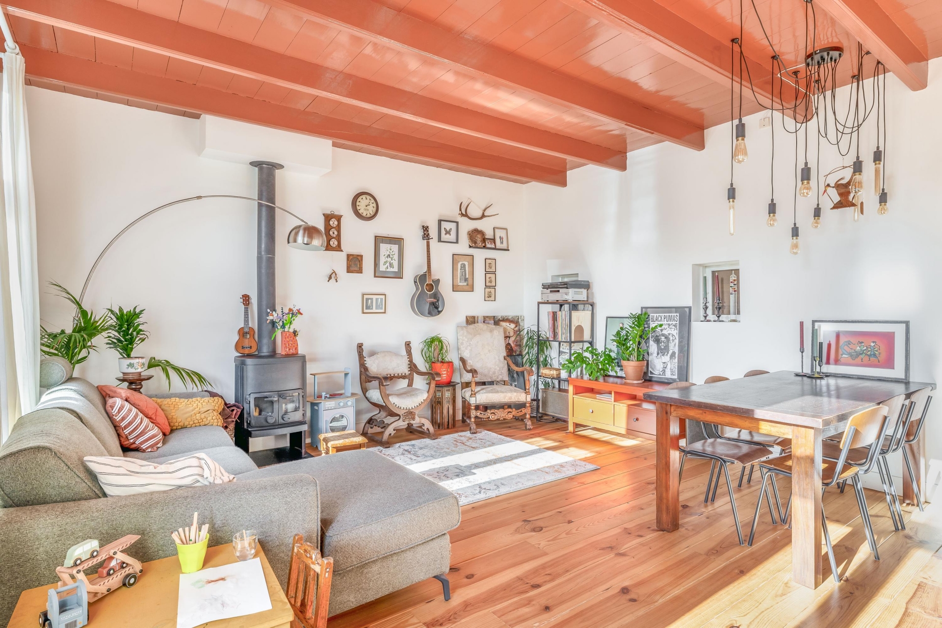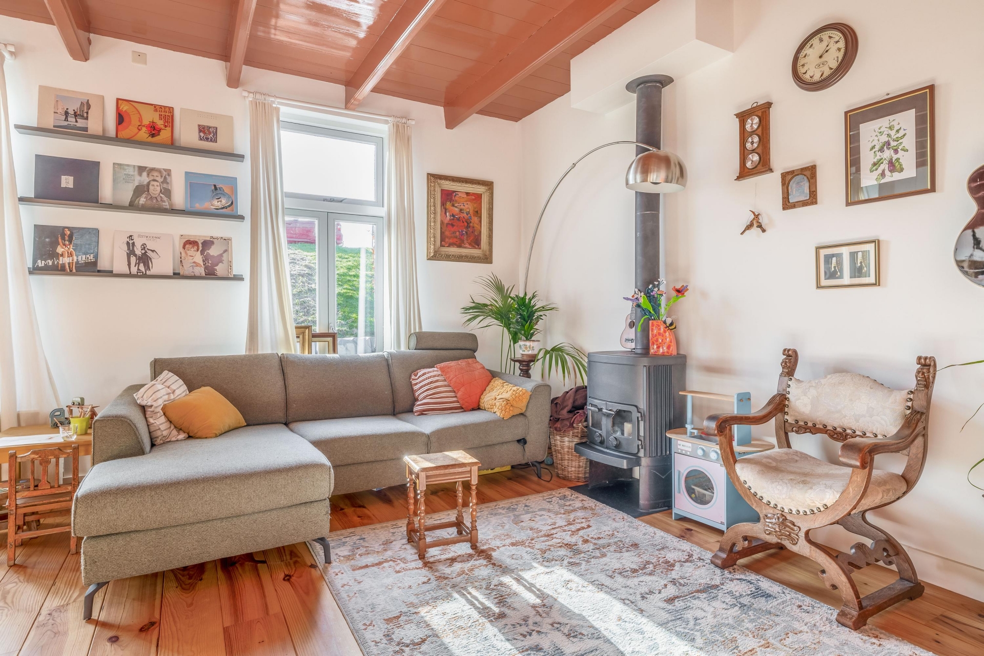 LICHTE WOONKAMER MET HOUTKACHEL