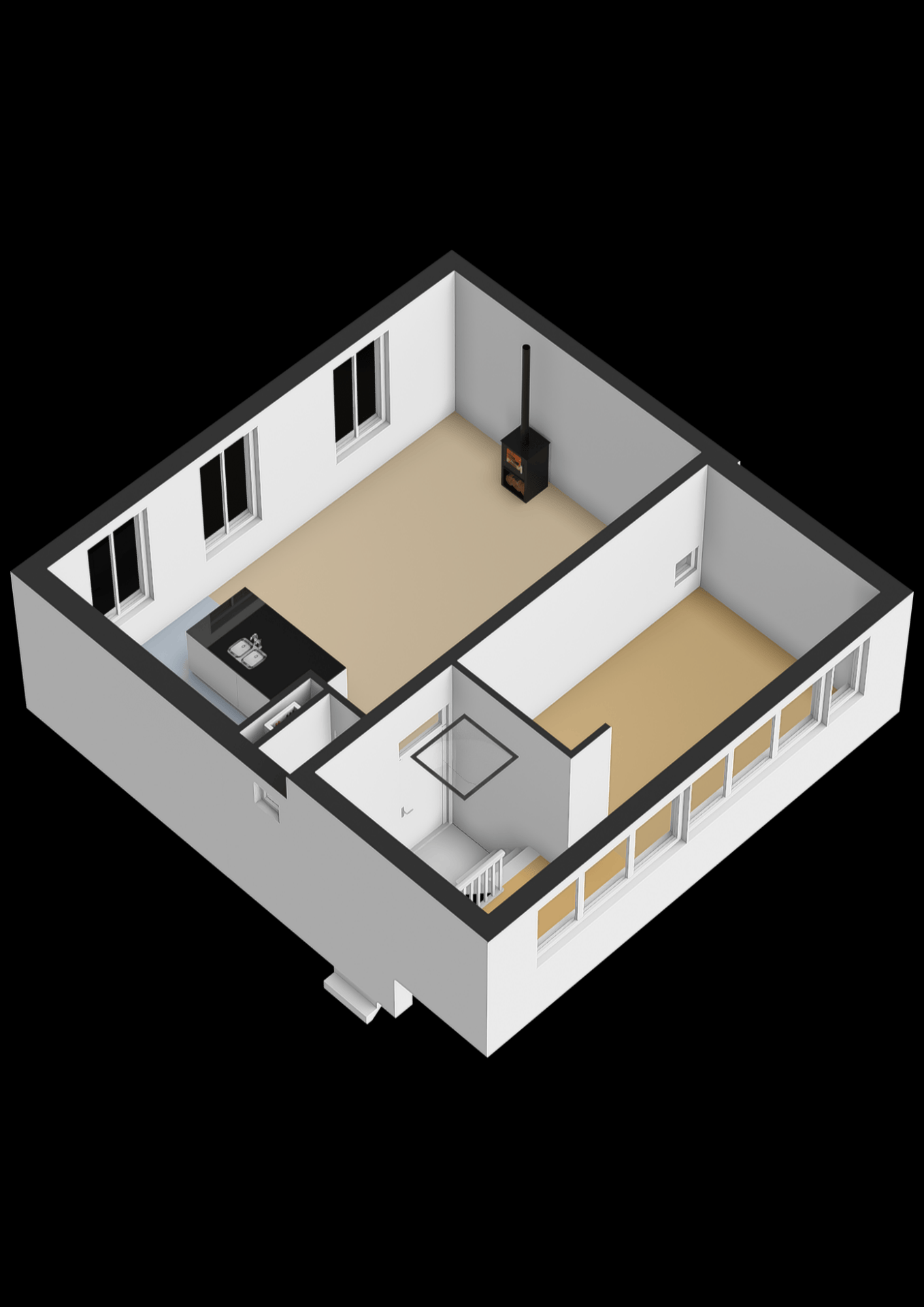 De ruimte is groot genoeg voor een royale zithoek én een aparte werk- of speelhoek. Dat maakt het huis geschikt voor verschillende levensfasen. Of je nu net start of met een jong gezin een volgende stap zet, hier kun je alle kanten op.