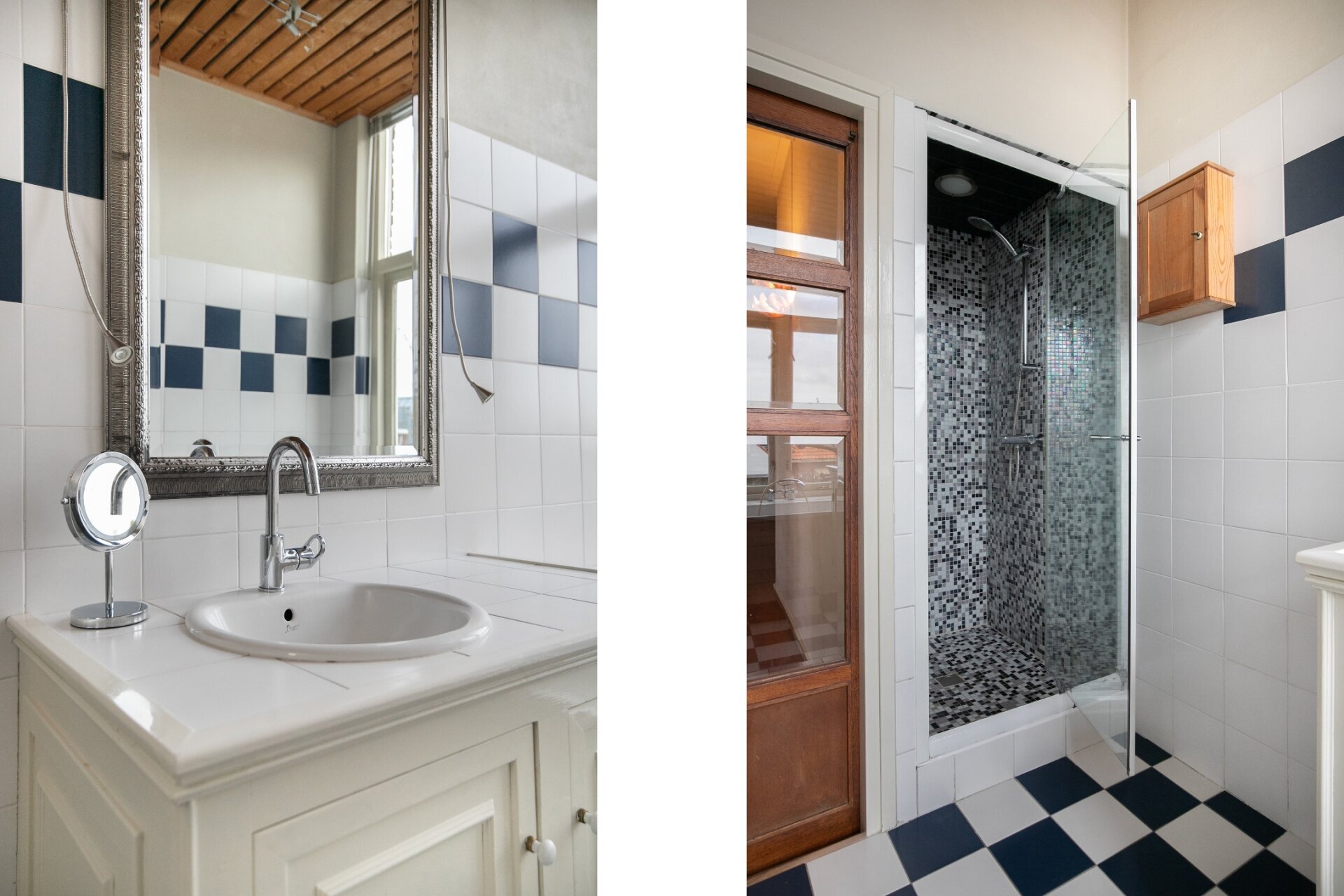 Op de tweede verdieping bevindt zich ook een moderne tweede badkamer, met zwevend toilet, dubbele wastafel en douchecabine. Tevens zijn hier de aansluitingen voor de wasmachine en droger.