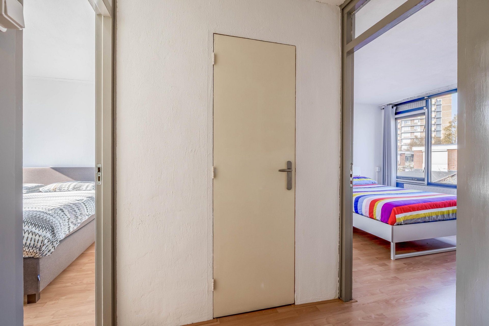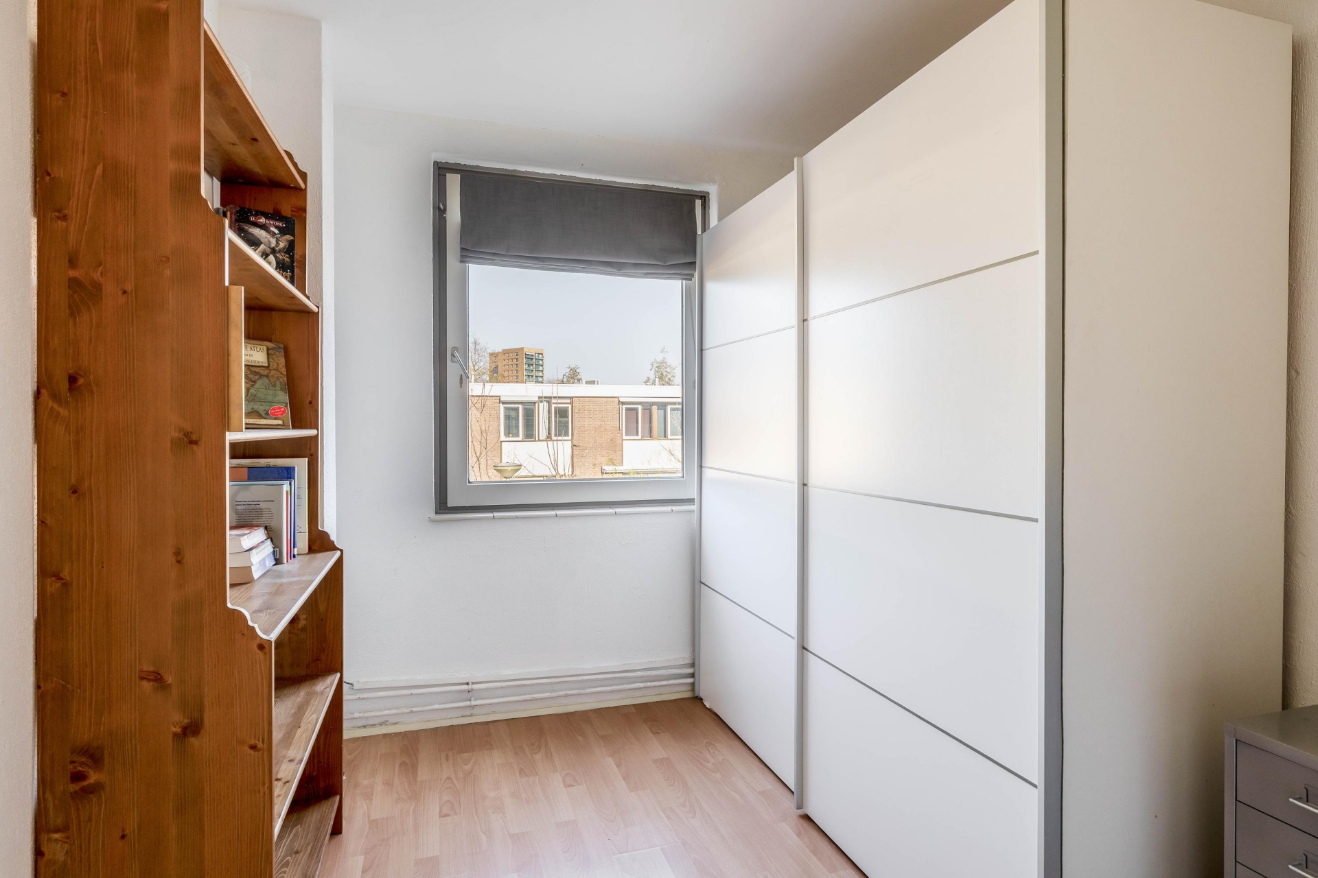 nog twee extra slaapkamers die bijvoorbeeld gebruikt kunnen worden als kinderkamer, logeerkamer of thuiskantoor. De badkamer is in 2018 vernieuwd en heeft een nette en moderne uitstraling. De ruimte is voorzien van een douche, wastafelmeubel en een toilet. Dankzij het aanwezige raam kan de badkamer goed worden geventileerd en komt er