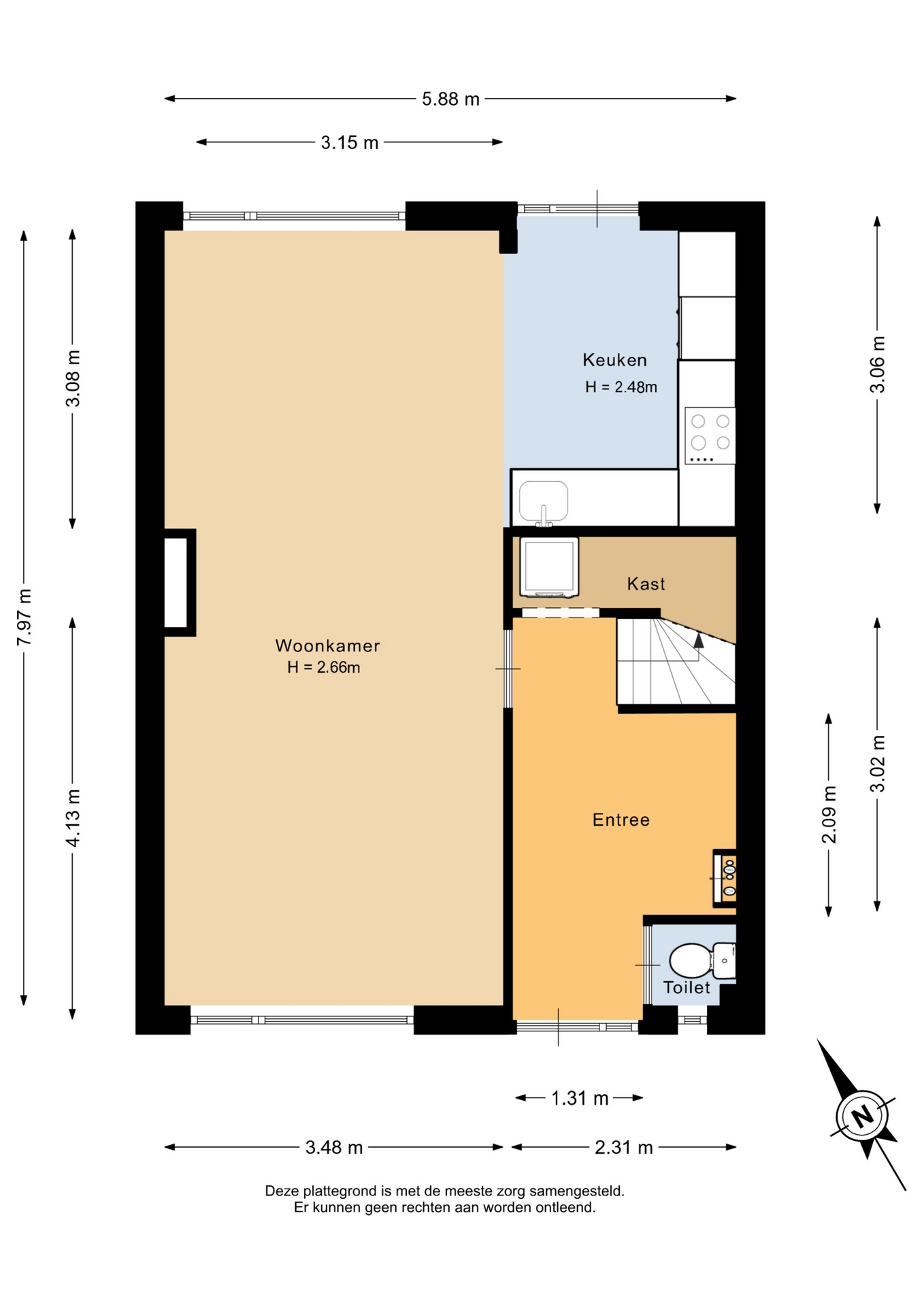 “Deze informatie is door ons met de nodige zorgvuldigheid samengesteld. Onzerzijds wordt echter geen enkele aansprakelijkheid aanvaard voor enige onvolledigheid, onjuistheid of anderszins, dan wel de gevolgen daarvan. Alle opgegeven maten en oppervlakten zijn indicatief.”