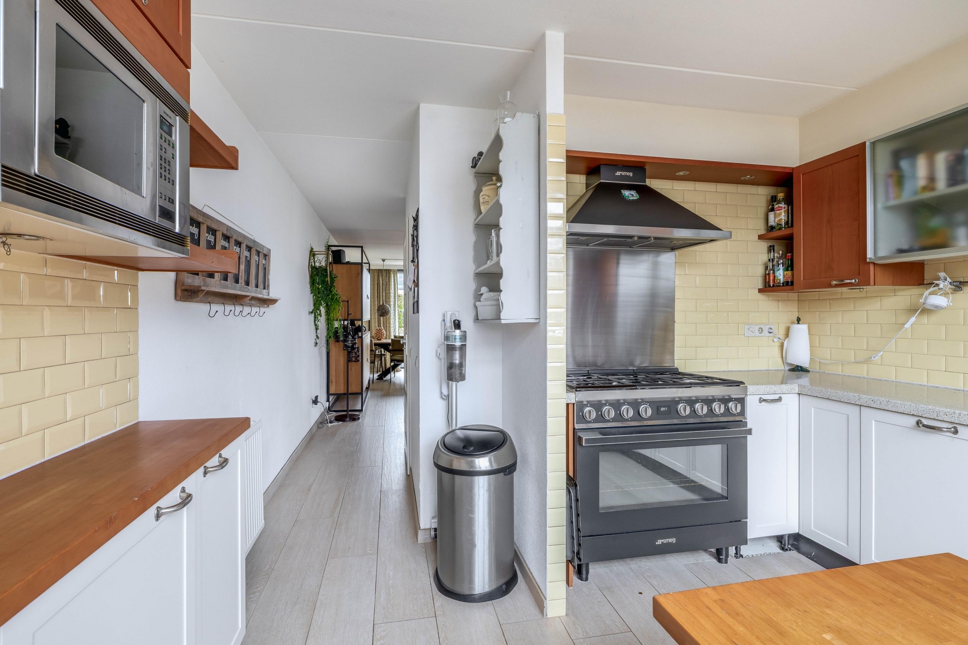 De woning heeft een woonruimte van 168 m2, verdeeld over 3 woonlagen. De voortuin beschikt over een privé parkeerruimte onder een ruime carport, die toegang biedt tot de woning en inpandige berging. Op de begane grond is de ruime woonkamer gelegen welke aan de achterzijde is gesitueerd. Door de vernieuwde pui in de achtergevel is er een fraai zicht op de achtertuin. Door de hoekligging is de woonkamer bijzonder licht. Verder is de woonkamer voorzien van een houtlook tegelvloer met vloerverwarming (2020) en van airconditioning (2021). Aan de voorzijde is de keuken gelegen met 6 pits SMEG gasfornuis (2018), een nieuwe vaatwasser. Tevens is er een Quooker aanwezig met een 7 L reservoir. Op de eerste verdieping zijn 3 ruime slaapkamers en een complete badkamer. De slaapkamers hebben een oppervlakte van circa 16, 14 en 10 m². De master bedroom is gesitueerd aan de zuidelijke achterzijde en is gelegen aan het balkon. De badkamer is volledig betegeld en voorzien van een extra ruime inloopdouche, een groot en diep ligbad, een toilet en een wastafel met moderne ombouw. Hier kom je dus niets tekort. Op de tweede verdieping zijn nog eens 2 ruime kamers te vinden, met een oppervlakte van 11 en 10 m². Ideaal hier is de royale overloop waar, naast de opstelling voor de wasmachine, droger en cv-ketel, nog genoeg ruimte is voor een eventuele tweede badkamer. Aan bergruimte ook geen gebrek, de aanwezige vliering, die de gehele breedte en lengte van het huis beslaat, biedt voldoende ruimte voor het opbergen van de seizoensgebonden spullen.