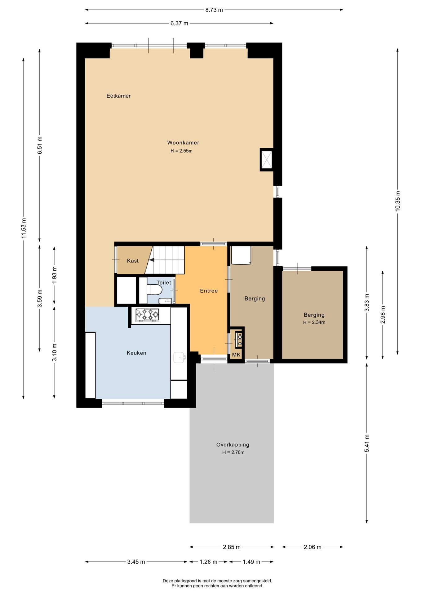 “Deze informatie is door ons met de nodige zorgvuldigheid samengesteld. Onzerzijds wordt echter geen enkele aansprakelijkheid aanvaard voor enige onvolledigheid, onjuistheid of anderszins, dan wel de gevolgen daarvan. Alle opgegeven maten en oppervlakten zijn indicatief.”