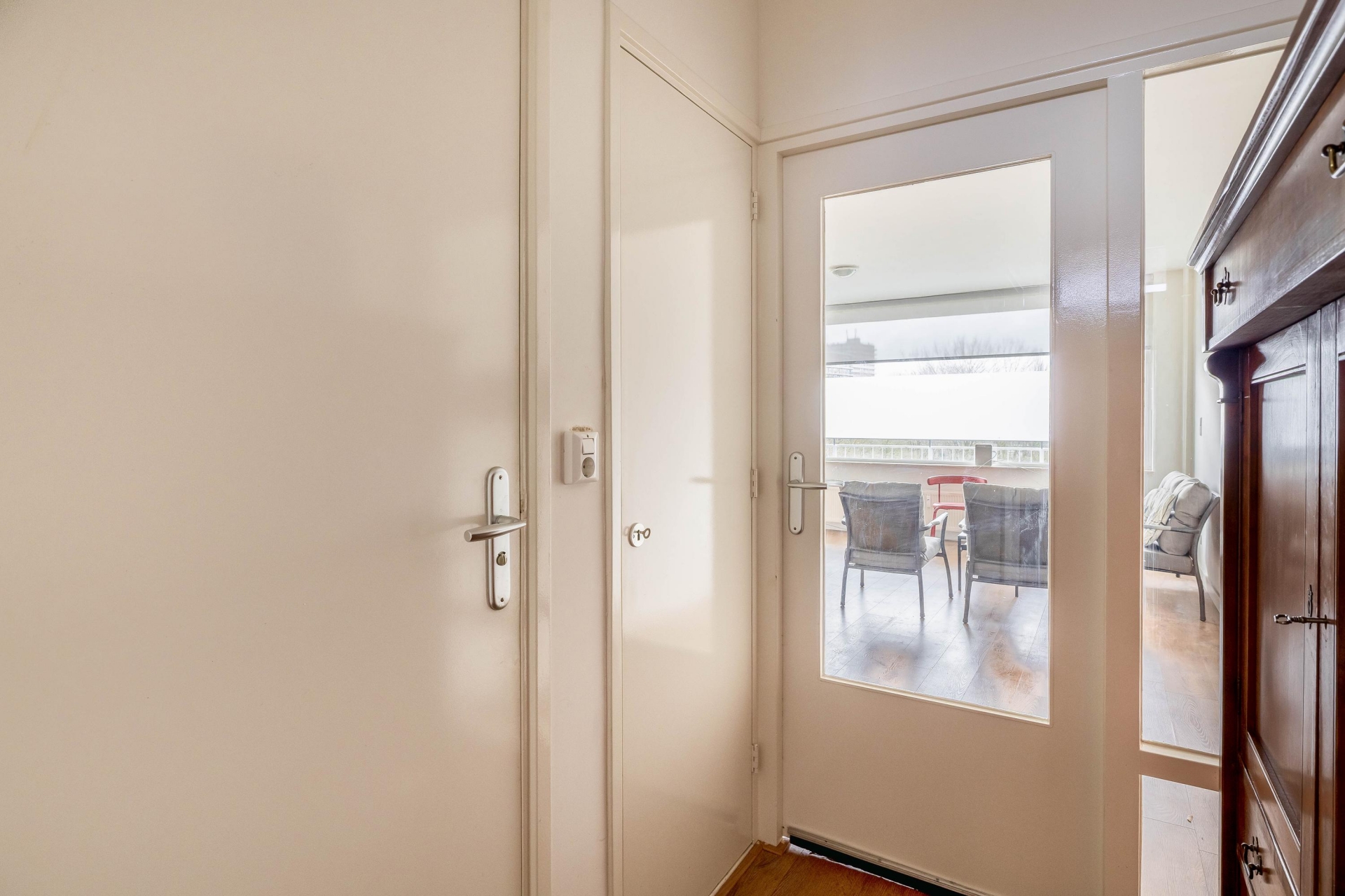 Vanuit de woonkamer stap je zo het balkon op — een heerlijke verlenging van je leefruimte in de warmere maanden.