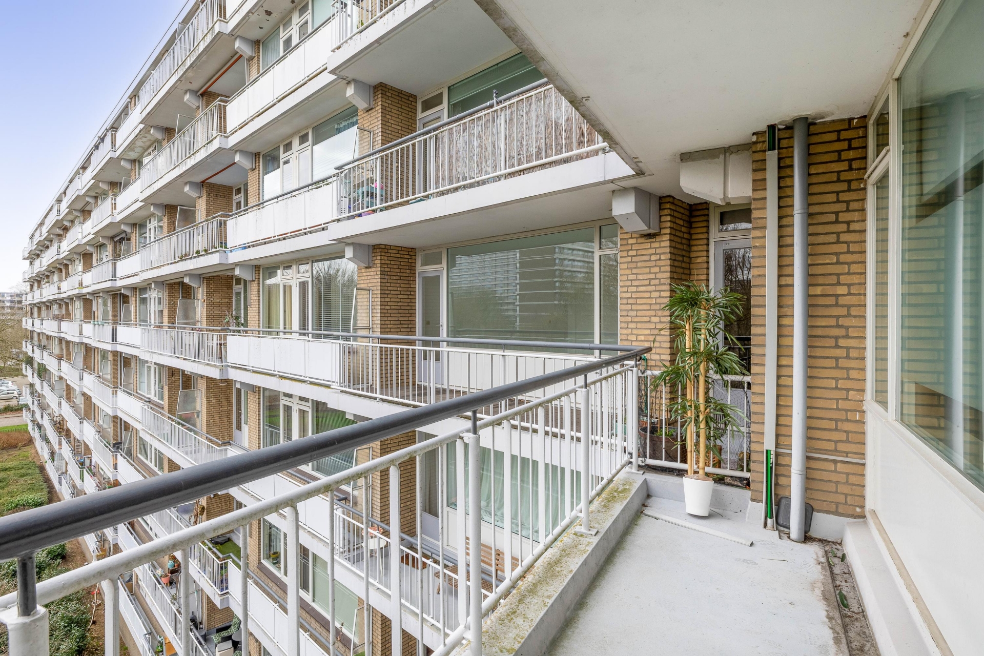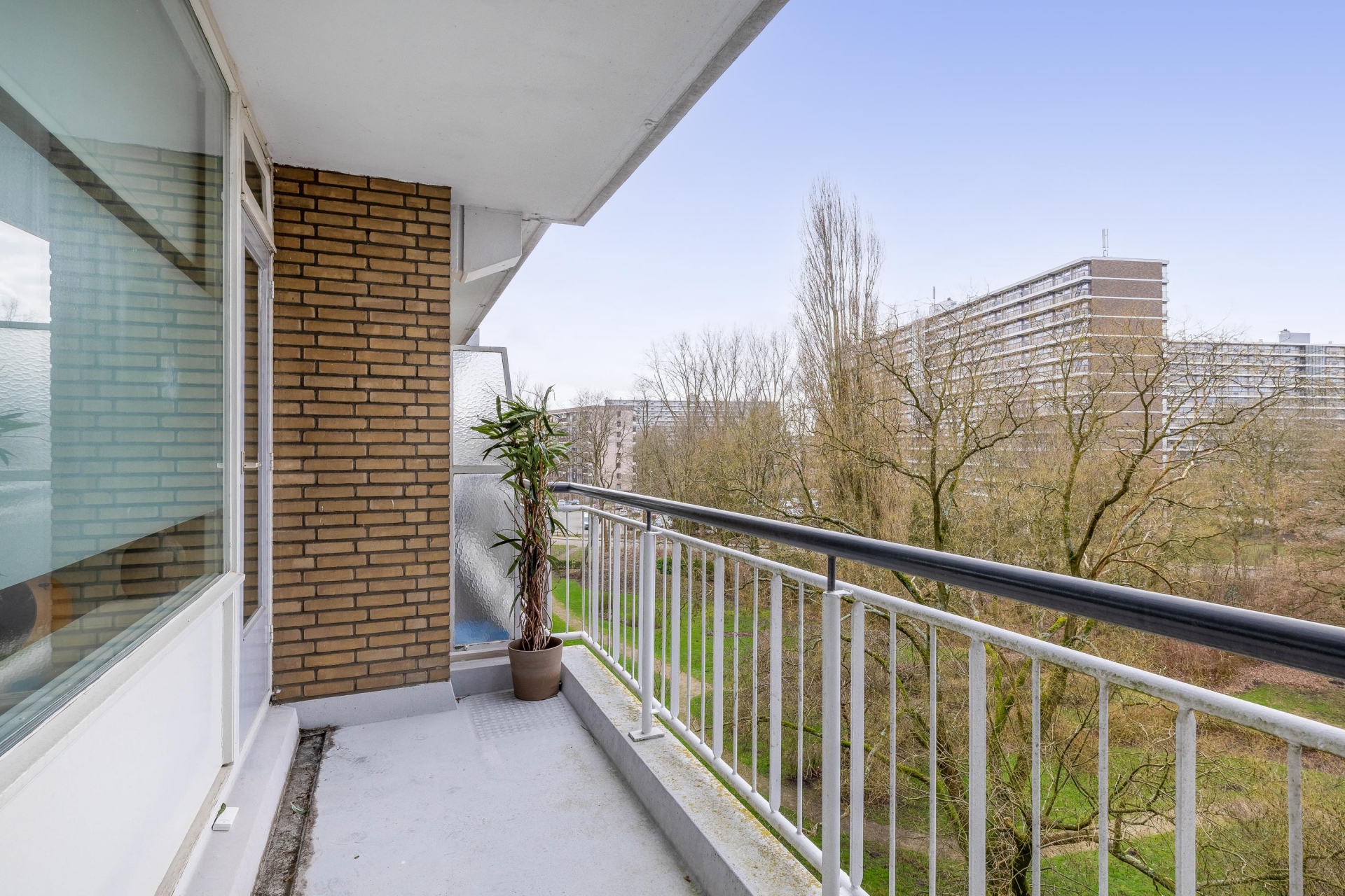 Het balkon is gelegen op het zuiden en biedt vrij uitzicht over het groen en de omliggende bebouwing. Hier geniet je vanaf het voorjaar al snel van de zon. Een kop koffie in de ochtend, een borrel na het werk of gewoon even ontspannen met een boek; dit is zo’n plek waar je echt gebruik van gaat maken.