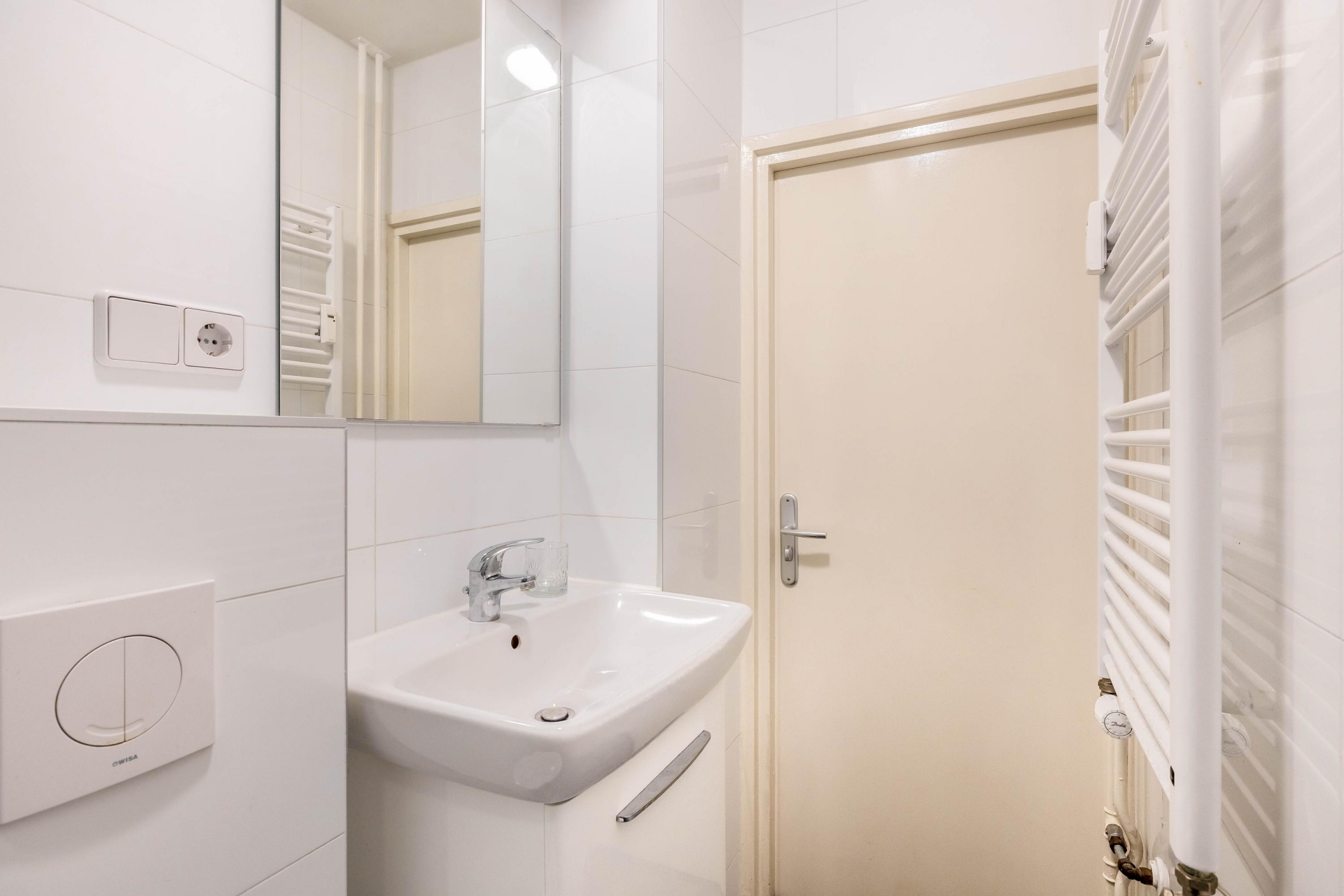 De badkamer is compact maar verzorgd uitgevoerd, met een douche, wastafel en toilet. Alles wat je nodig hebt, overzichtelijk bij elkaar. Met één slaapkamer en een slimme indeling is dit huis perfect voor alleenstaanden of stellen die hun eerste koopwoning zoeken.