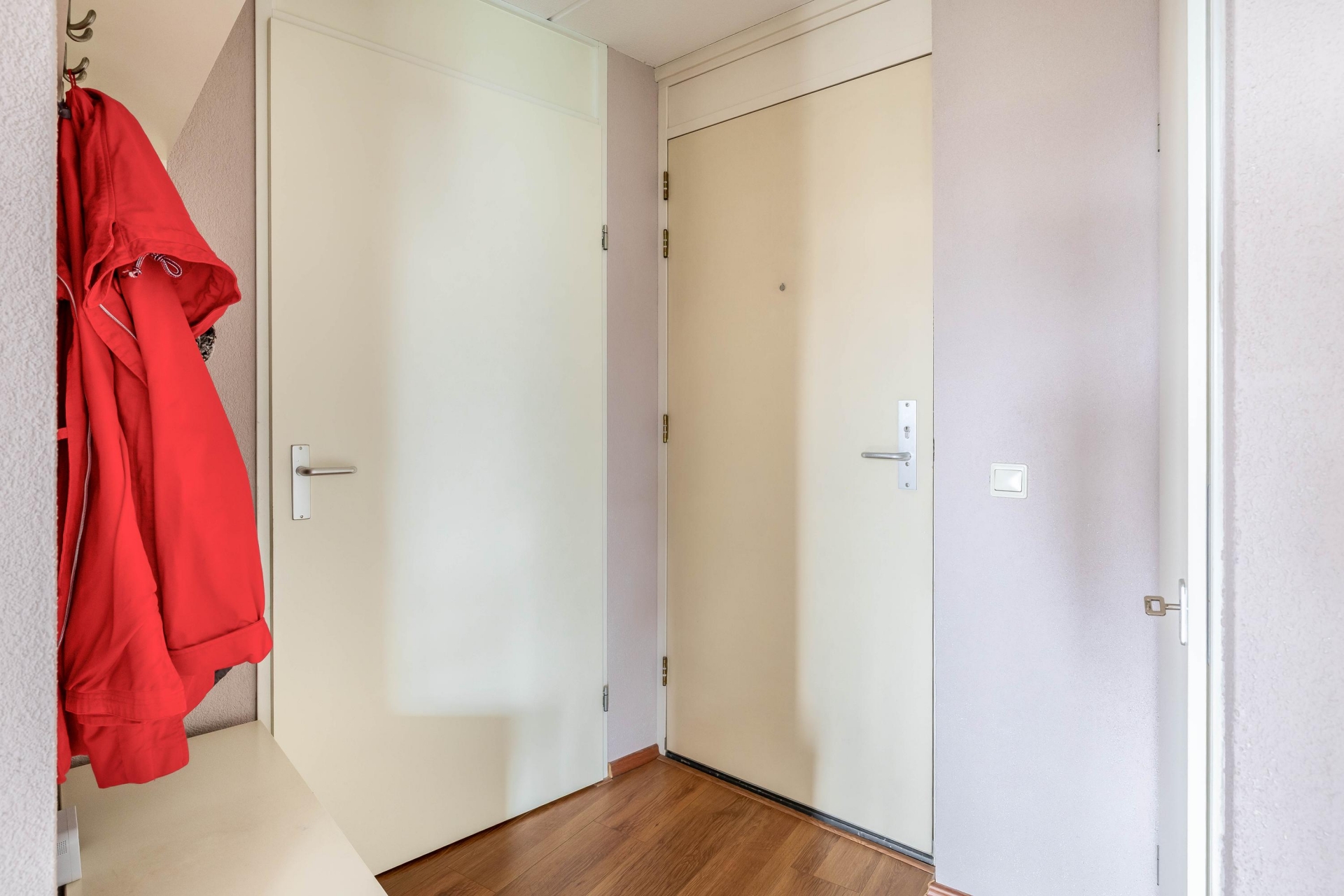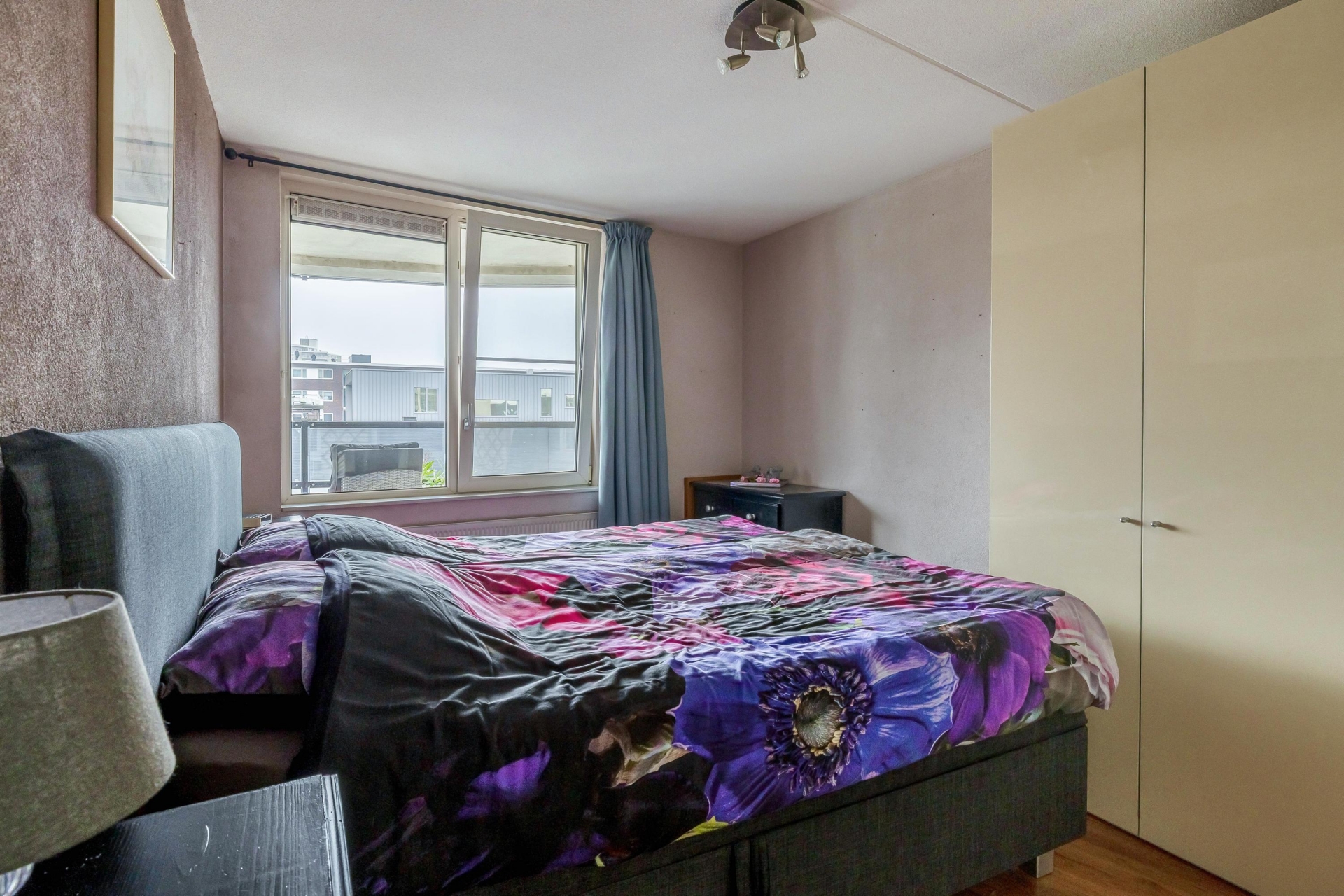 Het appartement beschikt over twee slaapkamers. De grootste slaapkamer biedt voldoende ruimte voor een tweepersoonsbed en een royale kledingkast. Ook hier zorgt het raam voor prettig lichtinval. De tweede slaapkamer is uitstekend geschikt als logeerkamer, hobbyruimte of werkkamer.