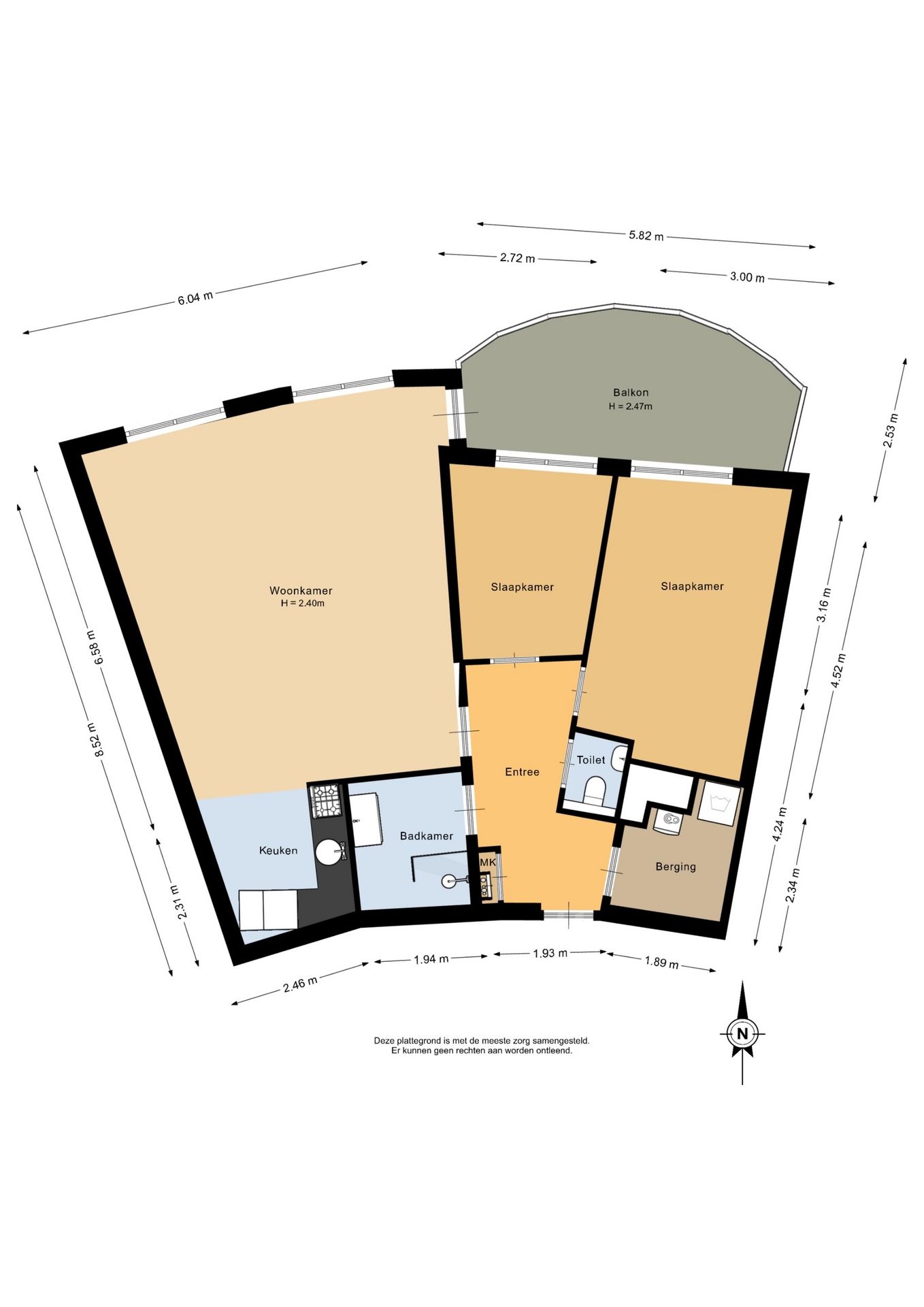 “Deze informatie is door ons met de nodige zorgvuldigheid samengesteld. Onzerzijds wordt echter geen enkele aansprakelijkheid aanvaard voor enige onvolledigheid, onjuistheid of anderszins, dan wel de gevolgen daarvan. Alle opgegeven maten en oppervlakten zijn indicatief.”
