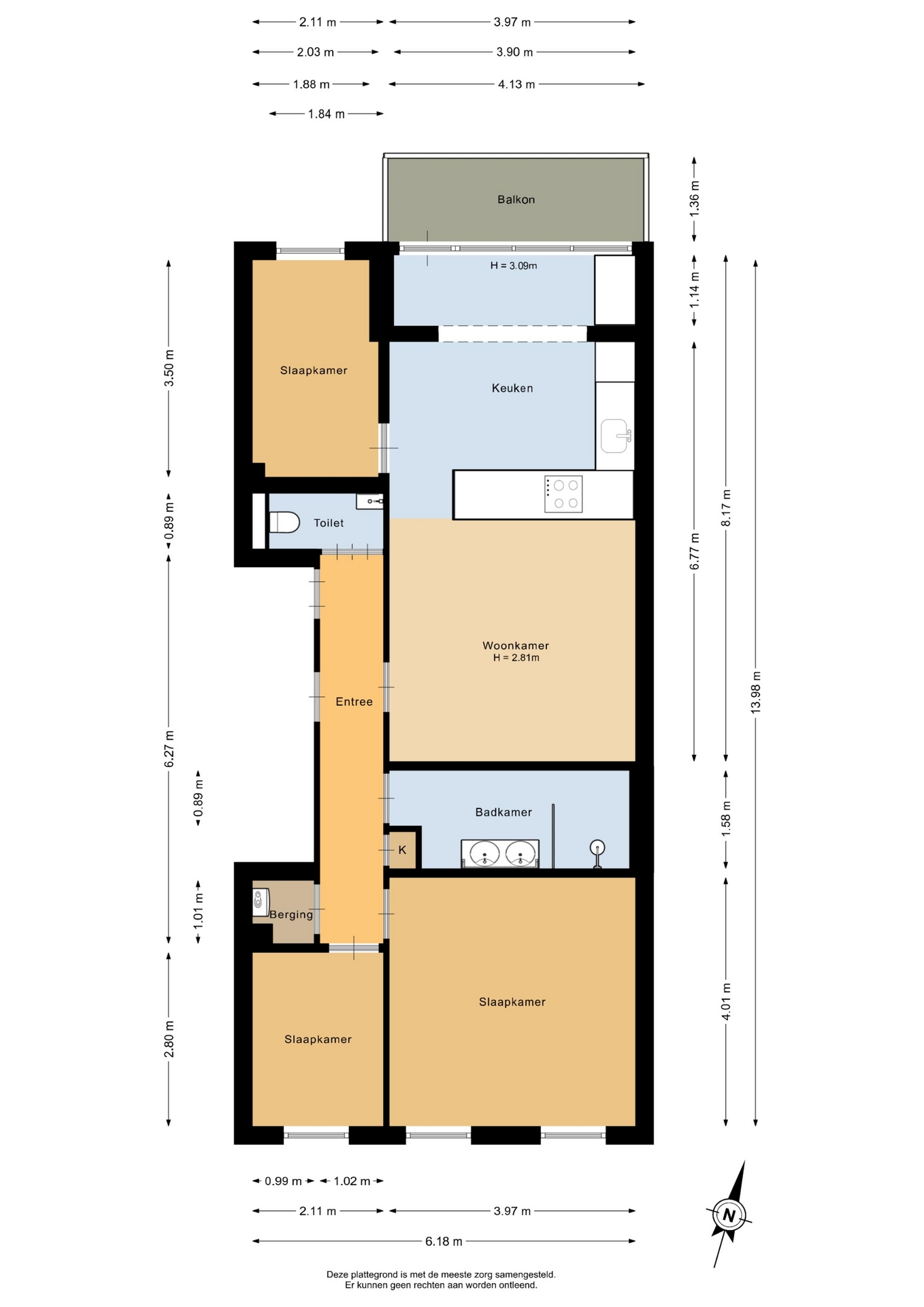 “Deze informatie is door ons met de nodige zorgvuldigheid samengesteld. Onzerzijds wordt echter geen enkele aansprakelijkheid aanvaard voor enige onvolledigheid, onjuistheid of anderszins, dan wel de gevolgen daarvan. Alle opgegeven maten en oppervlakten zijn indicatief.”