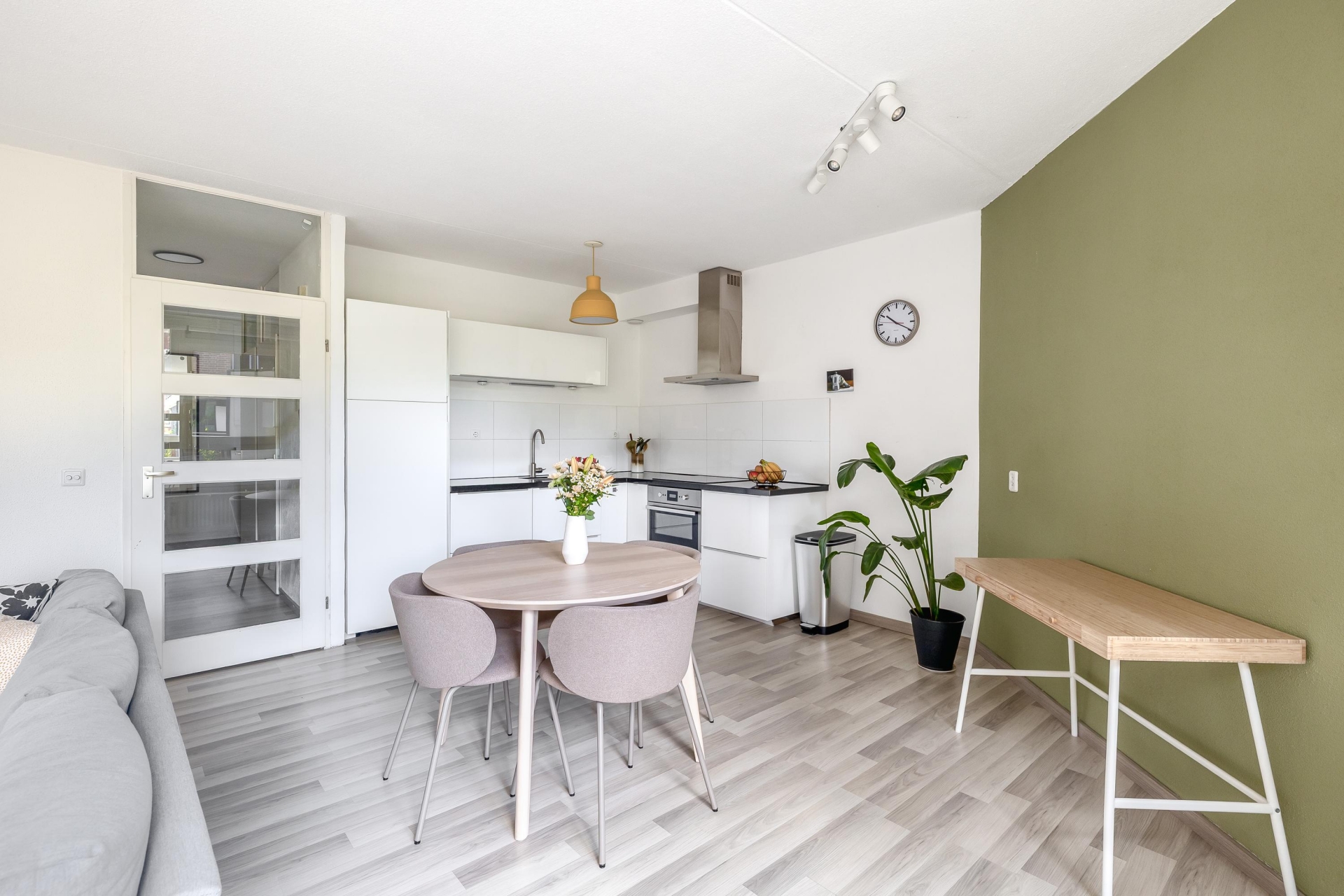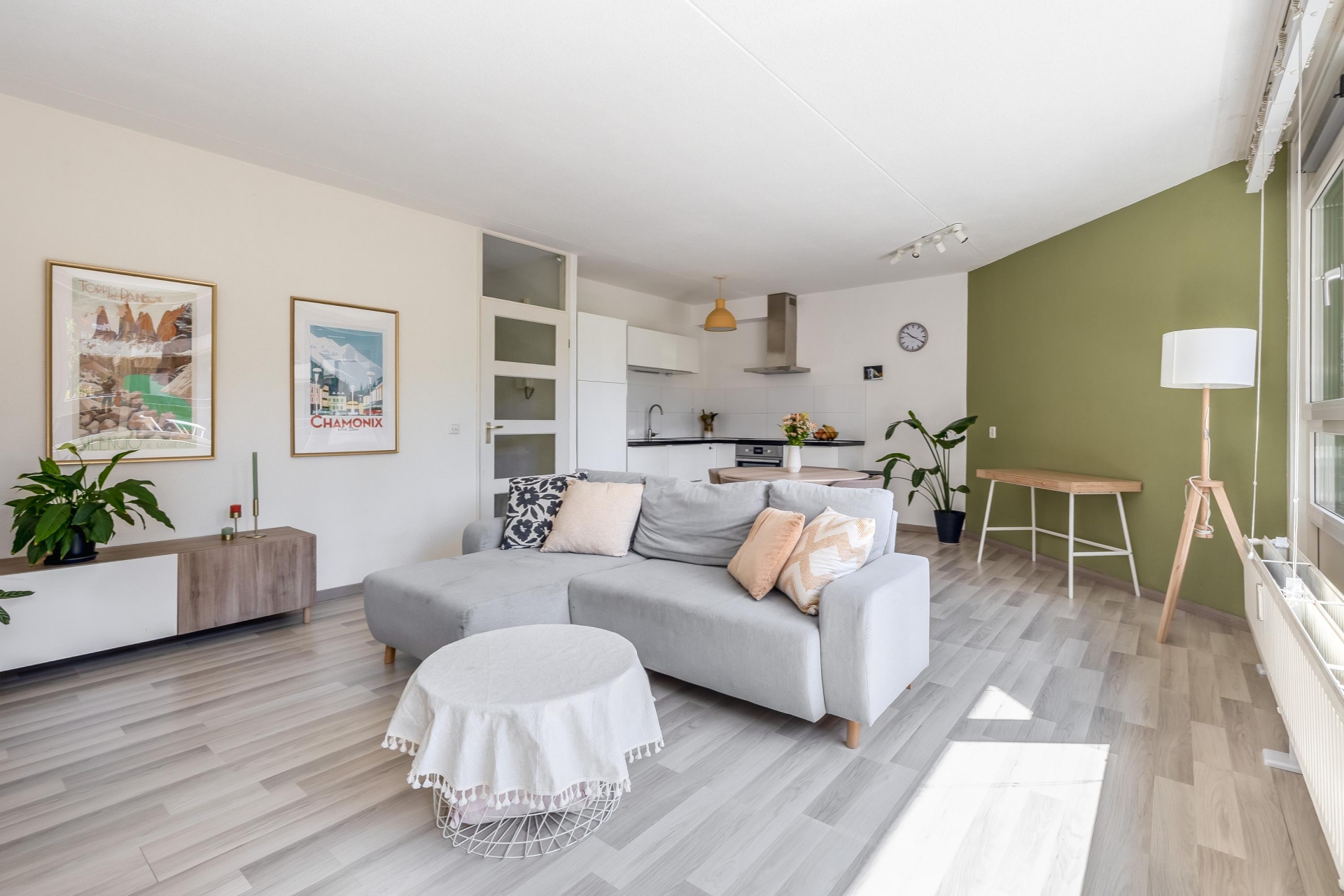 Lichte woonkamer met open keuken:
