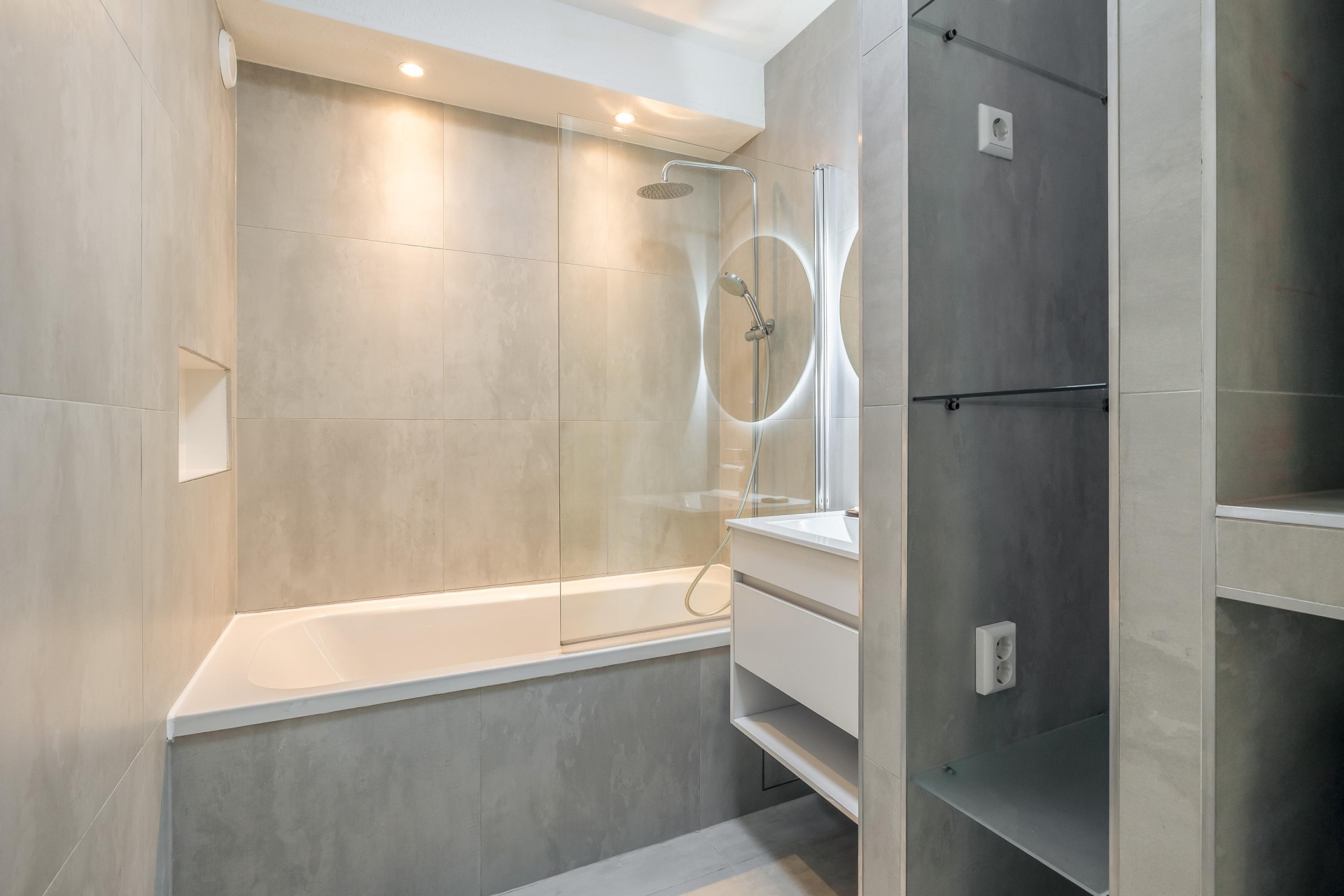 In 2023 is de badkamer volledig vernieuwd en voorzien van een moderne uitstraling. De ruimte beschikt over een ligbad met douche, een stijlvol wastafelmeubel en eigentijdse tegelafwerking. Alles ademt frisheid en comfort, zodat je hier dagelijks met plezier gebruik van maakt.