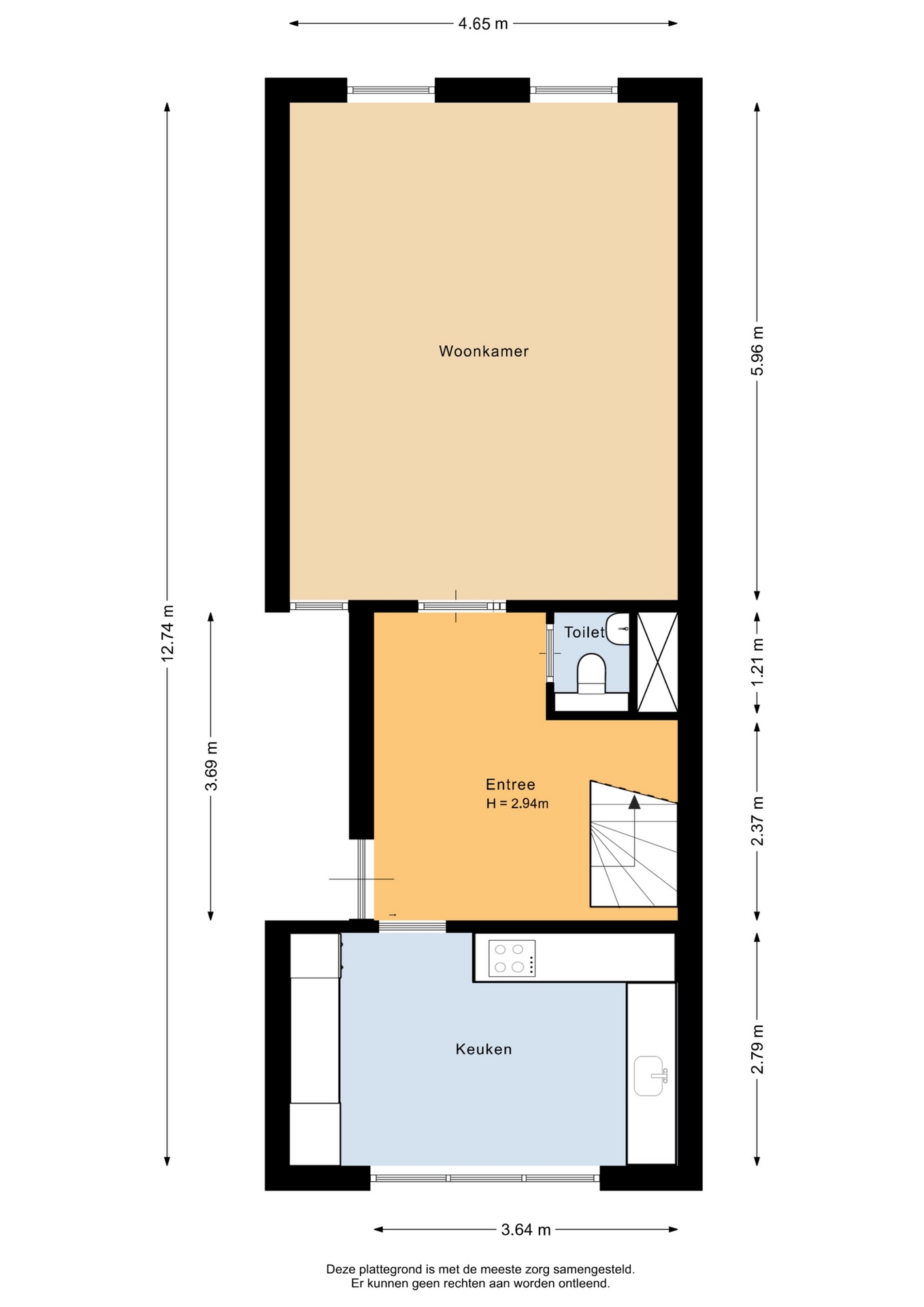 “Deze informatie is door ons met de nodige zorgvuldigheid samengesteld. Onzerzijds wordt echter geen enkele aansprakelijkheid aanvaard voor enige onvolledigheid, onjuistheid of anderszins, dan wel de gevolgen daarvan. Alle opgegeven maten en oppervlakten zijn indicatief.”