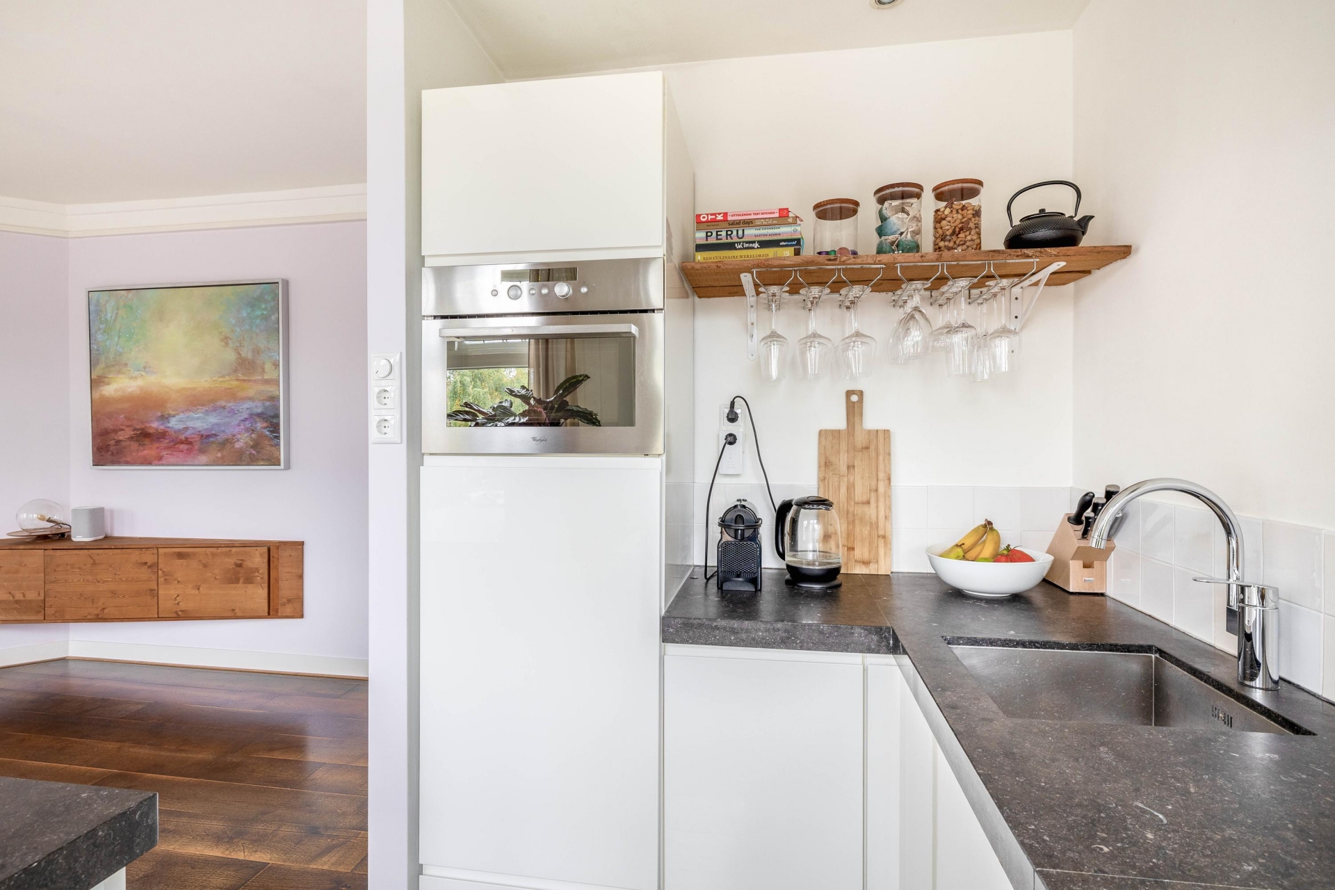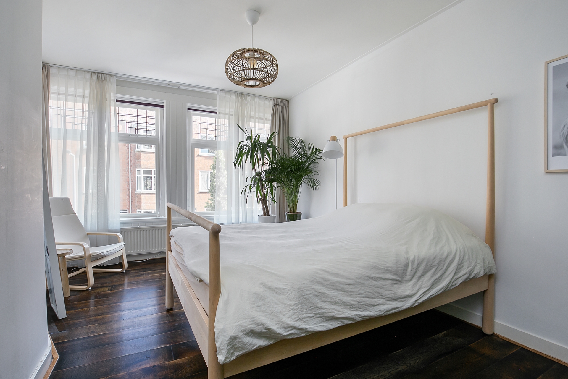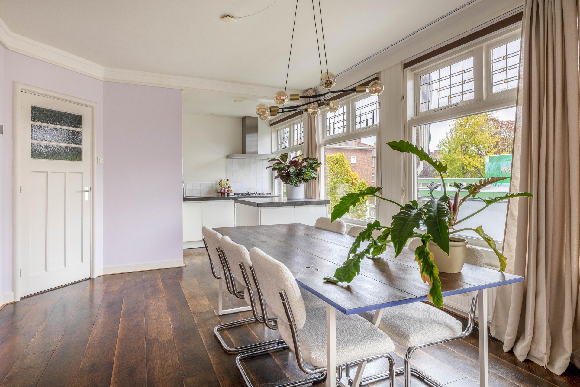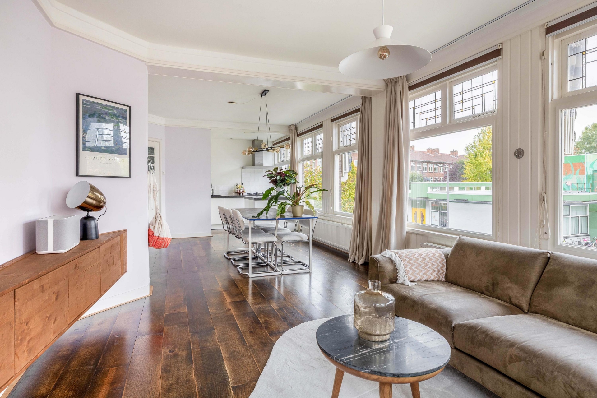 De eerste woonlaag voelt direct vertrouwd. De lichte woonkamer met houten vloer ademt sfeer en de markiezen houden het binnen in de zomer heerlijk koel. Vanuit de open keuken blijf je altijd onderdeel van het leven in huis. Dankzij het HR++ glas blijft de warmte in de winter uitstekend behouden, waardoor comfort en energiezuinig wonen moeiteloos samenkomen.