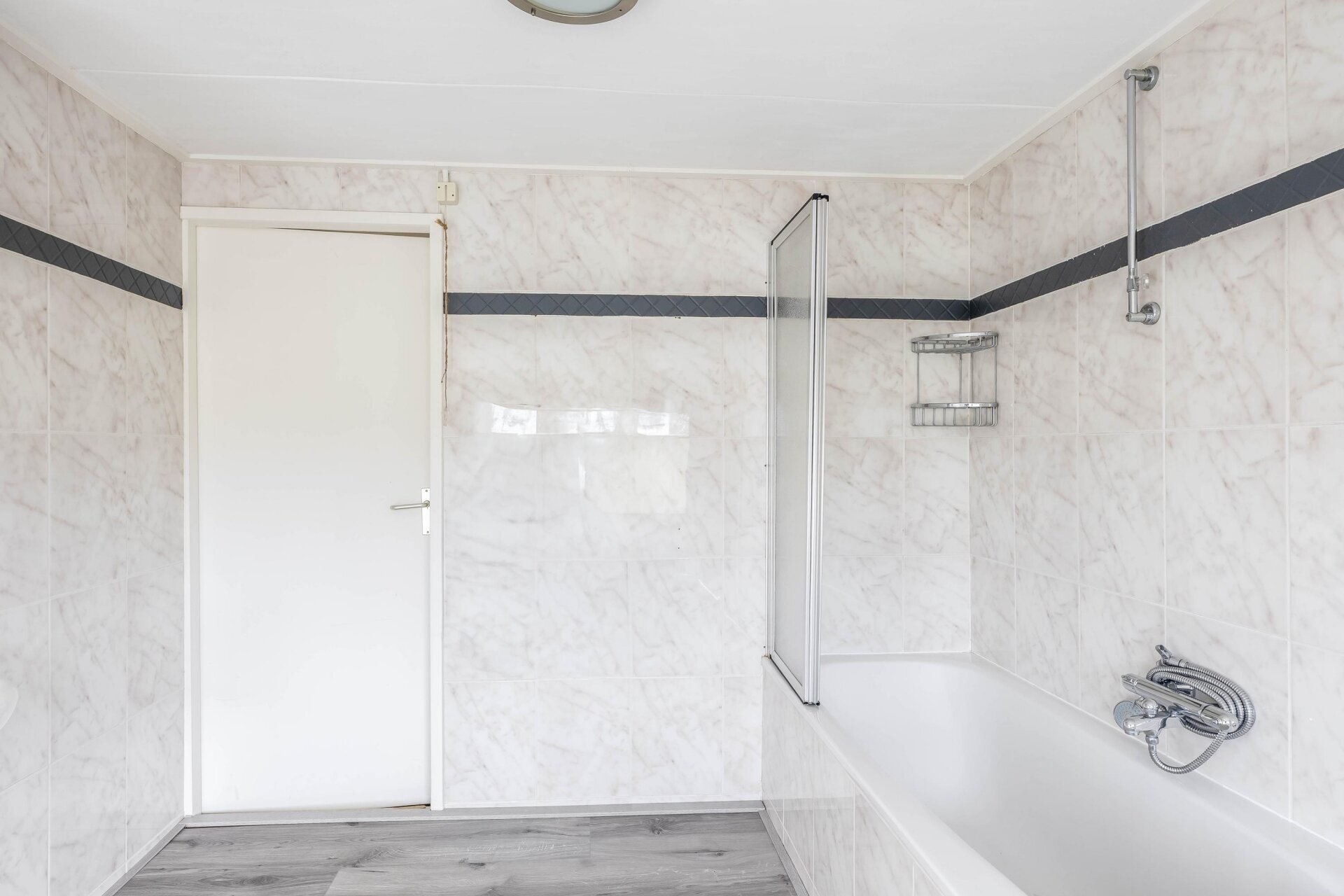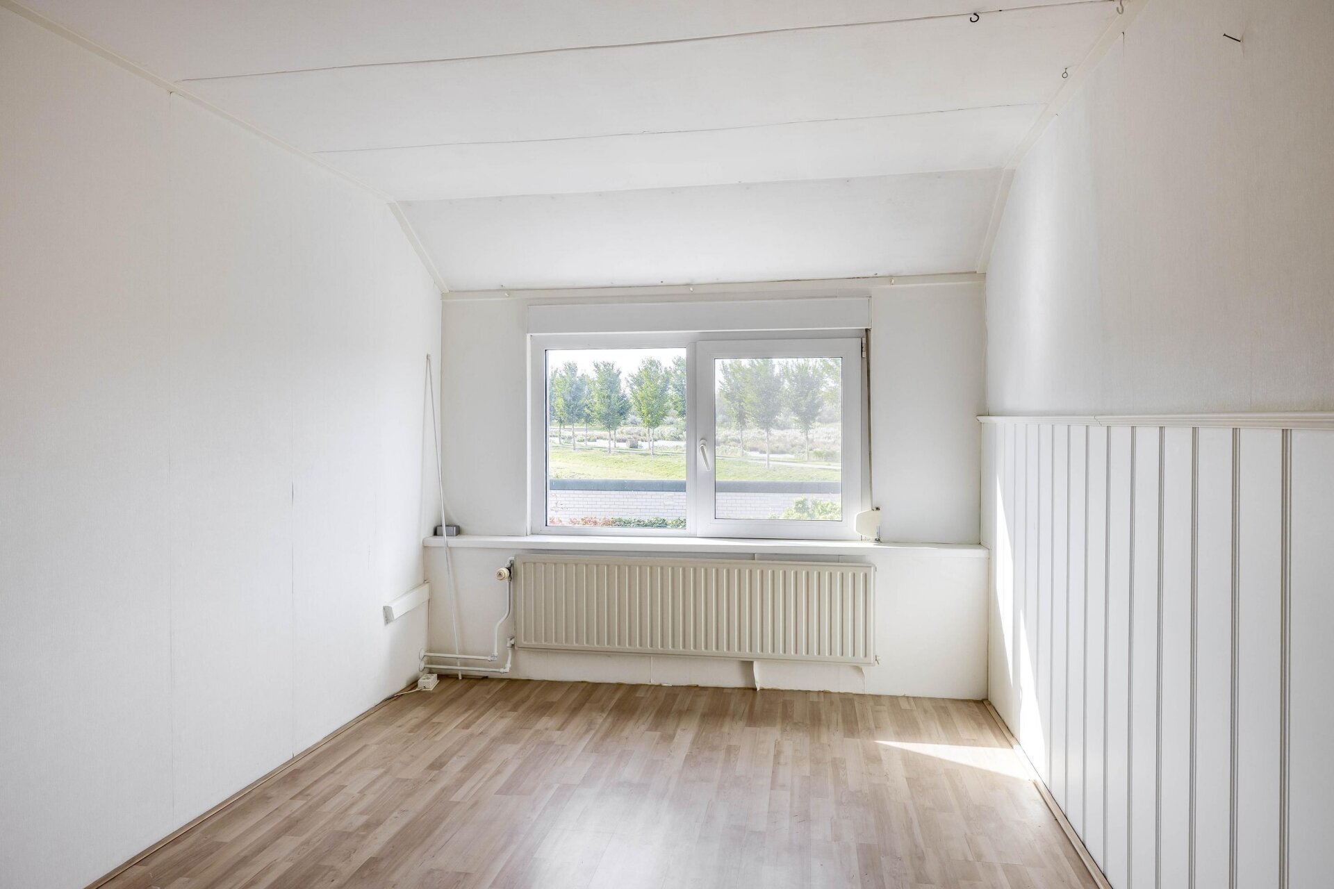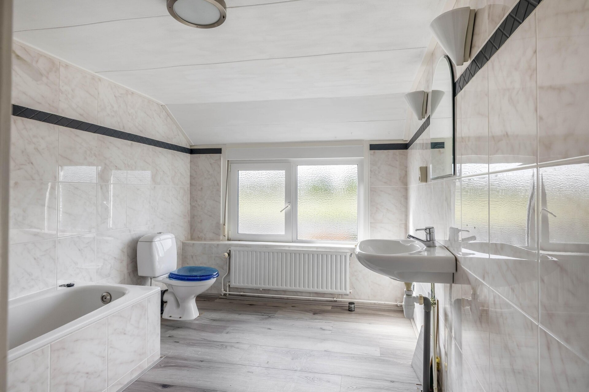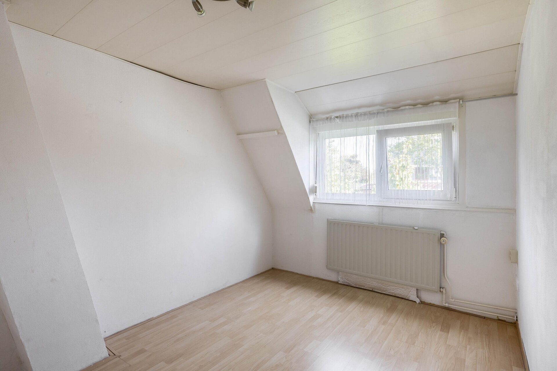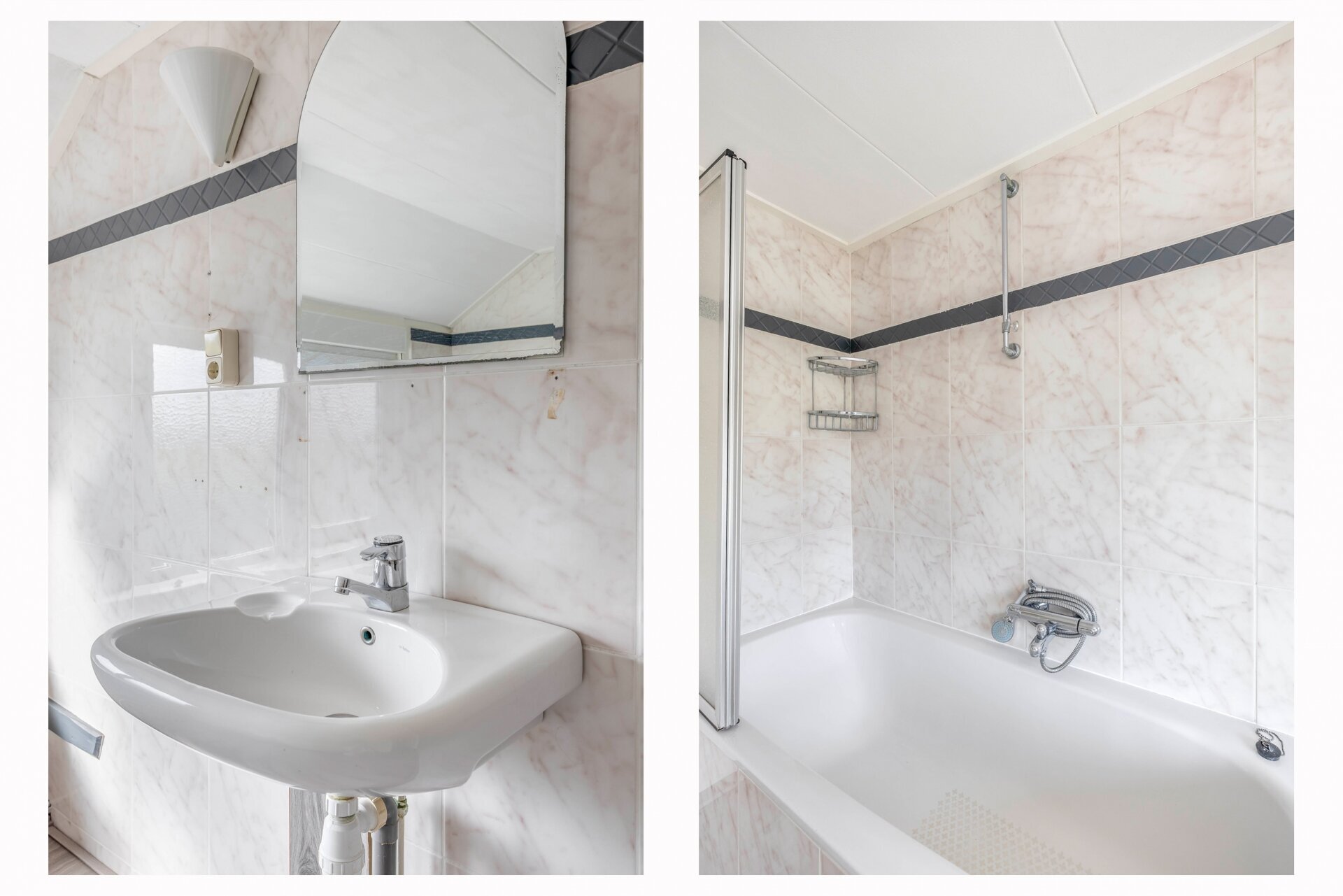 Op de eerste verdieping zijn drie slaapkamers aanwezig. De grootste slaapkamer ligt aan de achterzijde en biedt prachtig uitzicht over het groen. De andere twee kamers zijn geschikt als kinderkamer, werkkamer of logeerkamer. De badkamer is functioneel en voorzien van een ligbad, toilet en wastafel. Alles is netjes, maar er is zeker ruimte om het naar eigen smaak te moderniseren.