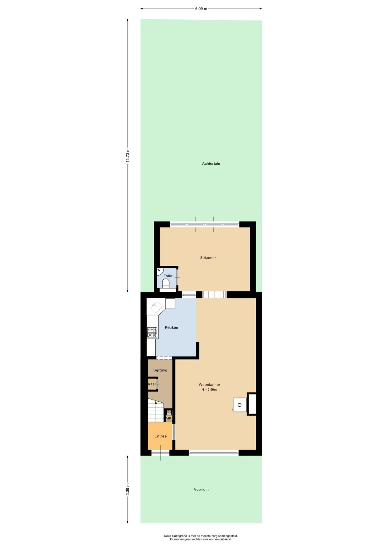 De achtertuin is maar liefst 11 meter diep en ruim 6 meter breed. Door de ligging op het westen geniet je hier in de middag en avond van de zon – perfect voor wie na werk nog even buiten wil zitten. Er is genoeg plek voor een loungeset, eettafel én speelruimte. Achter in de tuin loopt een pad waar de stenen berging met elektra, handig voor de fietsen en tuinspullen te vinden is. De tuin heeft een achterom (meestal gebruikt als hoofd entree), wat het extra praktisch maakt. De voortuin biedt ook ruimte om groen toe te voegen of een bankje aan het water te plaatsen – een heerlijke plek om op zaterdagochtend je koffie te drinken.