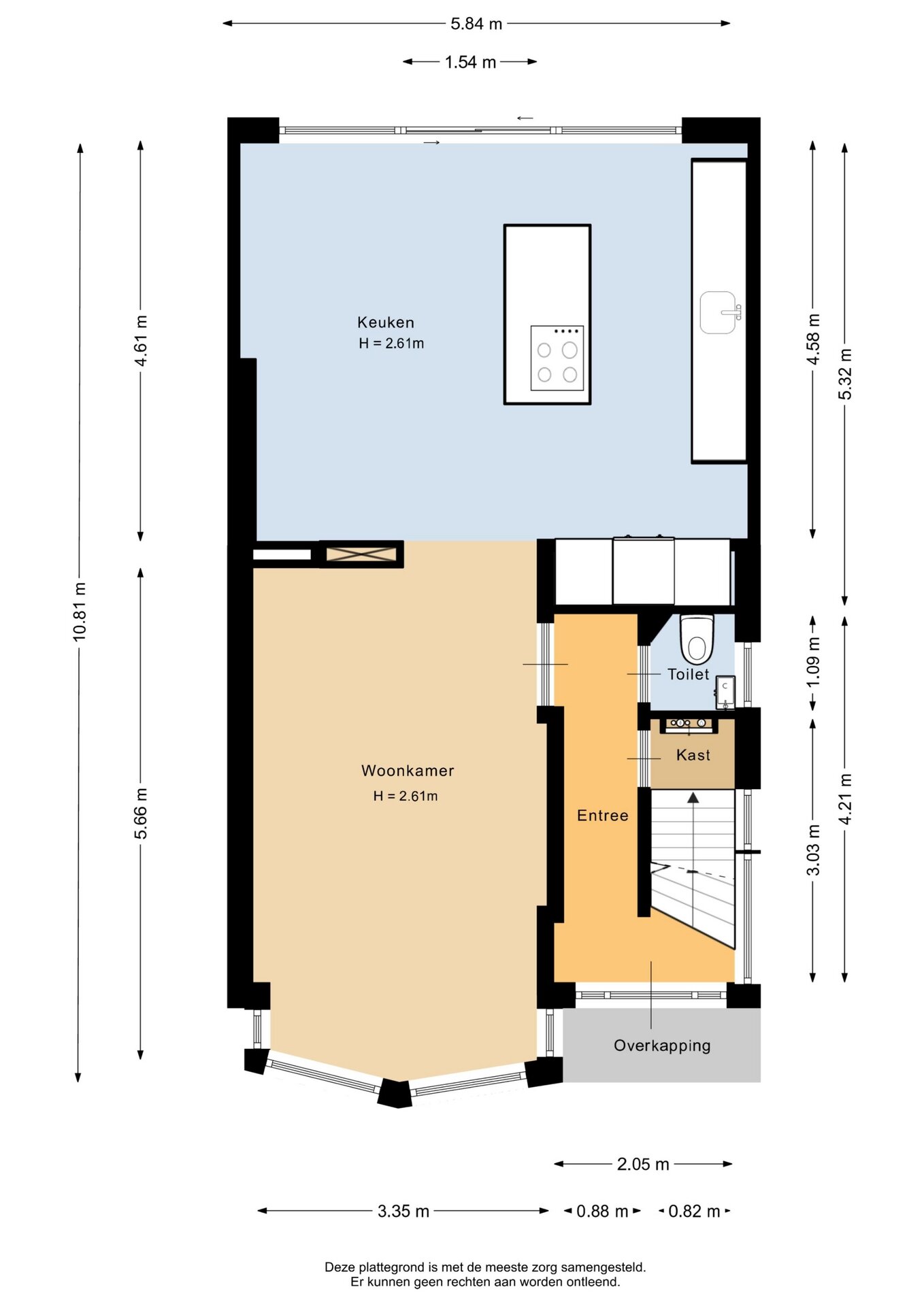 “Deze informatie is door ons met de nodige zorgvuldigheid samengesteld. Onzerzijds wordt echter geen enkele aansprakelijkheid aanvaard voor enige onvolledigheid, onjuistheid of anderszins, dan wel de gevolgen daarvan. Alle opgegeven maten en oppervlakten zijn indicatief.”