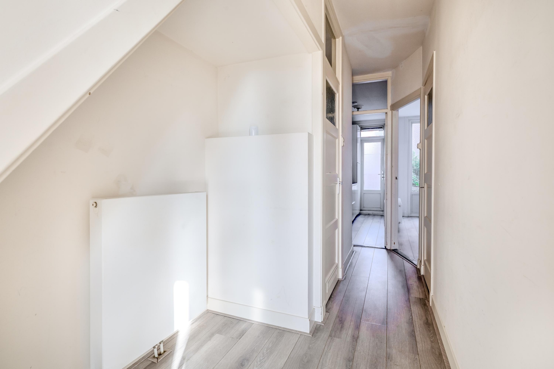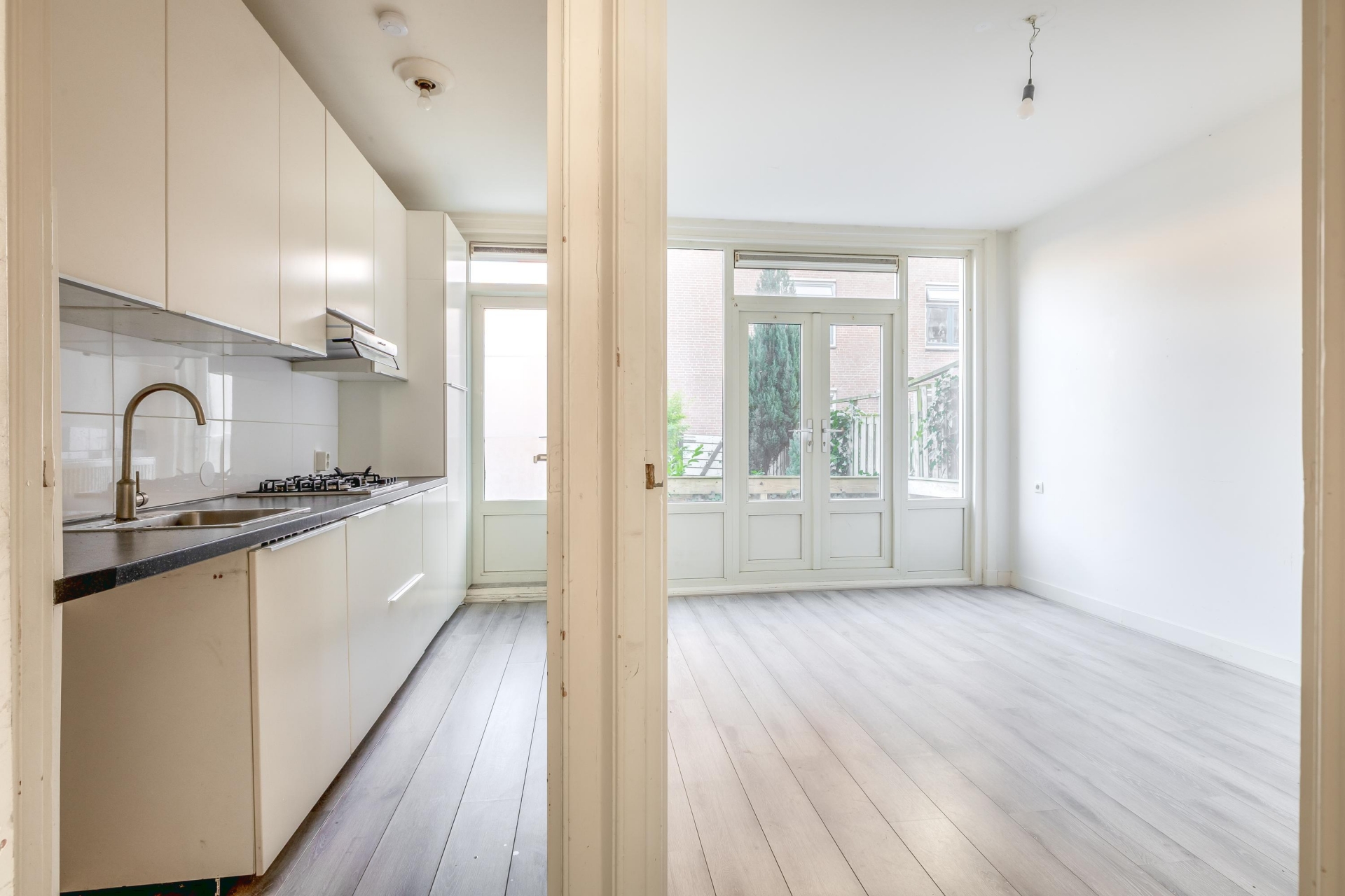 Bij binnenkomst valt direct de prettige indeling op. De woonkamer is ruim van opzet en dankzij de grote raampartijen geniet je hier van veel natuurlijk licht. Aan de achterzijde van de woning bevindt zich de keuken, met een deur naar de tuin. Een fijne en praktische plek om te koken, met direct contact met buiten. De keuken is voorzien van diverse inbouwapparatuur en biedt een goede basis om eventueel naar eigen smaak te moderniseren.