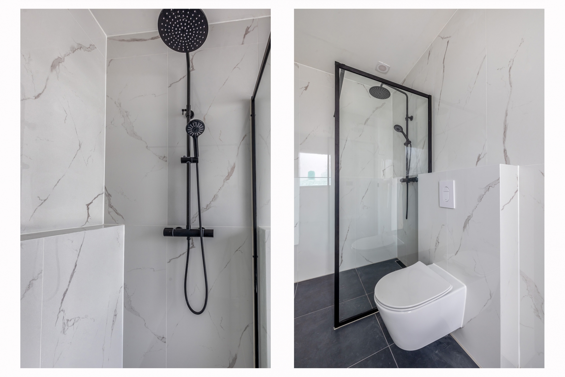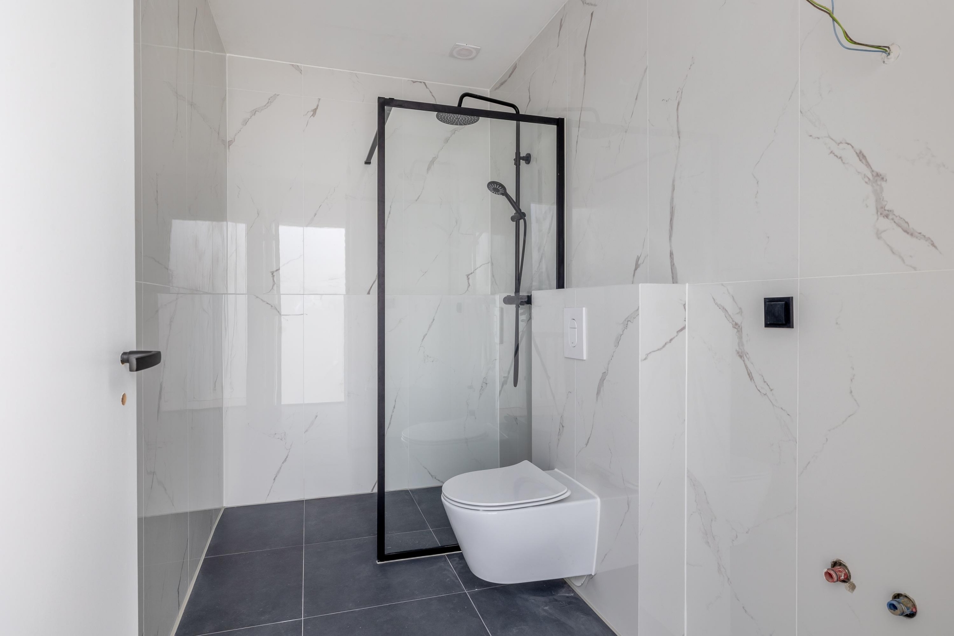 Het appartement beschikt over drie slaapkamers verdeeld over twee woonlagen. De grootste slaapkamer ligt aan de achterzijde en heeft toegang tot het balkon. De overige kamers zijn ideaal als werk-, logeer- of kinderkamer. De badkamer is modern afgewerkt met een inloopdouche en strak tegelwerk. Het badkamermeubel is bewust nog niet geplaatst, zodat je dit zelf kunt invullen. De aansluitingen zijn al aanwezig. Daarnaast is er op beide verdiepingen een separaat toilet, wat zorgt voor extra comfort.