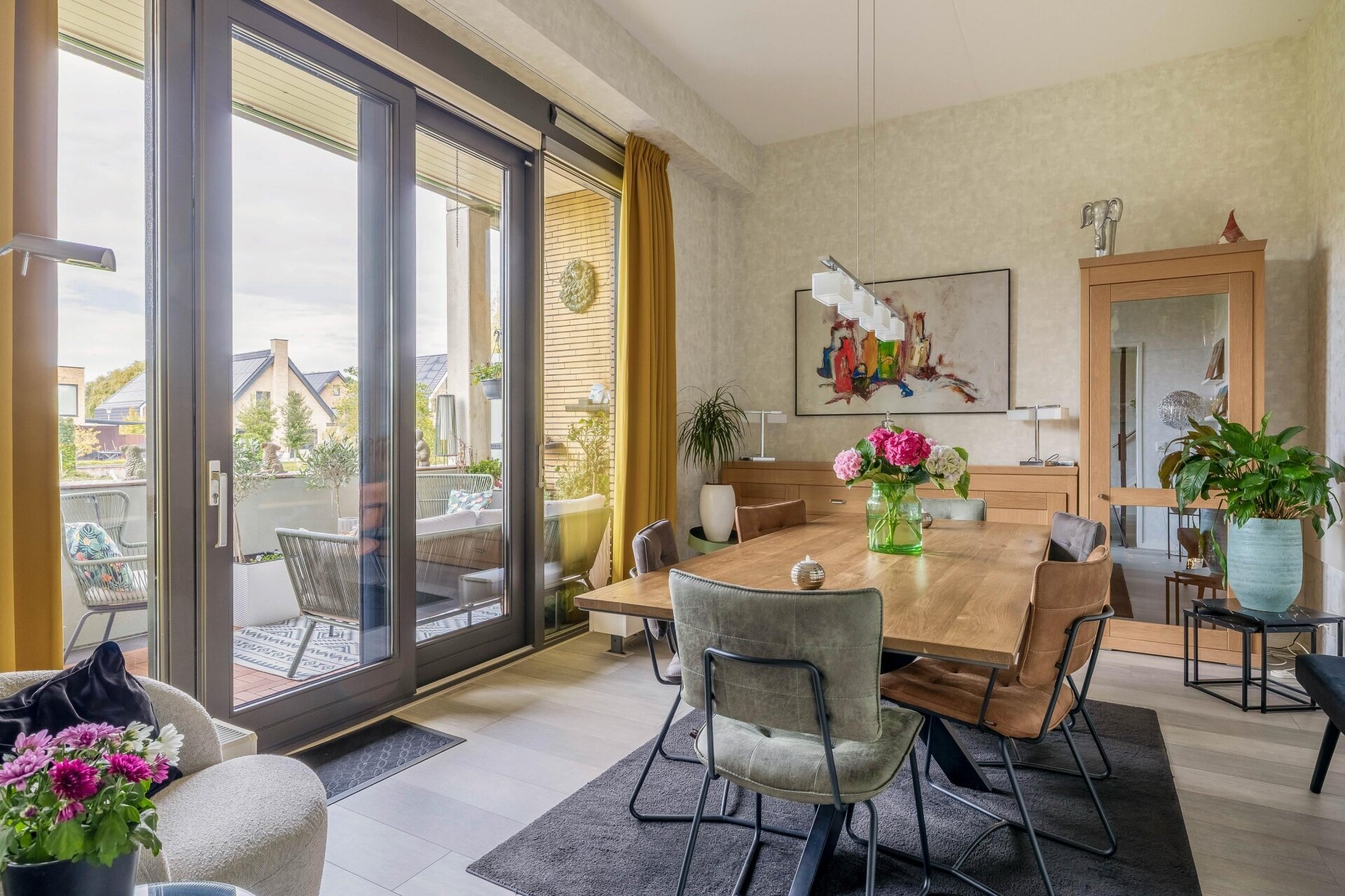 - Hoog plafond in de woonkamers wat het gevoel van ruimte vergroot.