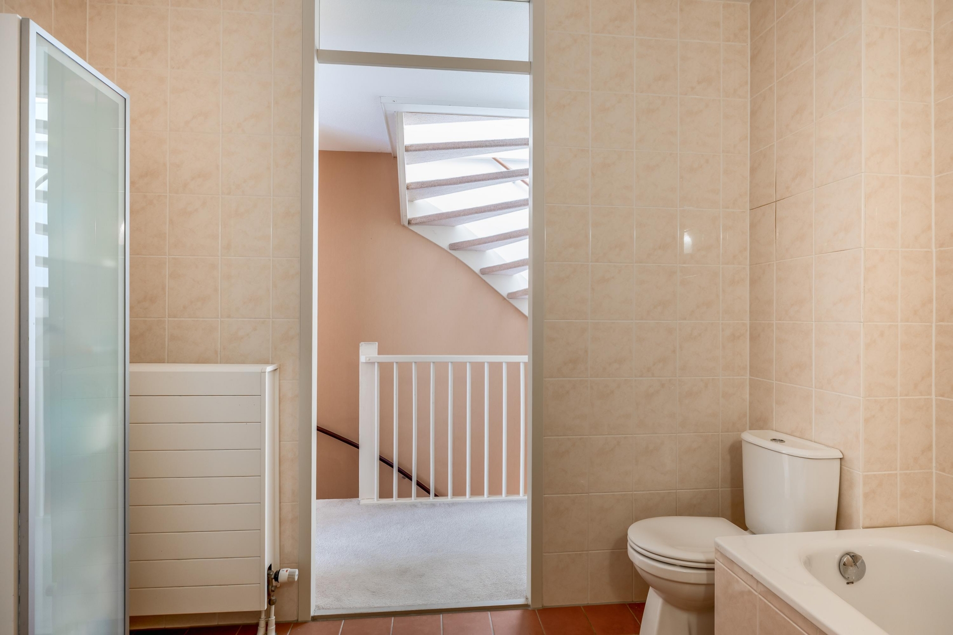 Op de eerste verdieping bevinden zich drie slaapkamers en de badkamer. De grootste slaapkamer ligt aan de achterzijde van het huis en biedt meer dan genoeg ruimte voor een groot bed en een kastwand. De overige twee slaapkamers zijn ideaal als kinderkamer, werkkamer of logeerkamer. De badkamer is compleet ingericht met een ligbad, douche, wastafelmeubel en een tweede toilet. Dankzij de neutrale afwerking vormt dit een fijne en praktische ruimte voor het hele gezin. Een groot pluspunt van dit huis is de tweede verdieping. De huidige eigenaren hebben hier zelf een vaste trap laten plaatsen, waardoor deze verdieping volwaardig te gebruiken is. Op de overloop is ruimte voor de wasmachine, de cv-ketel en extra bergruimte. Daarnaast zorgt de dakkapel voor extra licht en ruimte. Deze verdieping kan uitstekend dienen als werkruimte, hobbyruimte of extra slaapkamer.