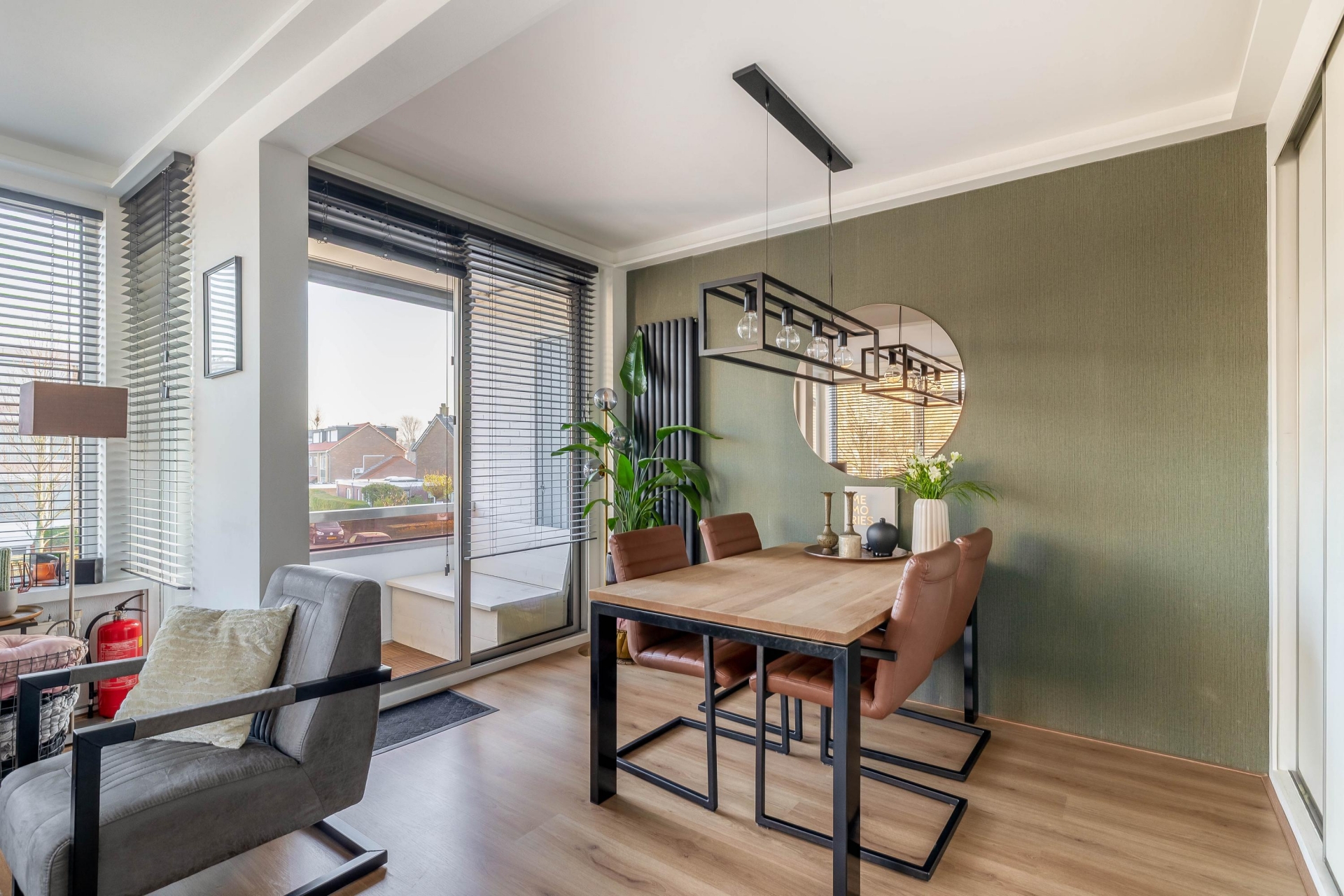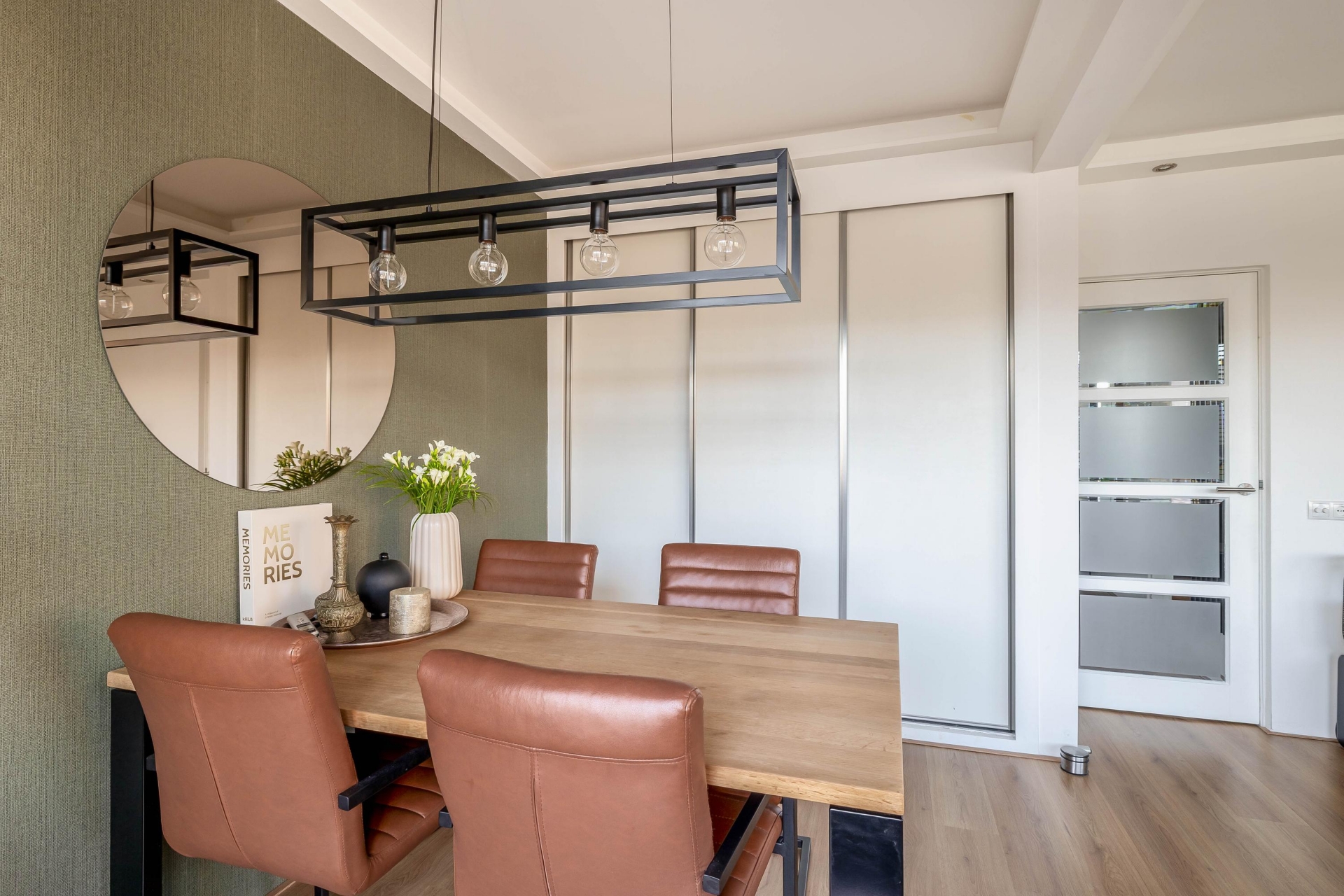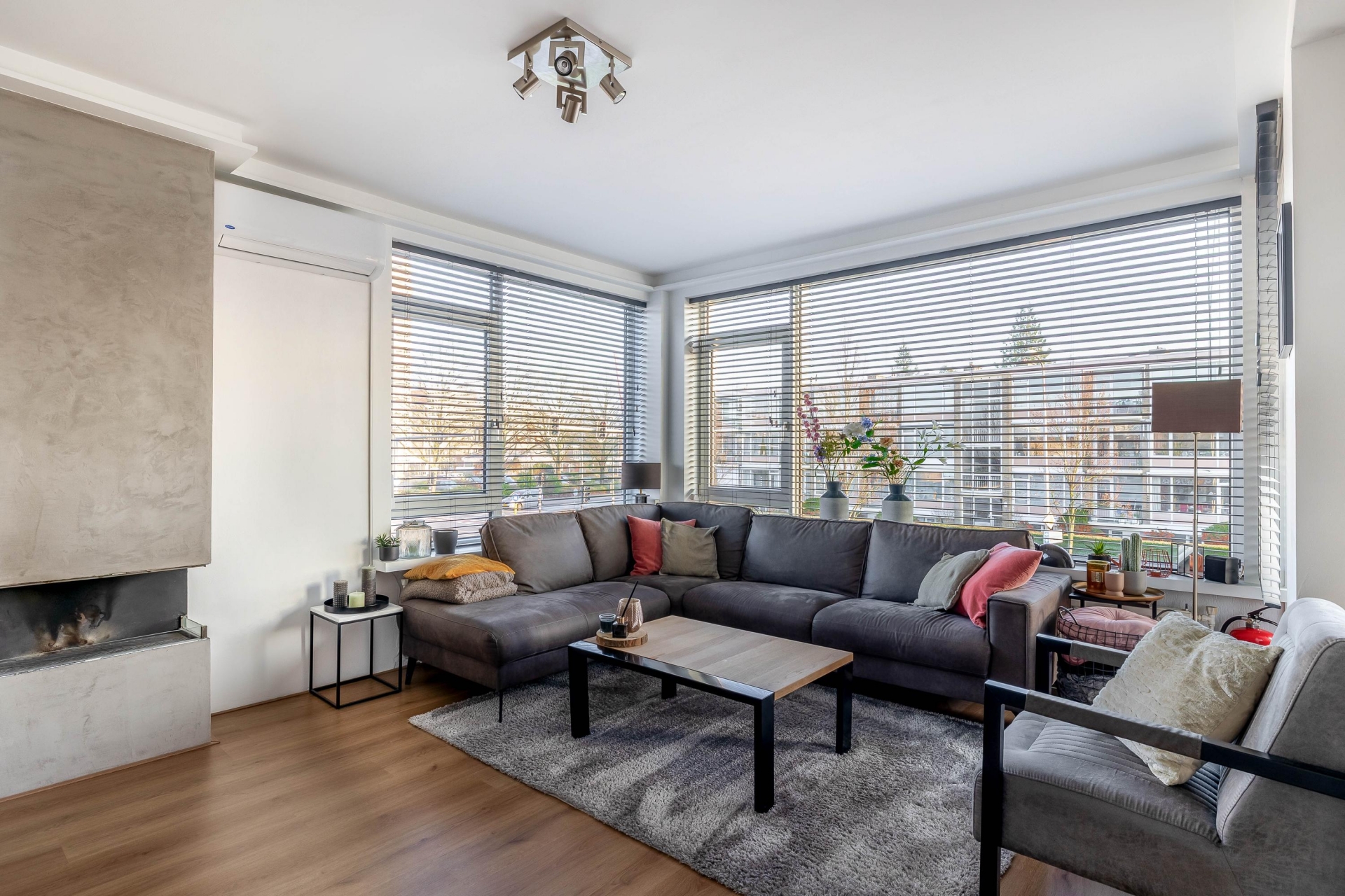 De woonkamer is een echte eyecatcher: licht, ruim en met een fijne sfeer dankzij de grote raampartijen, het hoekraam en de aanwezigheid van een sfeerhaard. De strakke afwerking en warme vloer maken het geheel af. Hier is het elke dag fijn thuiskomen. Of je nu lekker onderuit zakt op de bank, of vrienden uitnodigt voor een avondje samen. De twee airco's zorgen op warme dagen voor extra comfort en koelte.