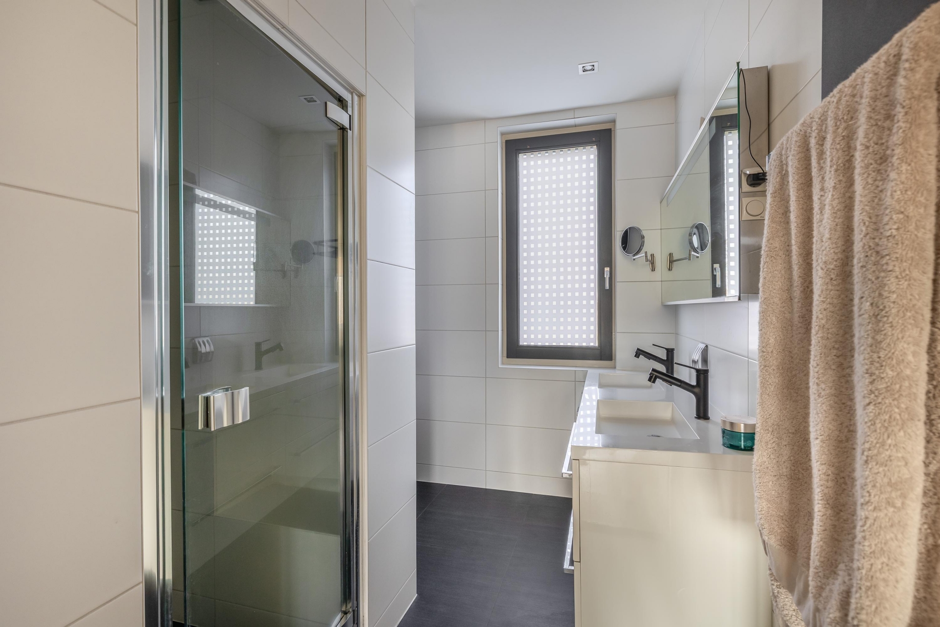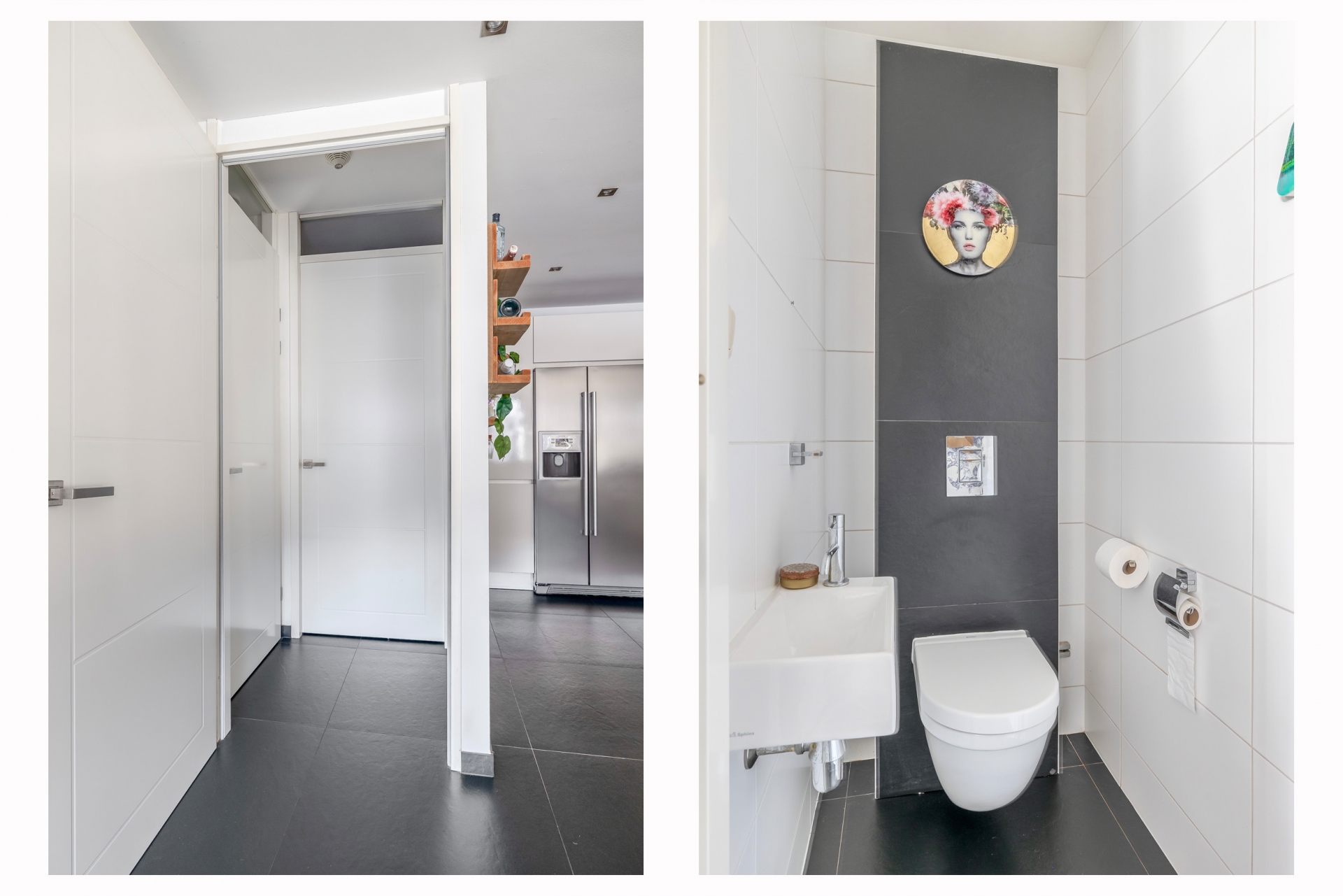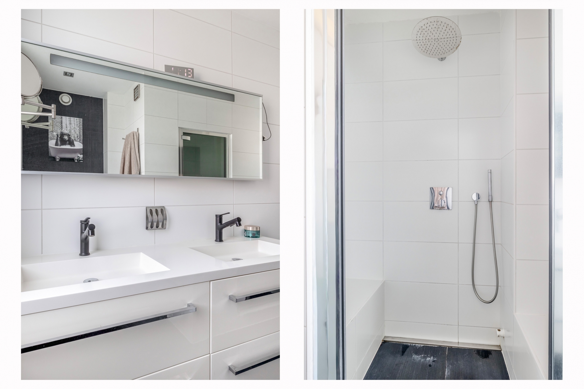 De living is strak afgewerkt, licht en voelt heerlijk open aan. Dankzij grote raampartijen aan de voorzijde en een slimme indeling is dit echt zo'n ruimte waar je graag samenkomt. Zowel in de living als in de woonkeuken ligt een natuurstenen vloer met vloerverwarming. De keuken is een waar kookparadijs – uitgerust met een royaal kookeiland, hoogwaardige apparatuur en veel werkruimte. De directe verbinding met de tuin maakt het plaatje compleet. De professionele overkapping maakt de tuin een verlengde van de woonkeuken. De overkapping is volledig af te sluiten. Daarnaast is de woning voorzien van een centraal afzuigsysteem dat op elke verdieping te gebruiken is. De woning beschikt over drie luxe toiletten, verspreid over de verschillende verdiepingen.