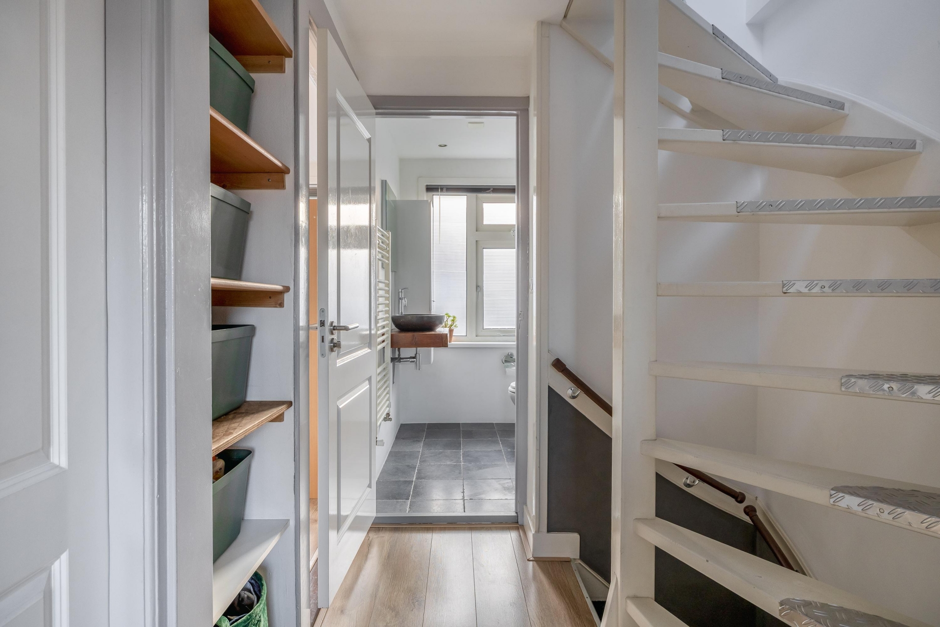 Een vaste trap brengt je naar de zolderverdieping. Deze verdieping is momenteel in gebruik als wasruimte én heeft nog een slaapkamer, die goed zou kunnen dienen als bijvoorbeeld een werkplek, logeerruimte of master bedroom.
