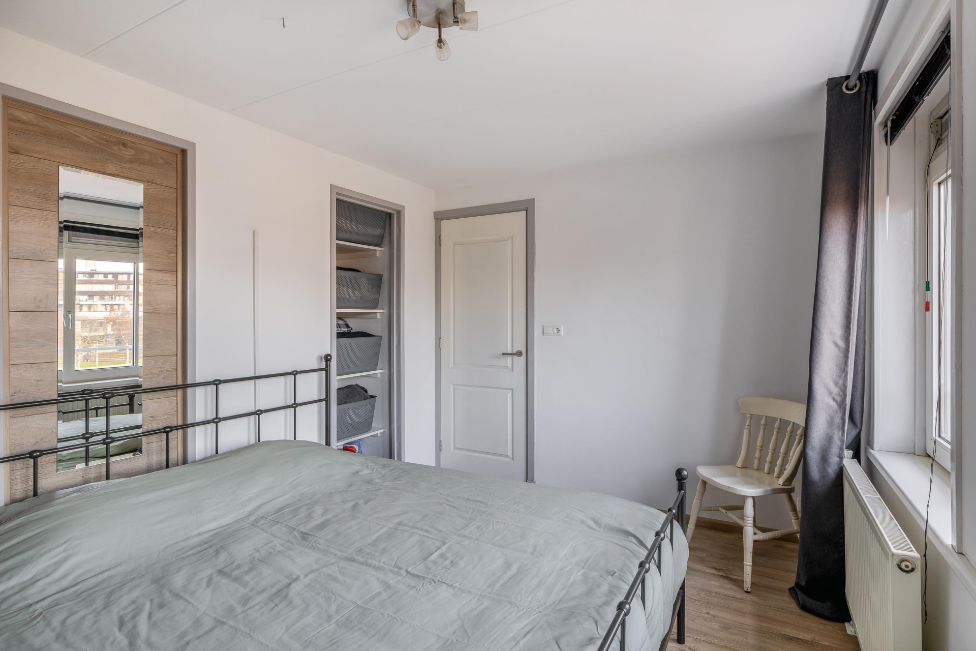 Op de tweede verdieping bevinden zich twee ruime slaapkamers, gelegen aan de voor- en achterzijde. De kamer aan de achterzijde geeft toegang tot een royaal terras, ideaal voor een ontspannen koffiemoment in de zon of om de dag af te sluiten met een borrel. Daarnaast is er nog een derde kamer aan de voorzijde, handig als kinderkamer, werkkamer of inloopkast. De badkamer ligt centraal en beschikt over een douchecabine, wastafel en toilet, praktisch en netjes.