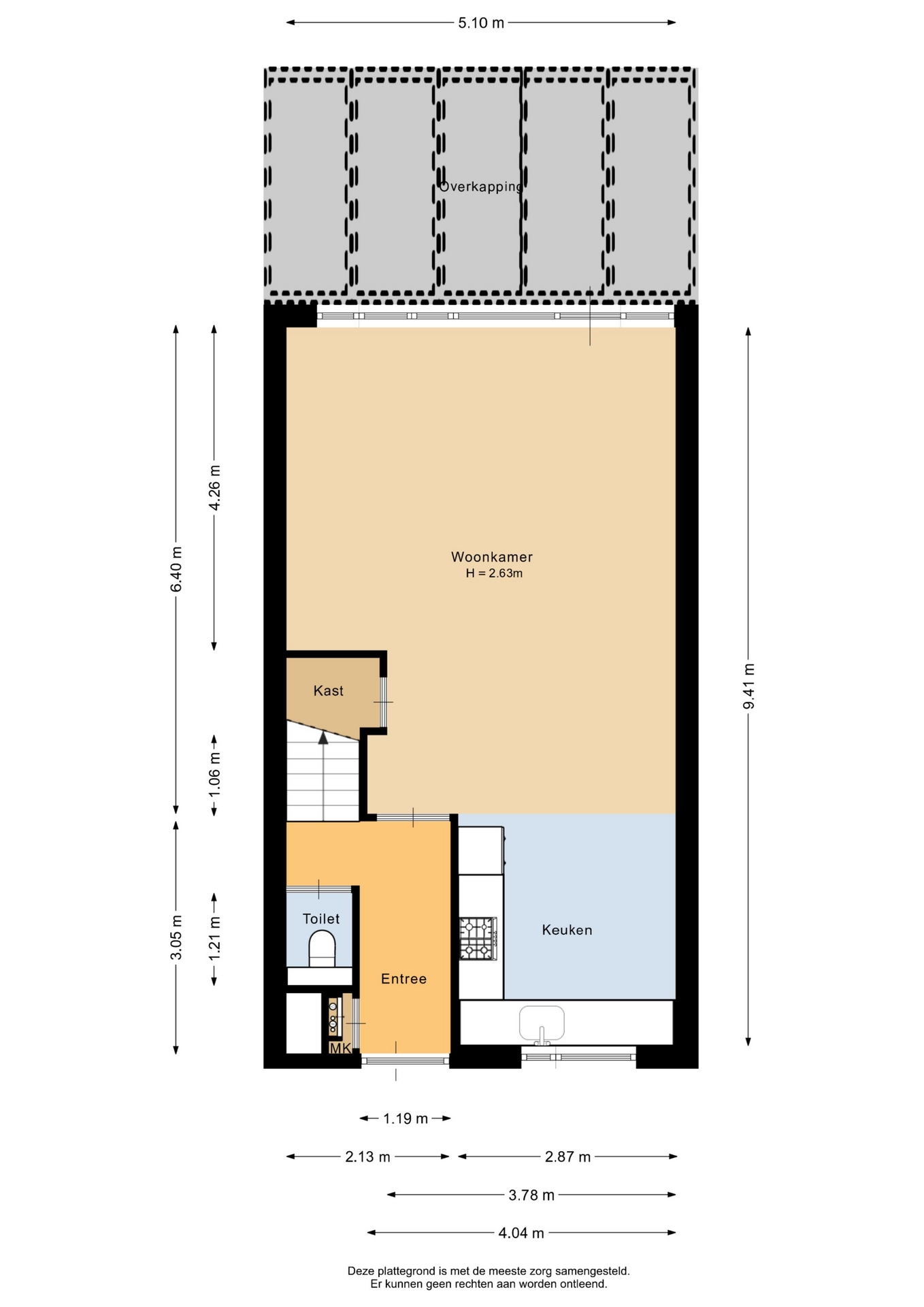 “Deze informatie is door ons met de nodige zorgvuldigheid samengesteld. Onzerzijds wordt echter geen enkele aansprakelijkheid aanvaard voor enige onvolledigheid, onjuistheid of anderszins, dan wel de gevolgen daarvan. Alle opgegeven maten en oppervlakten zijn indicatief.”