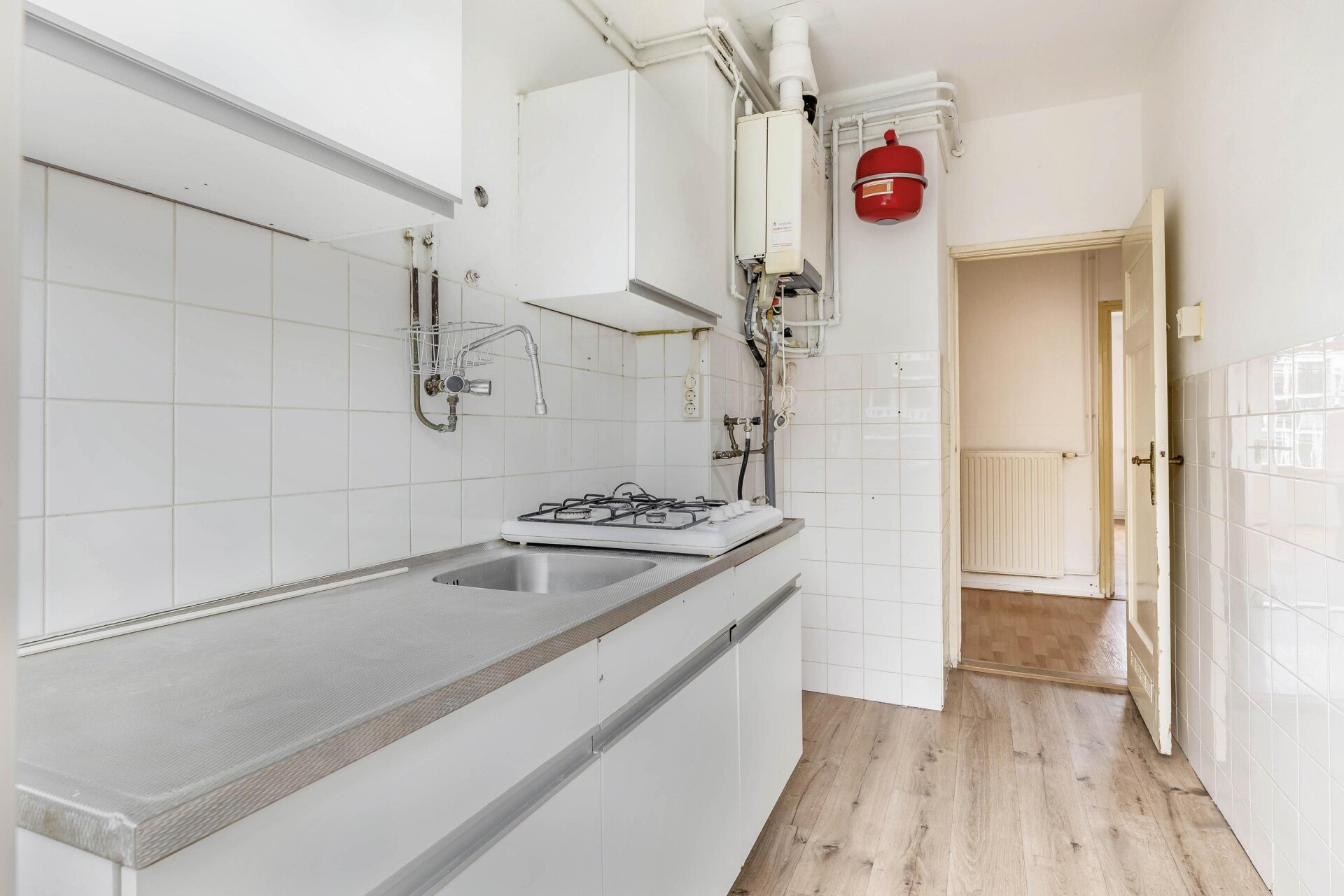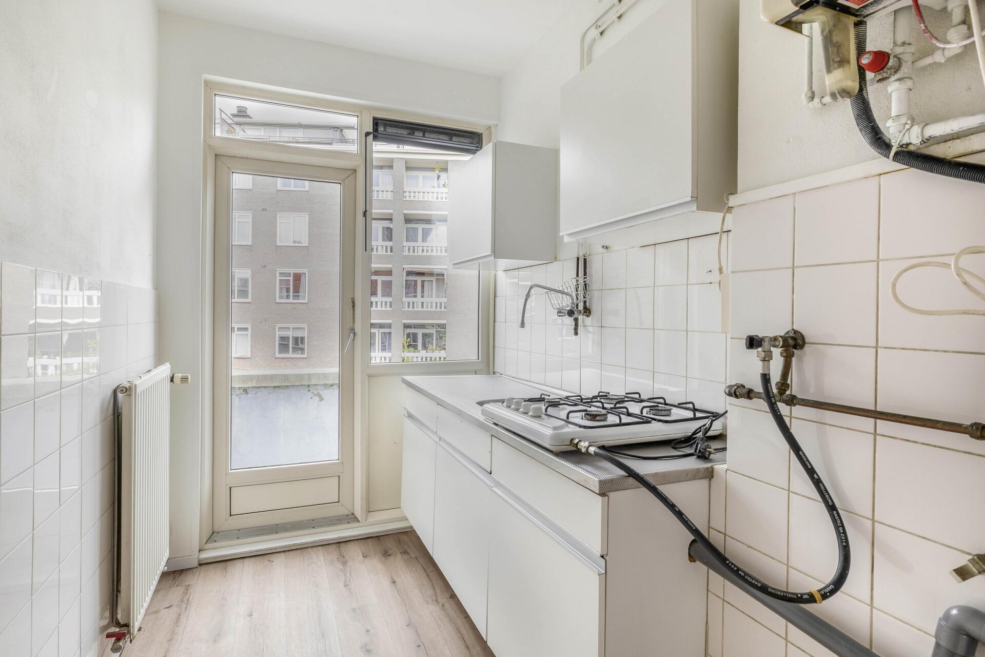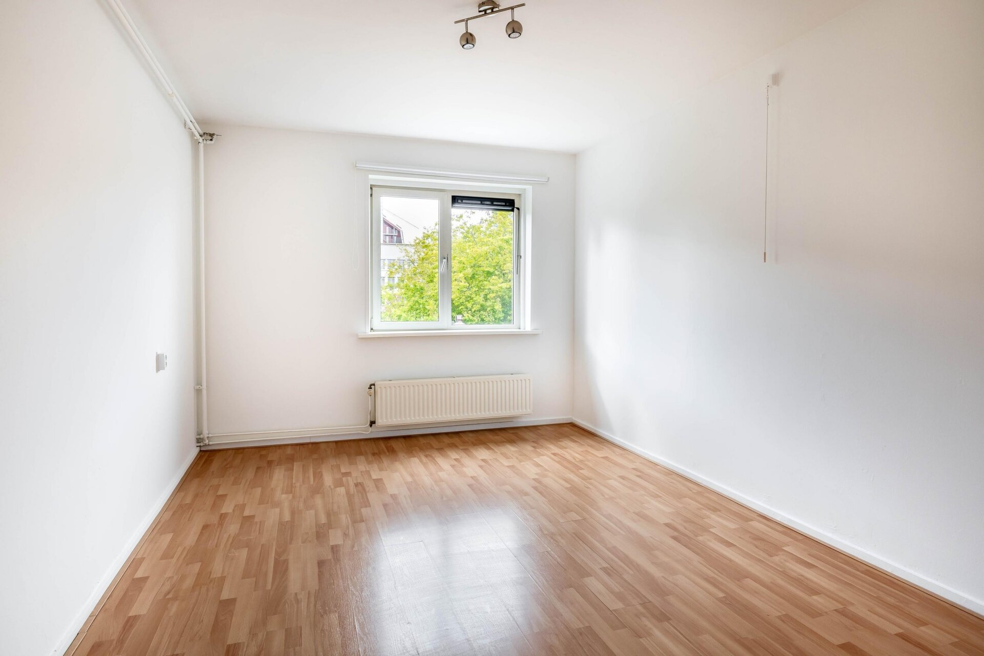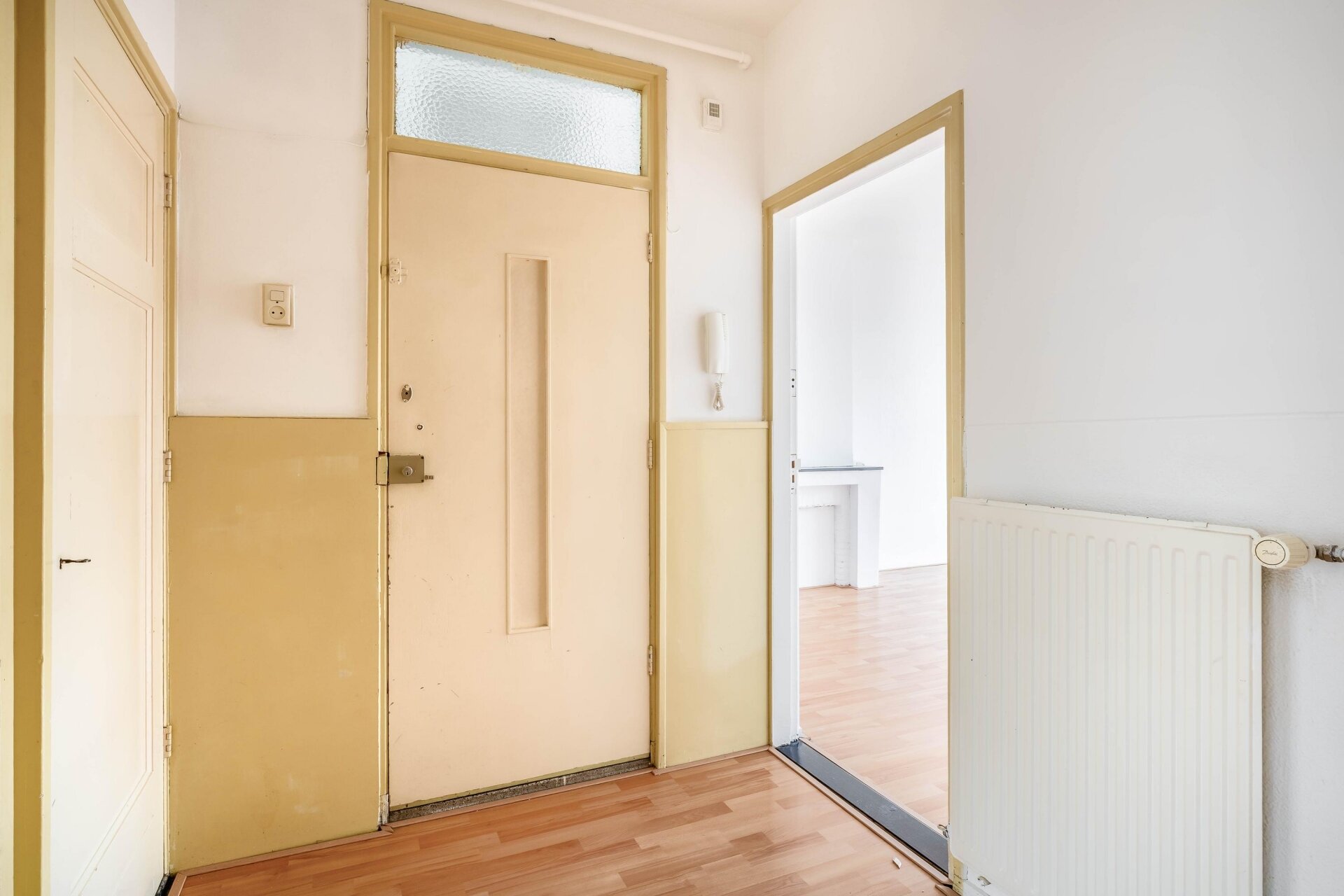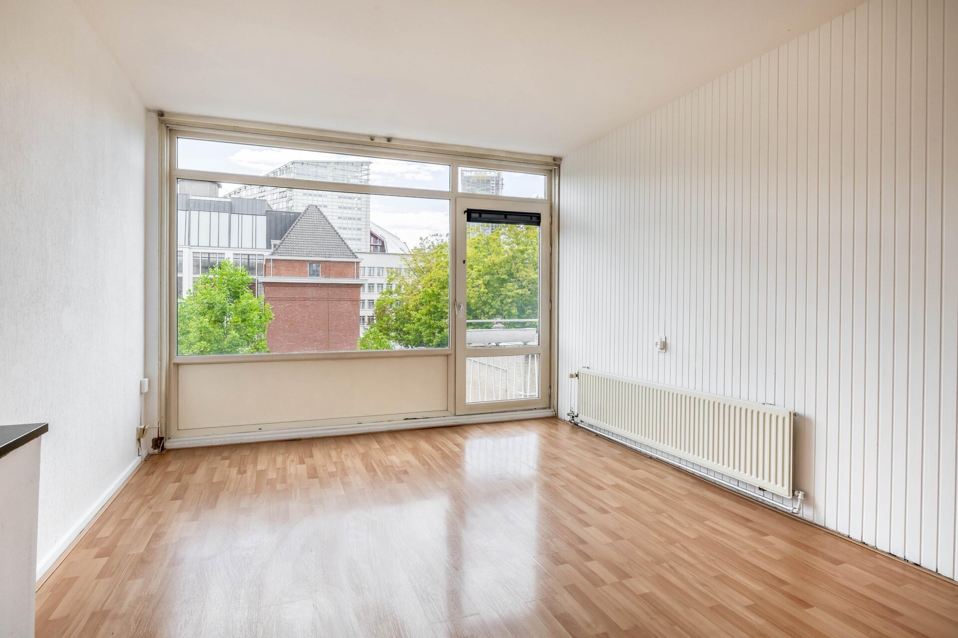 Dankzij de grote ramen en de ligging op het noordoosten komt er veel natuurlijk licht binnen. De woonkamer is ruim genoeg voor zowel een zithoek als een eethoek en biedt een prettig uitzicht op de straat. De sfeer in huis is neutraal en netjes, met een eenvoudige afwerking die een goede basis biedt om het appartement helemaal eigen te maken. Geen uitgesproken stijl of klussen die je direct moet oppakken, maar ook geen luxe afwerking. Gewoon een goed en functioneel appartement.
