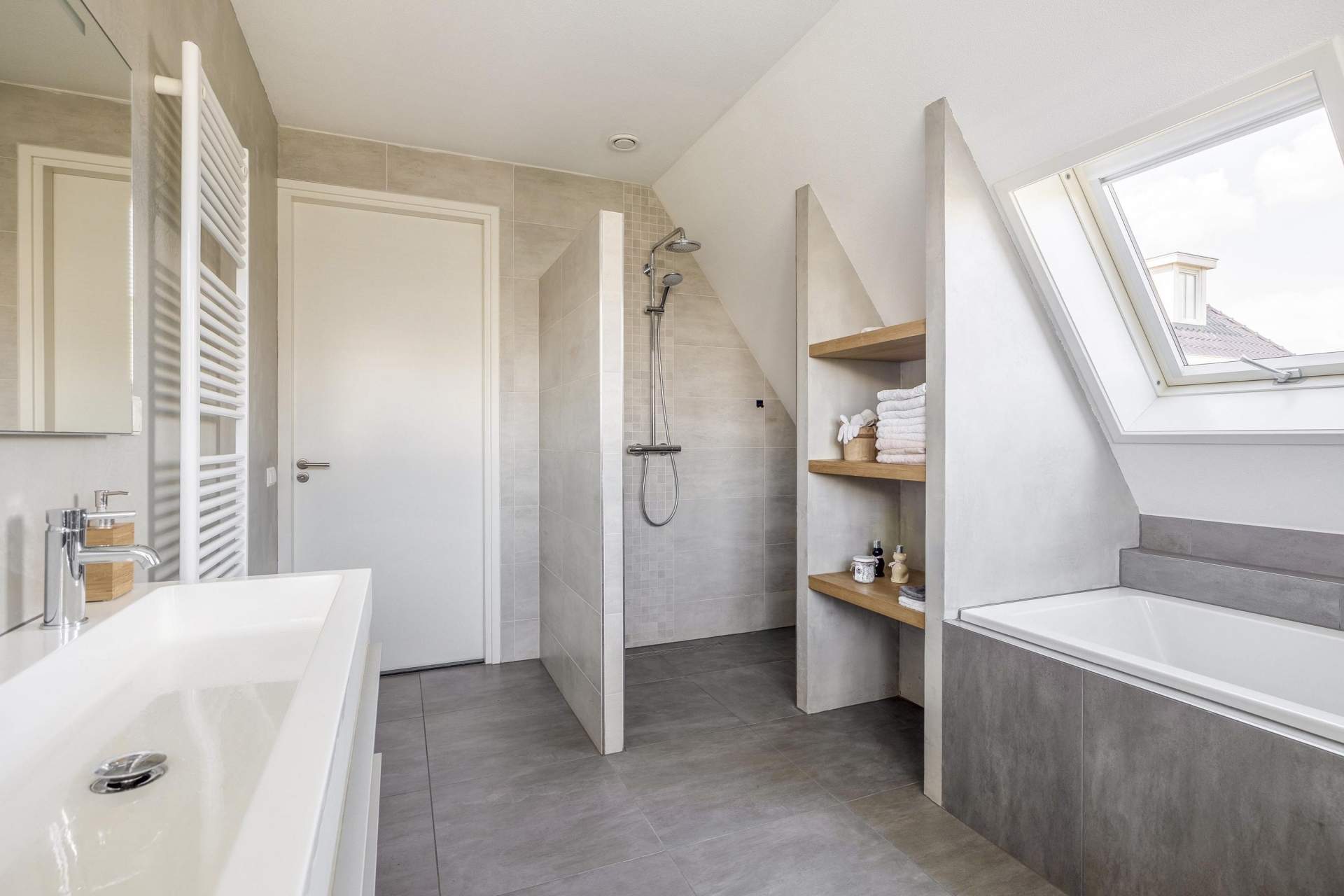 De woonkeuken – modern en praktisch – is ruim opgezet en geeft toegang tot de achtertuin. Uiteraard is de keuken voorzien van alle benodigde inbouwapparatuur. Koken is hier een feestje.