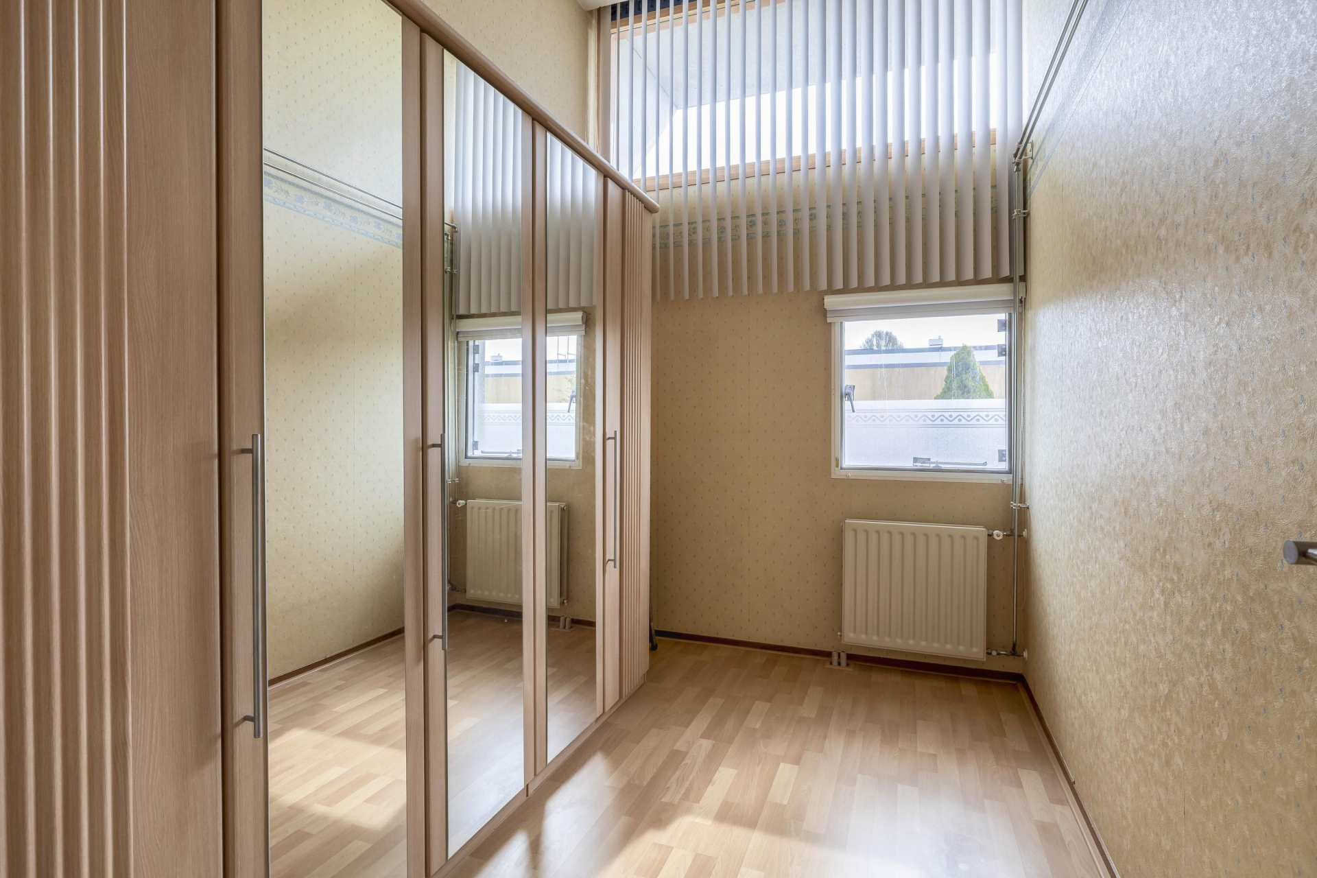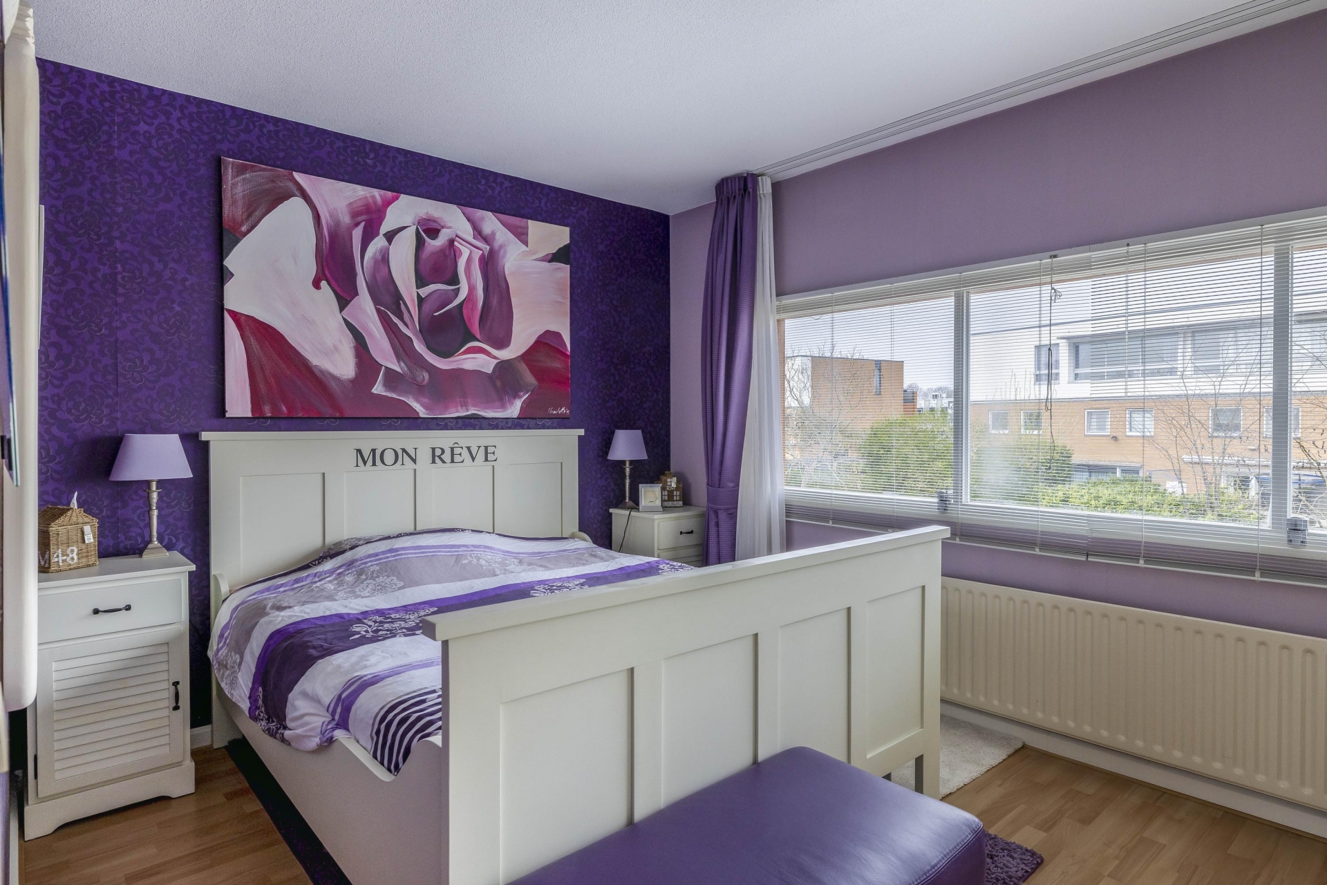 De ruime master bedroom ligt aan de voorzijde en strekt zich uit over de volledige breedte van de woning, met een oppervlakte van circa 12 m².