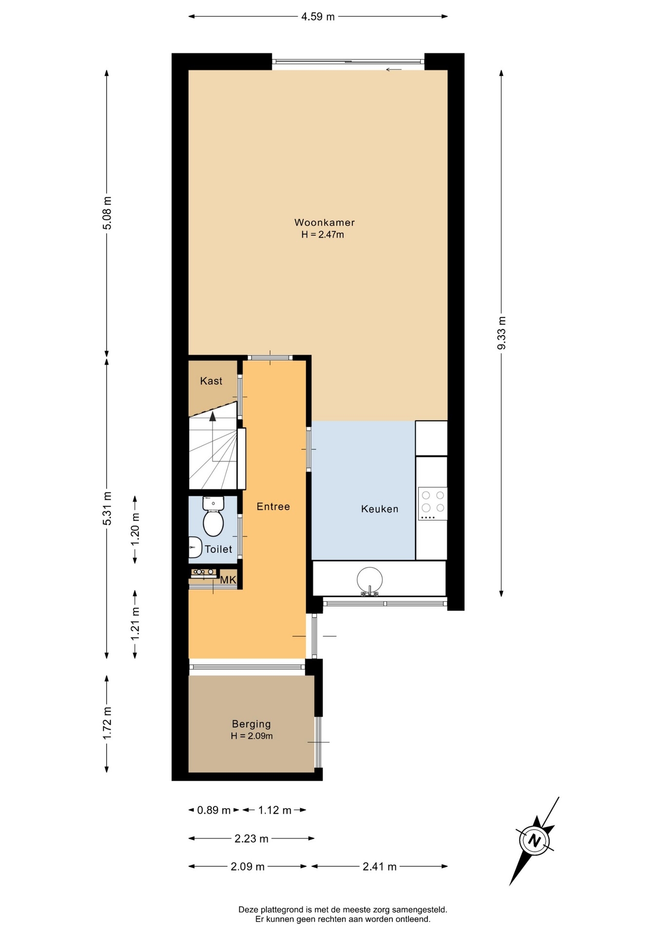 “Deze informatie is door ons met de nodige zorgvuldigheid samengesteld. Onzerzijds wordt echter geen enkele aansprakelijkheid aanvaard voor enige onvolledigheid, onjuistheid of anderszins, dan wel de gevolgen daarvan. Alle opgegeven maten en oppervlakten zijn indicatief.”