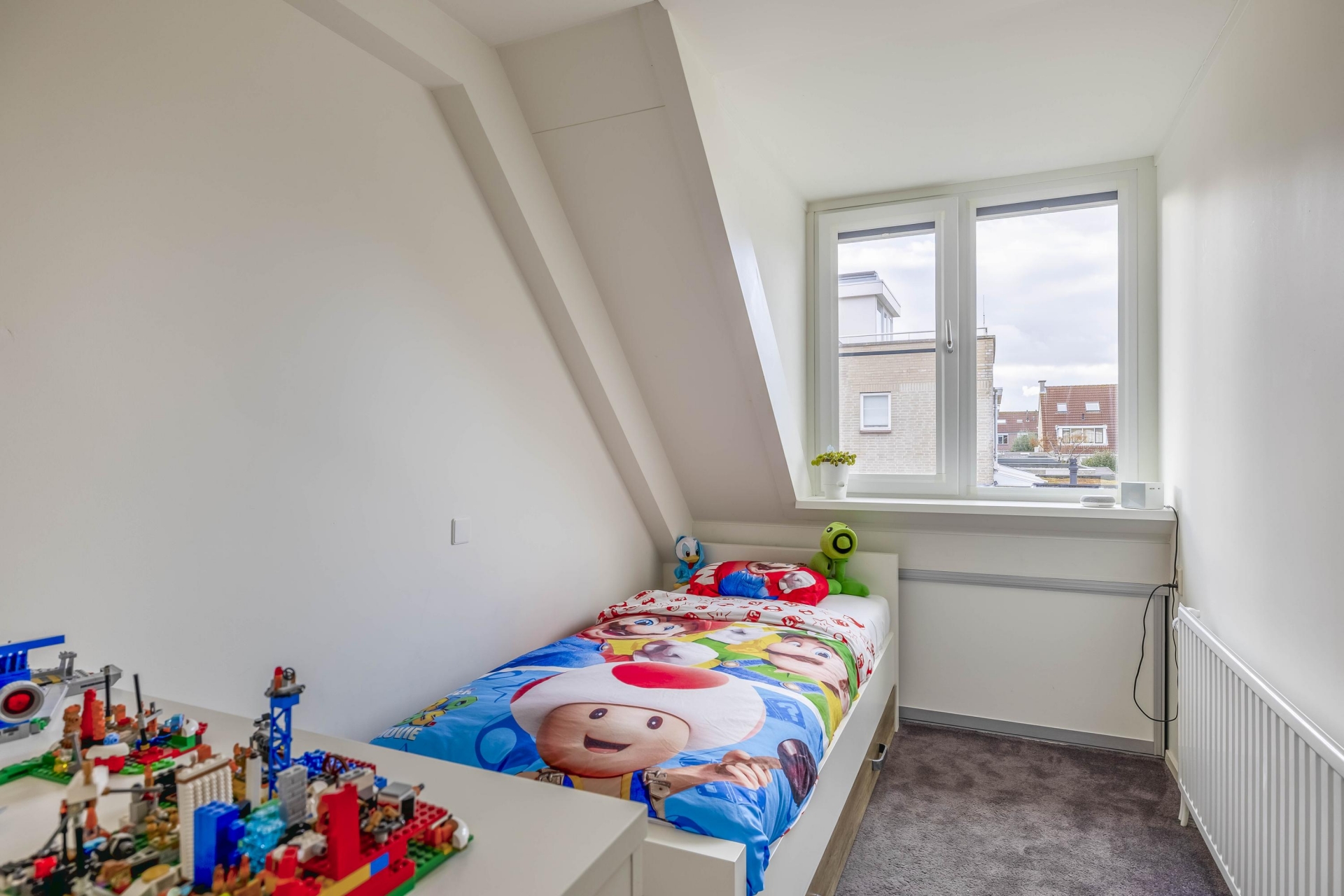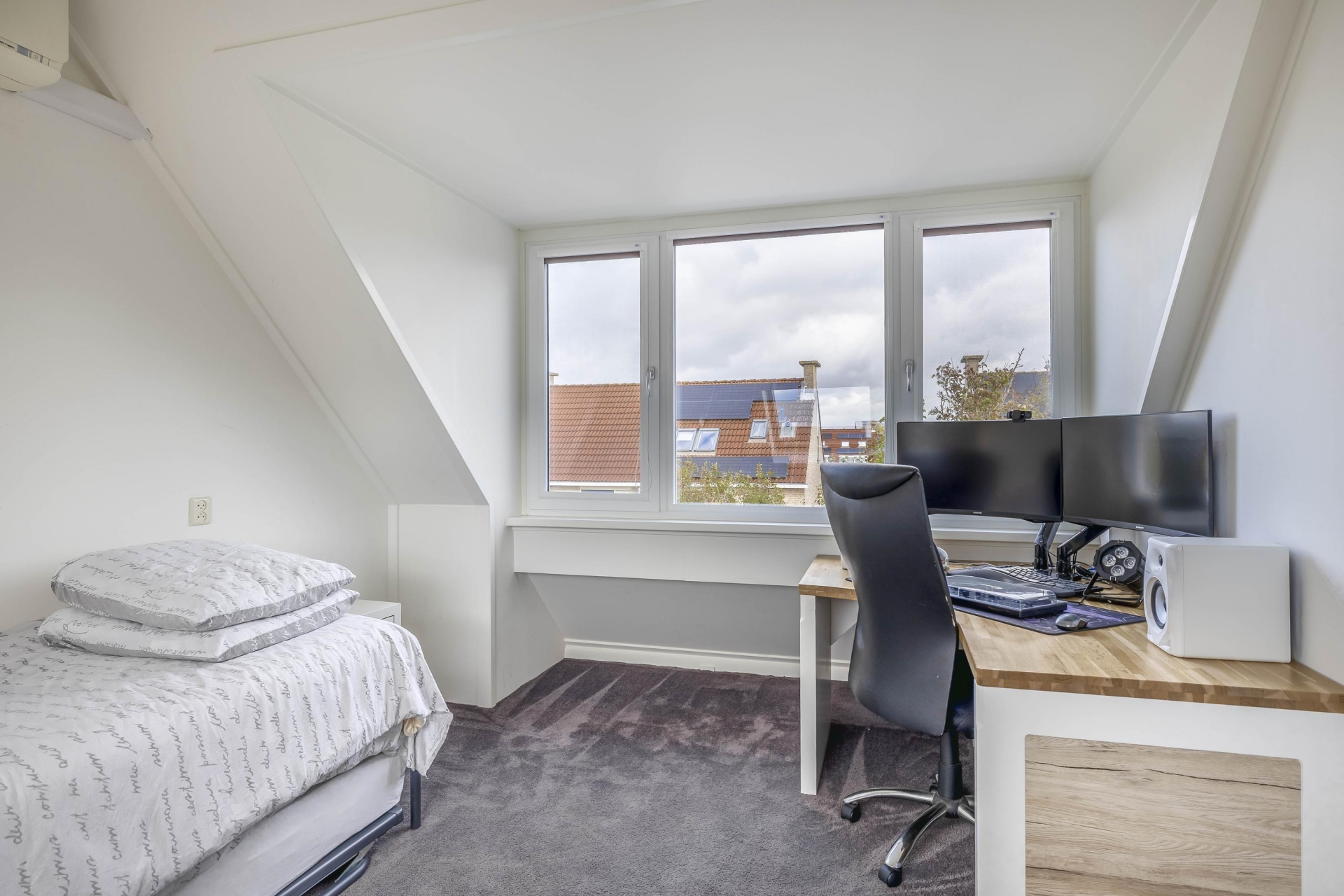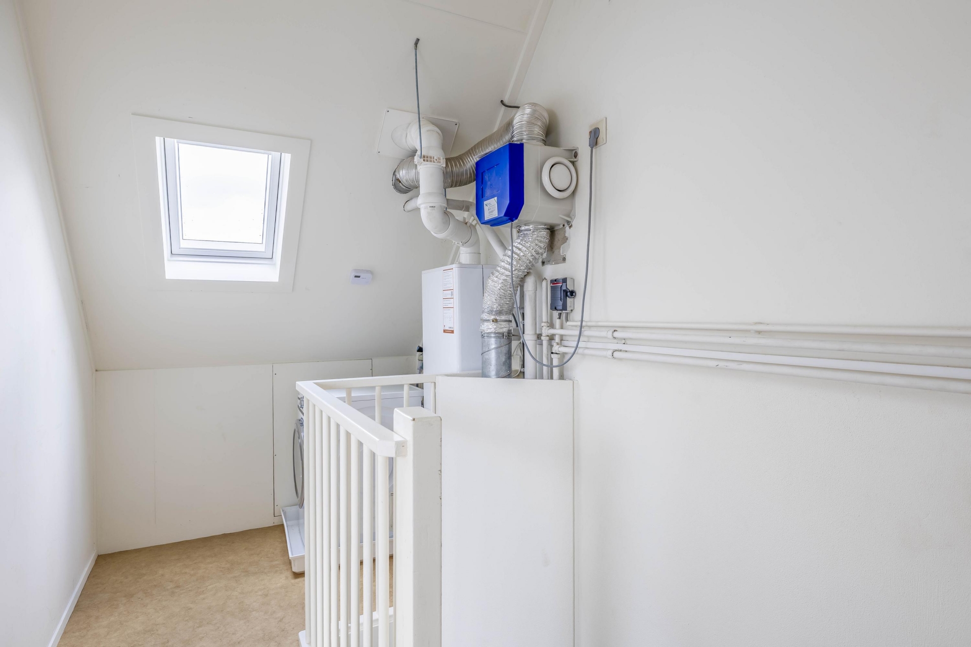 De zolderverdieping verrast met een grote vierde slaapkamer, voorzien van daglicht dankzij een dakraam en dakkapel. Deze kamer is perfect als extra slaapkamer, thuiskantoor of hobbyruimte. Op de overloop is een handige plek voor de wasmachine en droger ingericht. Dankzij de slimme indeling biedt het huis volop ruimte voor een gezin of thuiswerkende bewoners die behoefte hebben aan meerdere functionele vertrekken.