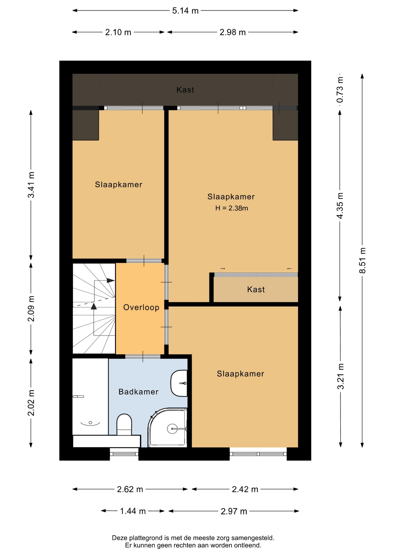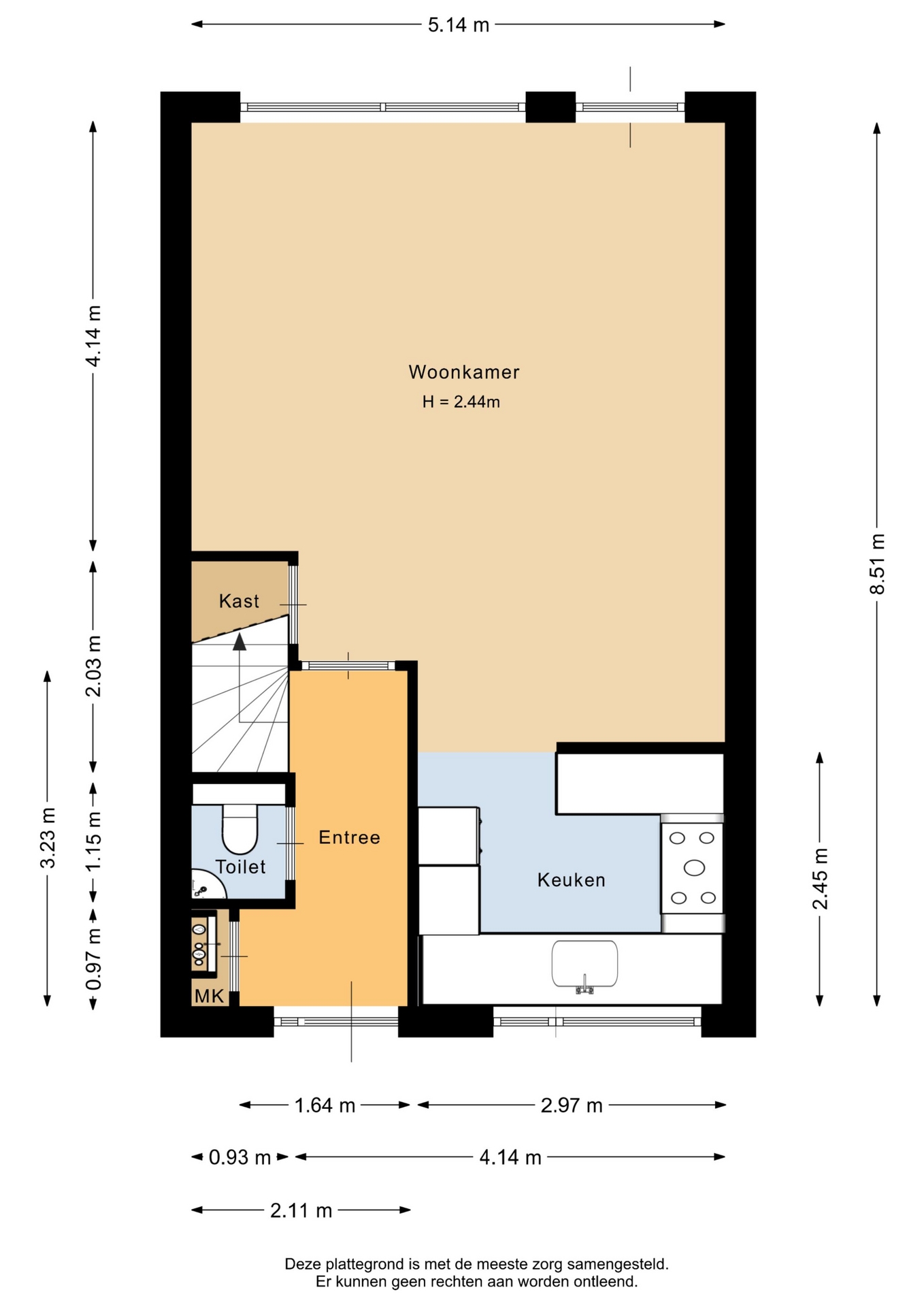 “Deze informatie is door ons met de nodige zorgvuldigheid samengesteld. Onzerzijds wordt echter geen enkele aansprakelijkheid aanvaard voor enige onvolledigheid, onjuistheid of anderszins, dan wel de gevolgen daarvan. Alle opgegeven maten en oppervlakten zijn indicatief.”