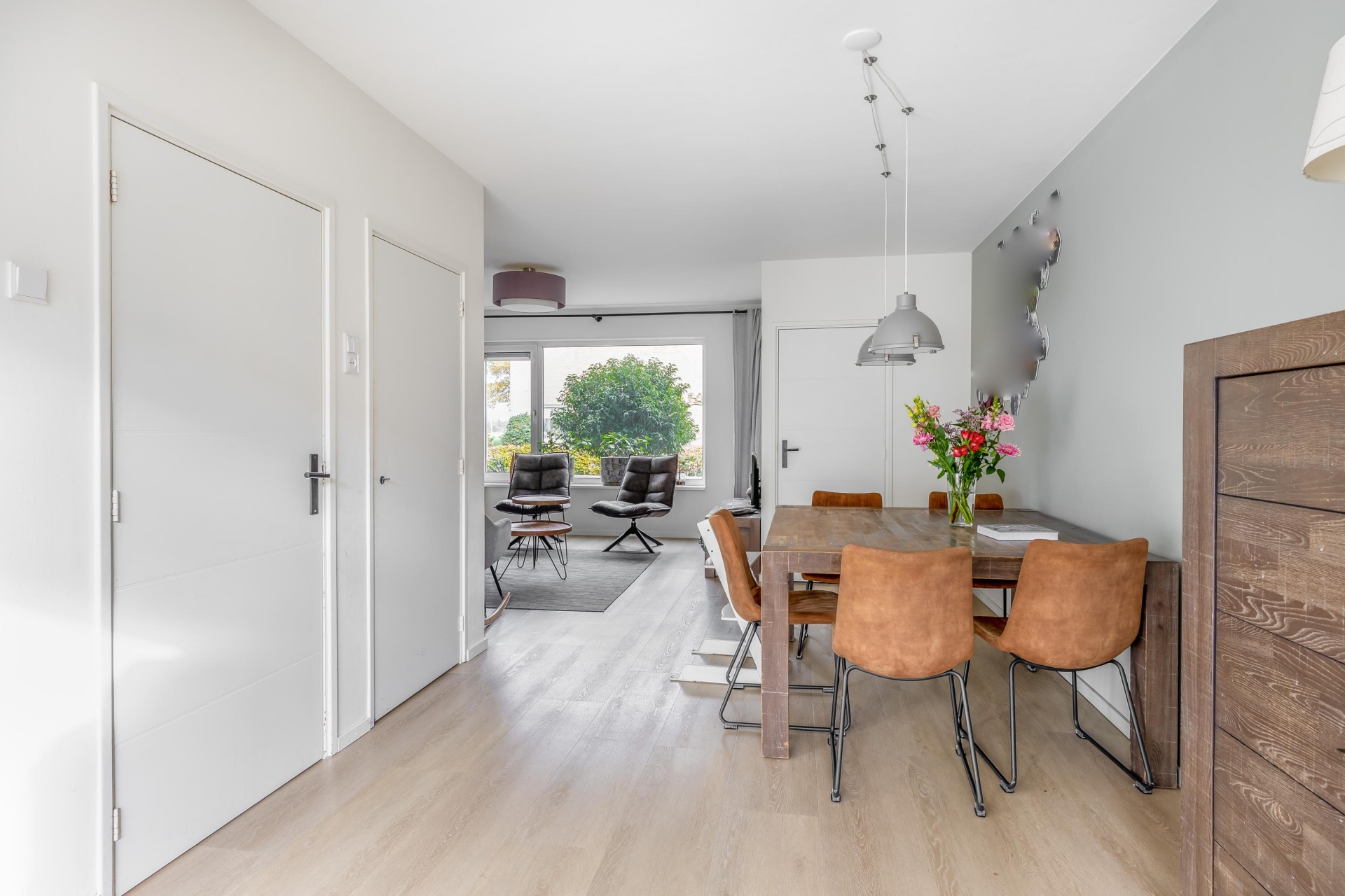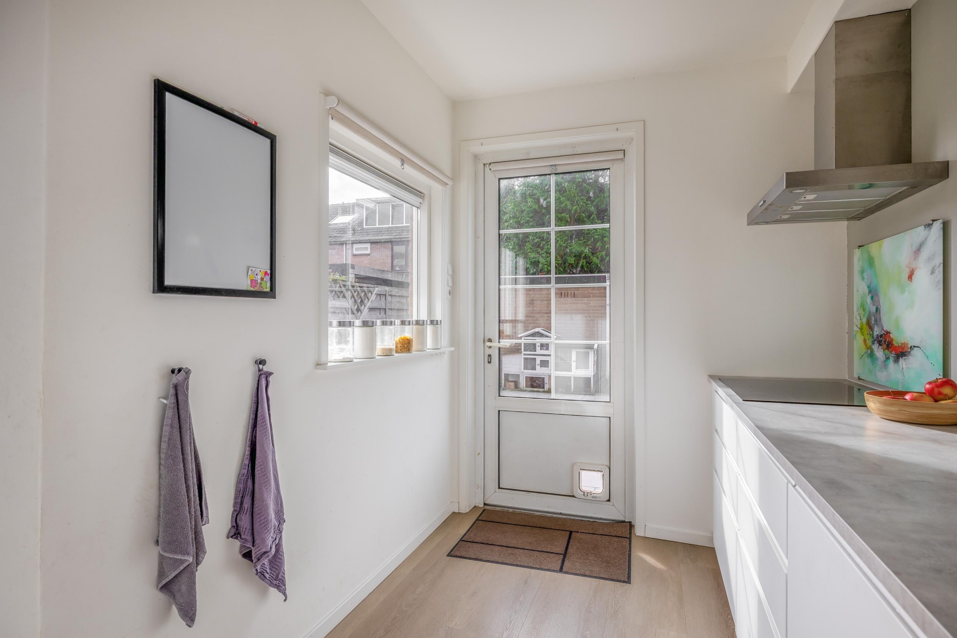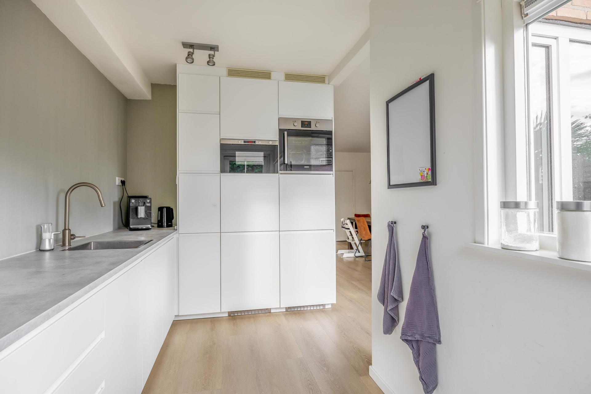 Entree, hal, speelse en lichte woonkamer, uitbouw met nieuwe keuken uit 2019 met inductiekookplaat, afzuigkap, vaatwasser, magnetron, hetelucht oven, koelkast, vriezer en deur naar tuin, tussenhal met toilet met fonteintje.